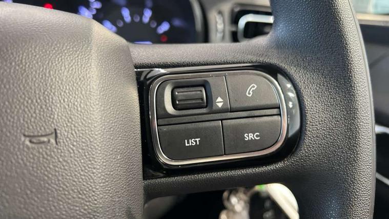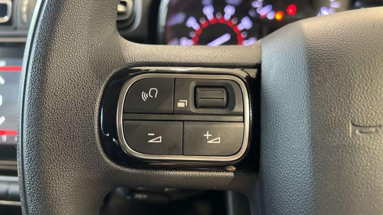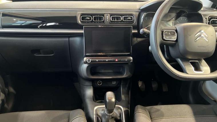 Coffee Break Alert, Cruise control + speed limiter, eCall emergency call system, Exterior temperature display, Instrument cluster with white LCD and analogue gauges, Lane departure warning system, Multi function trip computer, Rear parking sensors, Reversing camera, Variable assistance power steering, USB connection, 3D rear light signature, Airbump on side door panel, Automatic activation of hazard warning lights, Body colour bumpers, Body colour door handles, Chrome decoration on front face, under chevrons and around daytime running lights, Citroen illuminated signature in LED headlights and LED daytime running lights, Dark tinted tailgate and rear side windows, Electrically adjustable door mirrors, Electrically folding door mirrors, Fog lights integrated into front bumper, Front sequential electric windows with one-touch open/close and anti-pinch system, Heated door mirrors, LED Headlights, LED third brake light, Matt black finish B pillar, Rear sequential electric windows with one-touch open/close and anti-pinch system, Rear side wing doors, Rear windscreen wiper with intermittent mode linked to vehicle speed and automatic activation when reverse gear selected, Roof colour rear view mirror caps, Standard day night switchable interior rear view mirror, 1/3 to 2/3 split folding rear seat, 12V socket, Automatic air conditioning, Boot light, Cloth upholstery, Driver and passenger's sun visor with courtesy mirror, Driver's seat height adjustment, Front lighting panel with map reading lights, Front seats adjustable with forward back slide and adjustable backrest, Height adjustable front head restraints, Height/reach adjust steering wheel, ISOFIX mounting on outer rear seats with top tether and labels indicating fixing points, Parcel shelf, Row 2 - Three seats with individually adjustable head rests, Seatbelt unfastened on the move audible and visual alert for front and rear seats, Single front passenger seat, Soft touch gear lever with leather effect gaiter and overstitching, Standard ambience, Steering wheel with satin chrome elements and audio/telephone controls, Three rear headrests, Upholstered armrest in front and rear doors, Safety pack 1 - C3, Visibility pack with automatic lights - C3, ABS with Electronic brakeforce distribution and Emergency braking assistance, Driver and front passenger seatbelts with pyrotechnic pretensioners and force limiters, Driver's airbag, Electric child locks, ESP with anti skid system, Front passenger airbag, Front passenger airbag deactivation, Front side airbags + front/rear curtain airbags, Hill start assist, Manual parking brake with chrome finish button, Mono-tone horn, Outer rear seats with pretensioners and force limiters, Three rear 3-point seatbelts, Tyre pressure monitoring system, Anti theft alarm, Automatic door and boot locking when moving off with automatic unlocking in case of impact, Central locking with locked indicator and interior one touch lock button, Immobiliser, Remote control central locking with two plip keys, Gloss black dashboard finish with grey surround, 16" Matrix bi-tone alloy wheels,