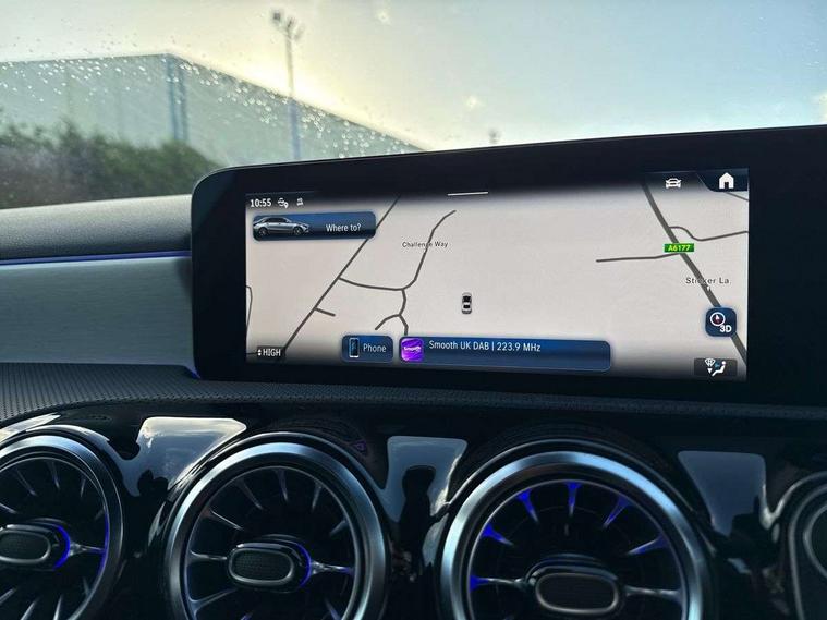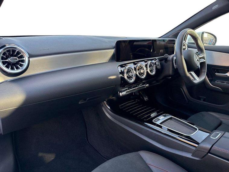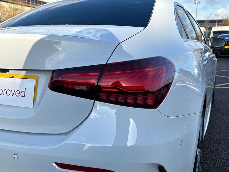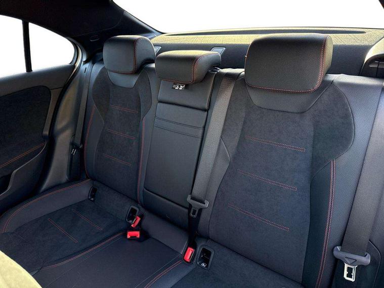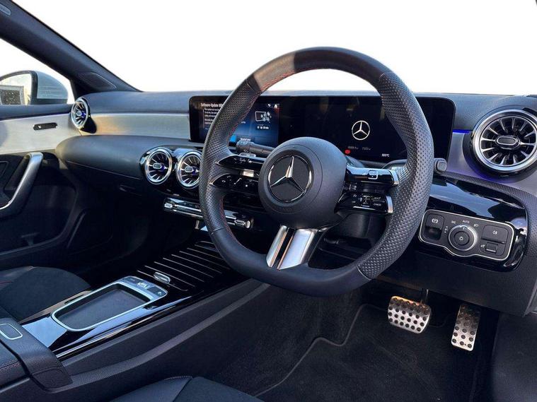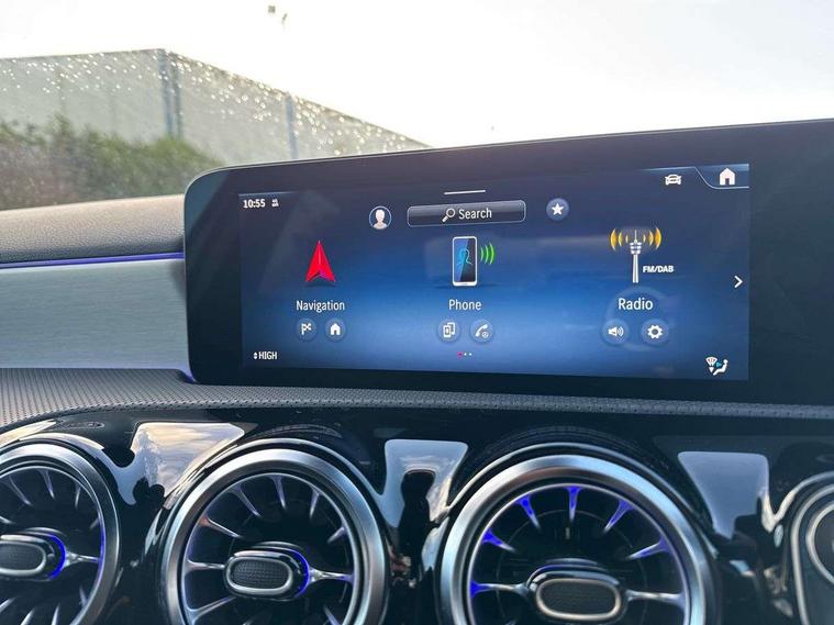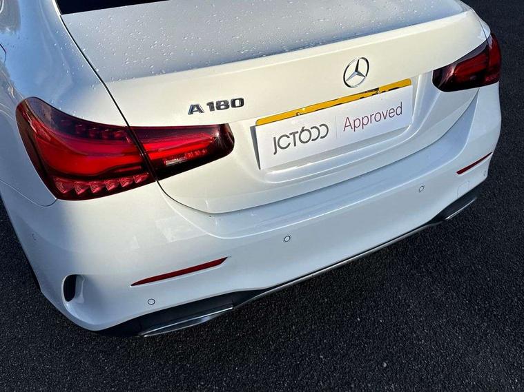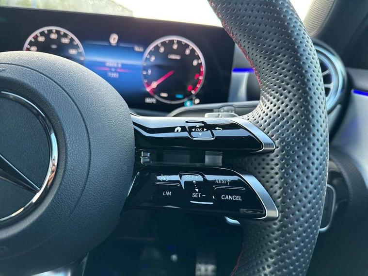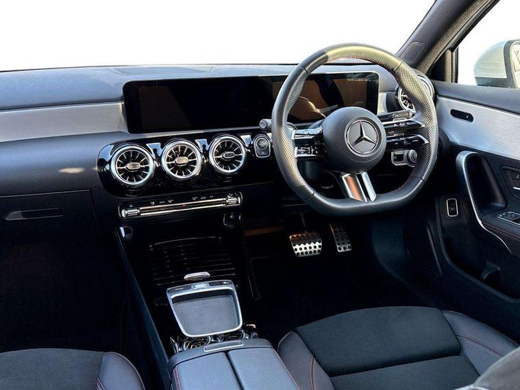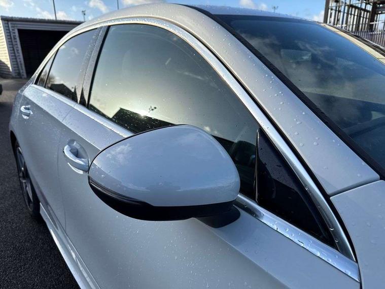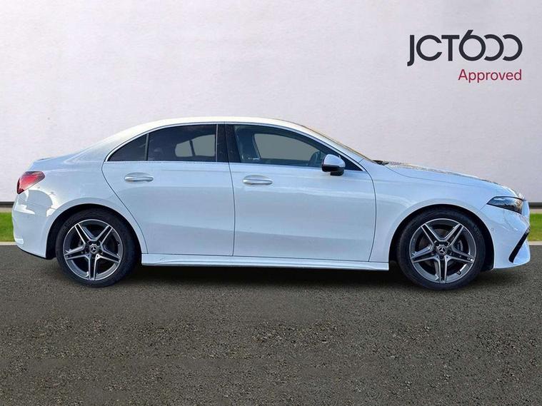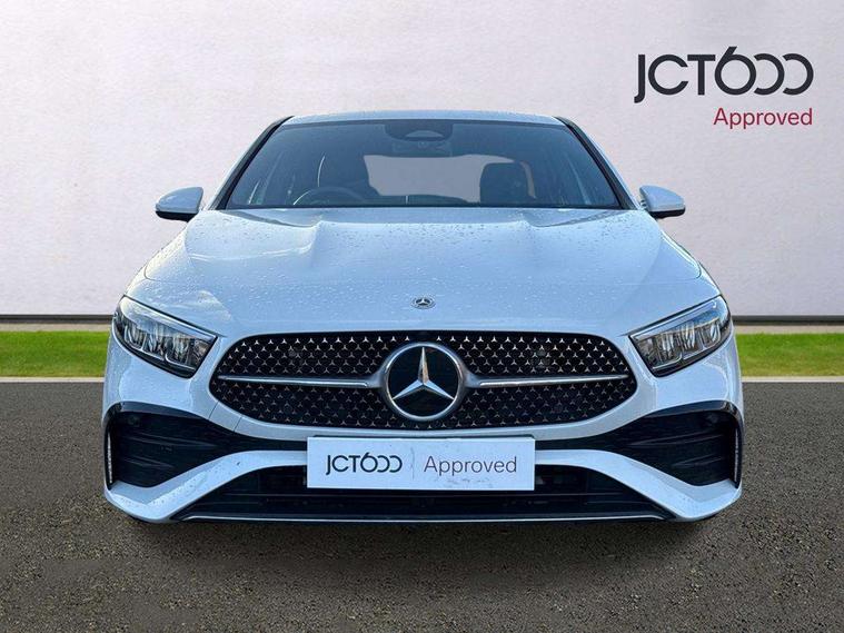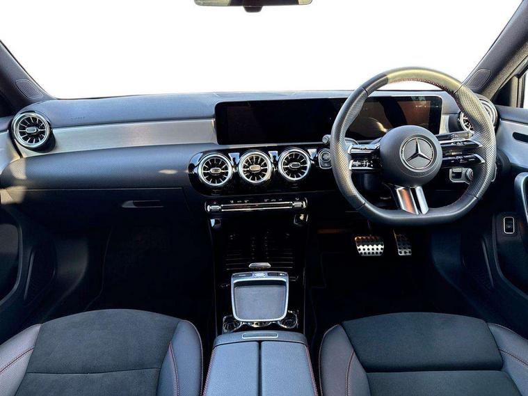 10.25 inch touchscreen central media display, 10.25" Digital instrument cluster display screen, Attention assist, Brake pad wear indicator warning light, Car wash mode, Cruise control + speed limiter, Direct steering, Direction indicators with lane change function, Dual bluetooth interfaces, DYNAMIC SELECT with a choice of driving modes (ECO, Comfort, Sport and Individual), ECO start/stop function, Engine start/stop button, Fingerprint scanner, Fluid level warning indicator for fuel, oil, coolant and washer fluid, Hard-disk navigation, Hey Mercedes Voice activation, Lamp failure indicator, Lane keeping system, Mercedes me connect including emergency call system, accident recovery, breakdown management and maintenance, Mercedes me remote services, Outside temperature gauge, Owners manual in English, Pre-installation of private car share, Preinstallation for Mercedes Benz link, Remote boot closing, Service indicator (ASSYST), Smartphone integration with Apple CarPlay and Android auto, Speed limit assist, Speed sensitive power steering, Trip computer in multifunction display with current consumption indicator, Wireless charging, Lowered comfort suspension, DAB Digital radio, MBUX multimedia system, Mercedes Benz sound system (100 W) with 6 speakers, 4 Electric Front and Rear windows, Adaptive brake lights, AMG body styling - AMG front apron with front splitter and AMG rear apron and visible exhaust tailpipe trim elements, Body colour bumpers, Body colour door handles with chrome inserts, Body colour side skirt, Body coloured door mirrors, Chrome beltline strips, Diamond radiator grille with pins in fine star pattern, Electric adjustable and heated door mirrors with integrated LED side indicators, Exhaust system with 2 visible tailpipe trim elements and rear apron, Headlamp assist automatic headlamp activation, Heat insulating dark tinted rear and rear side windows, Heated glass rear windscreen + timer control, LED High Performance headlamps including integral LED daytime running lamps and adaptive highbeam assist, LED tail lamp, Privacy glass, Radio aerial, Rain sensing windscreen wipers with two sensitivity settings, Rear boot, Rear fog lights, Rear side wing doors, Third brake light featuring LED technology, Window line trim strip in black, 3 seat bench in 2nd row, 3 Spoke flat bottom leather multi function steering wheel with perforated leather in grip area, 4 way lumbar support, 40:20:40 split folding rear seats, Air conditioning - One zone thermatic automatic climate control with automatically controlled air distribution, Automatic child seat recognition sensor, Black air vents with surround in silver chrome, Black roof lining, Brushed stainless steel sports pedals with rubber studs, Floor mats with AMG lettering, Front centre armrest with stowage, Front door sills with Mercedes Benz lettering, Front seat backs luggage nets, Galvanished gear shift paddles on steering wheel, Heated front seats, Height/reach adjustable steering column, Interior lighting - 64 colour Ambient lighting, Interior mirror with reading lamps in black and frameless, ISOFIX and top tether child seat fixing points in two outer rear seats, Rear armrest with 2 cupholders, Seat occupancy sensor for front passenger seat, Single front passenger seat, Sports seats with adjustable head restraints, Stowage compartment in centre console with retractable cover, Sunvisors with illuminated vanity mirrors, Twin front cupholders, Keyless go comfort pack - A Class, Light and sight pack - A Class, Mirror package - A Class, Parking pack - A Class, Seat comfort pack - A Class, USB pack plus - A Class, 3 rear 3 point seatbelts, ABS with Brake Assist, Active bonnet, Active brake assist includes forward collision warning system with autonomous braking, Adaptive brake assist with hold function and hill start assist, Black seatbelts, Bonnet with power domes, Childproof locks manually operated for rear doors and electrically operated for rear power windows, Crash responsive emergency lighting, Driver and passenger head and side airbags, Drivers knee airbag, Dual stage driver/passenger airbags, Electronic parking brake, ESP curve dynamic assist, ESP with ASR, Front and rear seatbelt reminder, Tyre pressure monitoring system, Warning triangle and first aid kit, Window airbags, Alarm system/interior protection/immobiliser, Guard 360 degree vehicle protection, Remote central locking and crash sensor with emergency opening function, Light longitudinal grain aluminium trim, 18" AMG 5 twin spoke light alloy wheels, aerodynamically optimised, painted in termolite grey with high sheen finish, Summer tyres, Tirefit sealant kit,