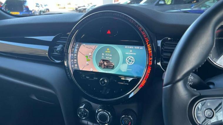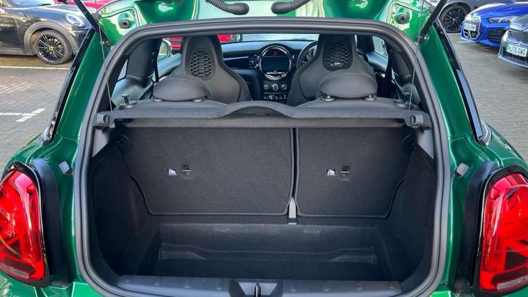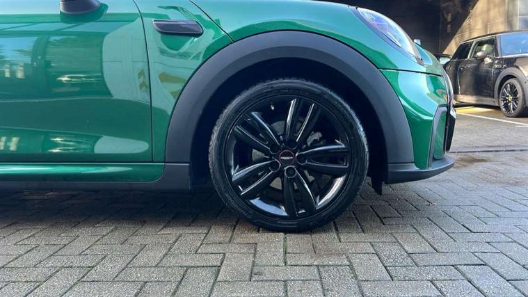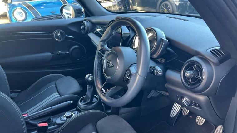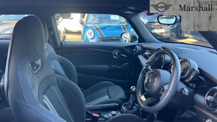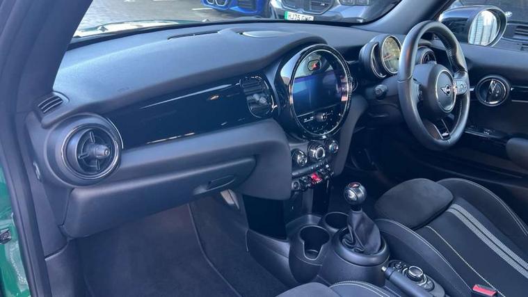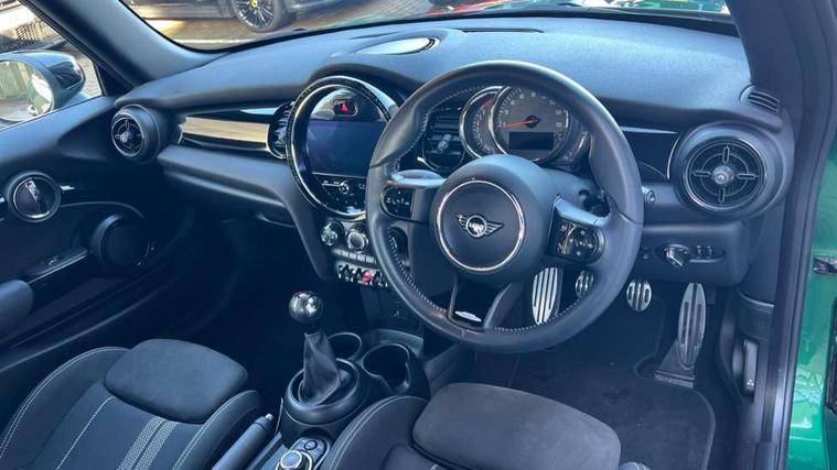 Apple CarPlay, Automatic start/stop function with brake energy recuperation, Compatible mobile phone bluetooth with audio streaming, Cruise control with brake assist, Electro-mechanical speed dependant steering assistance, Flexible car sharing preparation, Instrument cluster, MINI Driving Modes - centre toggle switch to control driving setting (sport, mid and green), Mini E-call, MINI TeleServices, On board computer, Rear park distance control, Service interval indicator, 6 Speed manual transmission including gear change indicator display, Double Vanos system, Fully variable valve control, High precision injection, Intelligent adaptive suspension, Performance Control, 8.8" touchscreen with LED ring, FM tuner and DAB digital radio, 3rd brake light, Automatic headlight activation switch, Body colour fuel filler cap, Chrome border high gloss black slats radiator grille, Dynamic brake lights, Electric front windows, Exhaust tailpipe on left with chrome finisher, Heated rear window, Heated windscreen washer jets, JCW Aerodynamic kit - Front and rear bumpers with sporty JCW styling and part-painted side sills with MINI John Cooper Works door sill finishers, John Cooper Works rear spoiler, LED headlight with closed ring and daytime driving lights, Metal door sill strips with MINI imprint, Model logo Cooper on right of tailgate, Rain sensor window wipers, Rear fog lights, Rear LED lights with union jack design, Rear window wiper, Side scuttle panel with integrated indicator, Sun/heat protection glass, White indicator lenses, 12V Accessory socket in centre console, 2 seat bench in 2nd row, 4 lashing eyes in luggage compartment, 60/40 split folding rear seat, Anthracite headliner including grab handles and clothes hooks, Carbon black colour line - Knee roll and door armrest, Chrome interior highlights, Cupholders, Front and rear isofix with front passenger airbag deactivation, Front floor mats in velour, Glove compartment, Height and length steering column adjustment, Interior lighting with 12 different colours across the dashboard, underneath door bezel with illuminated laser-engraved design on central display, JCW Sport seats with integrated headrests, adjustable thigh support and John Cooper Works logo, Leatherette gearshift lever and handbrake gaiters, LED reading lights, vanity mirror lights, front foot well light and spotlight on front seats, Manual air conditioning, Mechanical seat adjustment - forward/back & backrest for front seats and driver seat height adjust, Multifunction steering wheel, Passenger seat height adjuster, Single front passenger seat, Storage compartments in doors, Sunvisors with vanity mirrors, Walknappa leather steering wheel with grey seam and John Cooper Works badge on Piano Black lower steering wheel spoke, Piano black exterior pack - Mini Hatchback Cooper, 3 point seatbelts on all four seats, 6 Airbags - front, side, head and seat belt tensioners, Anti-lock braking system (ABS), DSC - Dynamic Stability Control, Front and rear disc brakes, Single tone fanfare horn, Tyre pressure monitoring system, Alarm system with tilt sensor, monitoring doors, bonnet interior and tailgate, Electronic vehicle immobiliser, Start/stop toggle with keyless go, Piano black interior trim, Tool kit,