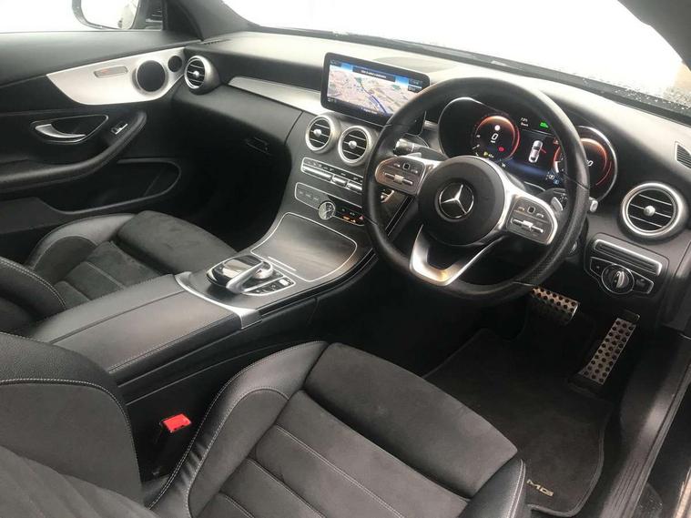12.3" Active TFT crystal driver's instrument display, Active park assist with parktronic system, Attention assist, Bluetooth interface for hands free telephone, Collision prevention assist plus, Comand Online HDD Nav with media interface, radio/CD/DVD/MP3, 10.25 screen, linguatronic voice control, DYNAMIC SELECT with a choice of driving modes (ECO, Comfort, Sport, Sport+ and Individual), ECO start/stop function, Mercedes me connect including emergency call system, accident recovery, breakdown and maintenance management, Multi function trip computer, Outside temperature display, Pre-wiring for SD navigation system, Remote boot release, Reversing camera, Service indicator (ASSYST), Smartphone integration with Apple CarPlay and Android auto, Sports direct steer speed sensitive steering, Status display for rear seat belts in instrument cluster, Wireless charging, 66l fuel tank with increased capacity, 9G Tronic plus 9 speed automatic, Petrol Particulate Filter, Sport exhaust system, Audio 20 with integrated media interface and bluetooth handsfree function, DAB digital radio tuner, Mid-range sound system, SD card slot, Steering wheel audio controls, Two USB ports and one SD Card slot in centre console, Adaptive brake lights, AMG front, rear apron and side skirts, Body coloured bumpers, Body coloured door mirrors, Chrome grille surround, Chrome pins diamond radiator grille with integrated stars, Door sill panels with Mercedes Benz lettering, Electric windows with one touch opening/closing and obstruction sensors, Exterior mirrors heated and electronically adjustable, Full LED tail lamps, Green tinted glass, LED daytime running lights, LED Indicators, LED third brake light, Multi beam LED headlights, Privacy glass (rear side windows and rear screen), Radio aerial integrated into rear window, Rain sensor windscreen wipers, Side windows surround in polished aluminium, Visible twin pipe exhaust trim integrated into rear bumper, 2 cupholders in front centre console, 2 rear head restraints, 3 spoke AMG flat bottom multi-function nappa leather steering wheel with touch controls, 40:20:40 split folding rear seats, AMG sports seats, Artico man-made leather upper dashboard and beltlines with contrast stitching, Auto Mercedes-Benz child seat recognition sensor, Black floor mats with AMG lettering, Electrical height and back adjustment front seat, Front centre armrest with storage compartment, Front head restraints, Front LED reading lights, Heated front seats, Illuminated glove compartment stowage, Interior lighting - 64 colour Ambient lighting, Sports pedals with stainless steel surfaces and rubber studs, Steering wheel gearshift paddles, Sunvisors with illuminated vanity mirrors, THERMATIC 2 zone automatic climate control, Interior lighting package - C Class, Mirror package - C Class, Seat comfort pack - C Class, Stowage space pack - C Class, 2 rear seatbelts, 3 point automatic seatbelts, Active bonnet, Adaptive brake system with hold function, hill start assist and brake drying function, Anti-lock braking system (ABS), Automatic seatbelt pretensioner for driver and front passenger, Black seat belts, Brake calipers with Mercedes-Benz lettering + perforated brake discs, Dual stage airbags - driver and front passenger, front sidebags, driver kneebag, pelvis bag and windowbags for driver, front and rear passengers, Electronic parking brake, Electronic Stability Programme (ESP), ISOFIX child seat attachment points with top tether in rear, Tyre pressure monitoring system, Warning triangle and first aid kit, Anti-theft alarm system/interior protection with tow-away protection and interior monitoring systems, Central locking with interior switch, automatic locking and crash sensor with emergency opening function, Chrome surround in electric key, Immobiliser, KEYLESS-GO starting function, Black ash wood with brushed aluminium trim,