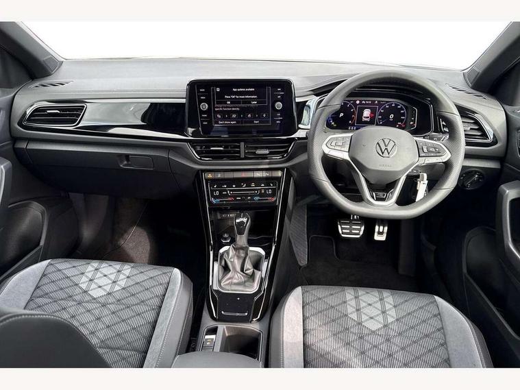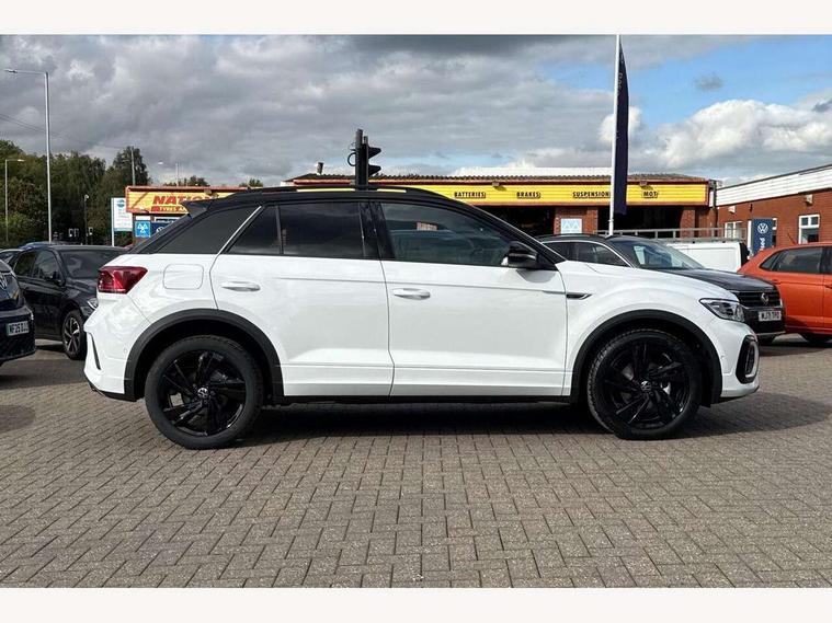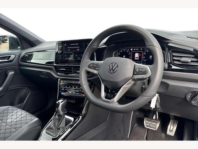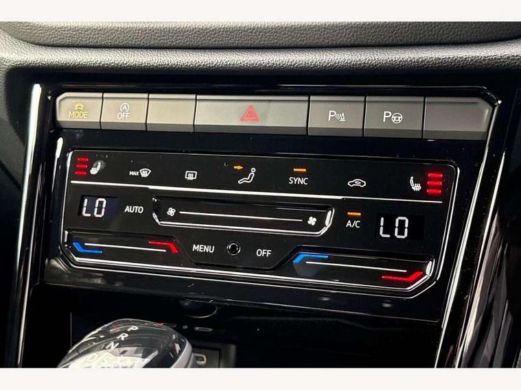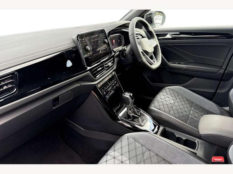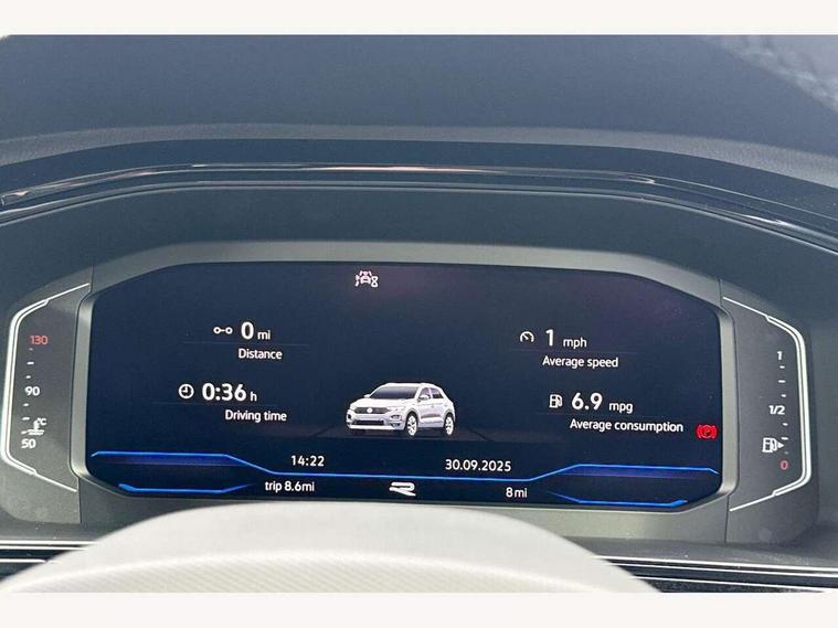 10.25" Digital cockpit pro, Advanced driver attention and drowsiness monitor, Emergency call service, Lane keeping system Lane Assist, Mobile phone interface, Modified key software - reduce switch off time for key status change to Long no motion, Online services, Park assist including front and rear parking sensors, Power assisted speed sensitive steering, Service interval indicator, Tailgate/trunk lid release from outside, Think blue trainer driver tips and journey analysis, Warning sound and light for front seatbelts unfastened, Wireless app connect, Battery regeneration during braking, Rear shock absorption chassis with increased ride height, Start/stop function with battery regeneration, DAB Digital radio, Diversity antenna for FM reception, Front and rear 6 speakers, Music playback - MP3, WMA and AAC files, Premium USB cable in choice of either Apple or Android smartphone compatibility, SD card slot, Simultaneous pairing of 2 compatible mobile devices, Title and cover art display, We Connect and We Connect Plus functionality, Auto dimming interior rear view mirror, Automatic hazard lights activation under emergency braking, Automatic headlight control with LED separate daytime running lights with coming/leaving home function, Dynamic cornering light, Electrically adjustable and heated door mirrors, Extended roof spoiler, Exterior mirrors aspherical on driver side, convex on front passenger side, External USB type C socket and charging sockets, Front windscreen wiper with intermittent wipe and 4 position delay, Heated rear window, Illuminated front grille, IQ LED matrix headlights, LED 3rd brake light, LED rear number plate lights, LED rear tail lights with dynamic turn signal, Light mode for poor weather, rain, fog or snow, Power windows with comfort operation and circuit breaker, R-Line design body coloured bumpers, Rain sensor, Rear exhaust tailpipe, Rear fog light on one side and reversing lights on both sides, Rear side wing doors, Rear wash/wipe with intermittent wipe setting, Remote electrically foldable door mirrors, puddle lights and reverse activated passenger's door mirror, 12V power socket in centre console, 3 rear head restraints, 3 seat bench in 2nd row, 4 load lashing points in luggage compartment, Air care climatronic air conditoning system with active combination filter and 2-zone temperature control, Artvelours cloth upholstery, Black roof lining, Chrome plated radiator grille inserts, air vent surrounds and light switch surrounds, Door and side trim panel with leatherette insert, Drawer under drivers seat, Driver seat height adjust, Driver's seat lumbar support, Front + rear carpet mats, Front centre armrest, Front comfort sports seats, Front cupholders x 2, Front footwell illumination, Front reading light, Front scuff plates with R Line logo, Front seat back storage pockets, Glove compartment door with light, Instrument lighting, white adjustable panel illumination, Interior ambient lighting and surround lighting, Interior light delay, Isofix child seat preparation, Leather gearshift handle, Leather wrapped multifunction steering wheel with paddle shift, Load-through provision with cup holder when folded down ('Unsplit rear seat bench, split folding backrest, with centre armrest), Luggage compartment lighting, Non-folding front passenger seat backrest, Passenger seat height adjuster, Passenger seat lumbar support, Single front passenger seat, Stainless steel pedals, Storage compartment in left and right luggage area, Storage compartment in rear doors, Storage compartments in driver and front passenger doors, Sunvisors with illuminated vanity mirrors, Variable boot floor, height adjustable and removable, Winter pack without heated windscreen washer jets - T-Roc, 3 point height adj front seatbelts + pretensioners, 3 point seatbelts in outer rear with ECE label, ABS, Child locks on rear doors, City emergency braking and pedestrian monitoring, Driver and front passenger airbag with front passenger airbag deactivation, Driver and front passenger safety-optimised head restraints, Drivers seatbelt reminder, Electronic parking brake, Electronic Stability Control (ESC) inc EDL (Electronic Differential Lock) and ASR (Traction Control), Front and rear passengers curtain airbag system including front side airbags, Front disc brakes, Hill start assist, Predictive pedestrian protection, Rear disc brakes, Two tone horn, Tyre pressure loss indicator, Volkswagen roadside assistance, Tool kit, Trims for alloy wheels, Tyre mobility kit including compressor and sealing foam,