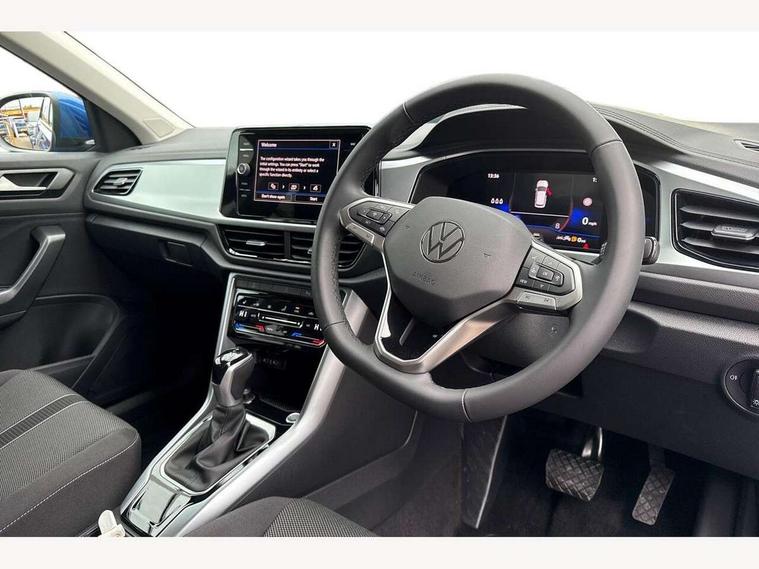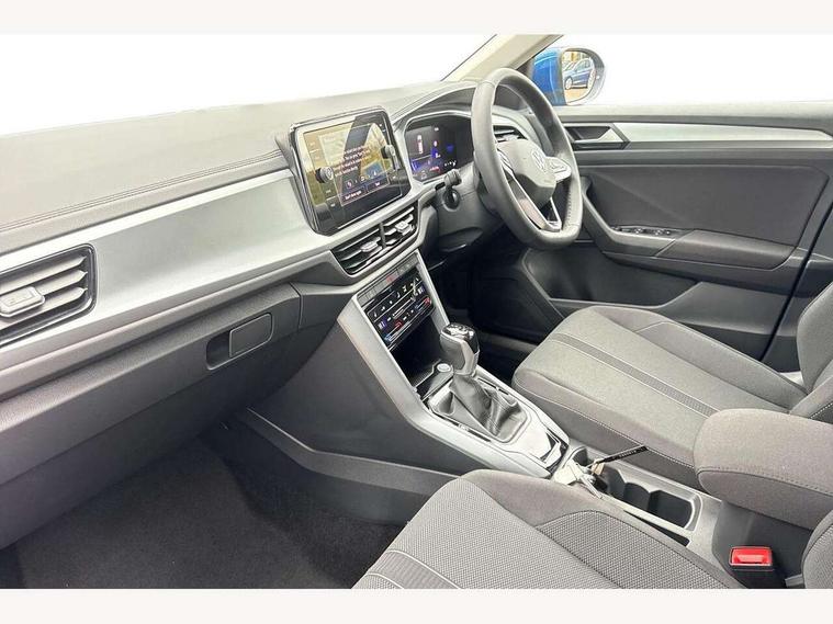 Advanced driver attention and drowsiness monitor, Dynamic road sign display, Emergency call service, Lane keeping system Lane Assist, Mobile phone interface, Modified key software - reduce switch off time for key status change to Long no motion, Online services, Park assist including front and rear parking sensors, Power assisted speed sensitive steering, Rear view camera, Service interval indicator, Tailgate/trunk lid release from outside, Think blue trainer driver tips and journey analysis, Warning sound and light for front seatbelts unfastened, Wireless app connect, Battery regeneration during braking, Front shock absorption, Rear shock absorption chassis with increased ride height, Start/stop function with battery regeneration, DAB Digital radio, Diversity antenna for FM reception, Music playback - MP3, WMA and AAC files, Premium USB cable in choice of either Apple or Android smartphone compatibility, SD card slot, Simultaneous pairing of 2 compatible mobile devices, Title and cover art display, We Connect and We Connect Plus functionality, Auto dimming interior rear view mirror, Automatic hazard lights activation under emergency braking, Automatic headlight control with LED separate daytime running lights with coming/leaving home function, Black roof rails, Body coloured bumpers and radiator grille with chrome trim and front fog lamps with chrome bezel, Body coloured exterior mirror housings and door handles, Electrically adjustable and heated door mirrors, Extended roof spoiler, Exterior mirrors aspherical on driver side, convex on front passenger side, External USB type C socket and charging sockets, Front windscreen wiper with intermittent wipe and 4 position delay, Heated rear window, LED 3rd brake light, LED rear combination lamps, LED rear number plate lights, Power windows with comfort operation and circuit breaker, Privacy glass for rear side windows and rear window, Rain sensor, Rear exhaust tailpipe, Rear fog light on one side and reversing lights on both sides, Rear side wing doors, Rear wash/wipe with intermittent wipe setting, Remote electrically foldable door mirrors, puddle lights and reverse activated passenger's door mirror, 12V power socket in centre console, 3 rear head restraints, 3 seat bench in 2nd row, 4 load lashing points in luggage compartment, Air care climatronic air conditoning system with active combination filter and 2-zone temperature control, Black stitching for floor mats, Ceramique roof liner, Cloth upholstery, Door and side trim panel in cloth, Drawer under drivers seat, Driver/front passenger seat height adjustment, Front centre armrest, Front comfort sports seats, Front cupholders x 2, Front reading light, Front seat back storage pockets, Glove compartment door with light, Instrument lighting, white adjustable panel illumination, Interior ambient lighting and surround lighting, Interior light delay, Isofix child seat preparation, Leather gearshift handle, Load-through provision with cup holder when folded down ('Unsplit rear seat bench, split folding backrest, with centre armrest), Luggage compartment lighting, Lumbar support for driver's and front passengers seat, Non-folding front passenger seat backrest, Single front passenger seat, Storage compartment in left and right luggage area, Storage compartment in rear doors, Storage compartments in driver and front passenger doors, Sunvisors with illuminated vanity mirrors, Variable boot floor, height adjustable and removable, Driver assistance pack without proactive passenger protection - T-Roc Life/Match, 3 point height adj front seatbelts + pretensioners, 3 point seatbelts in outer rear with ECE label, ABS, Child locks on rear doors, City emergency braking and pedestrian monitoring, Driver and front passenger airbag with front passenger airbag deactivation, Driver and front passenger safety-optimised head restraints, Drivers seatbelt reminder, Electronic parking brake, Electronic Stability Control (ESC) inc EDL (Electronic Differential Lock) and ASR (Traction Control), Front and rear passengers curtain airbag system including front side airbags, Front disc brakes, Hill start assist, Predictive pedestrian protection, Rear disc brakes, Two tone horn, Tyre pressure loss indicator, Volkswagen roadside assistance, Alarm with interior protection, Keyless locking and starting system keyless access with safelock, Pewter matt decorative inserts for intrument panel, centre console and door panels at the front, Trims for alloy wheels,