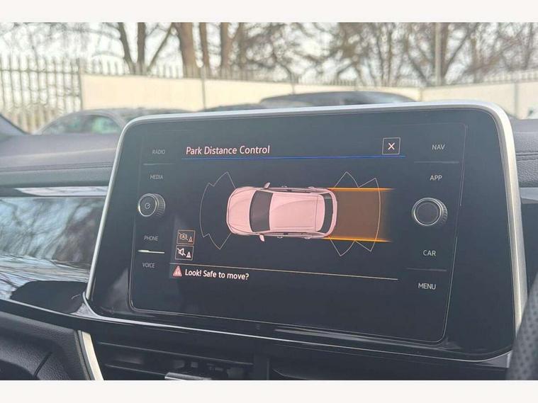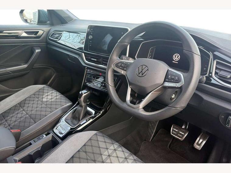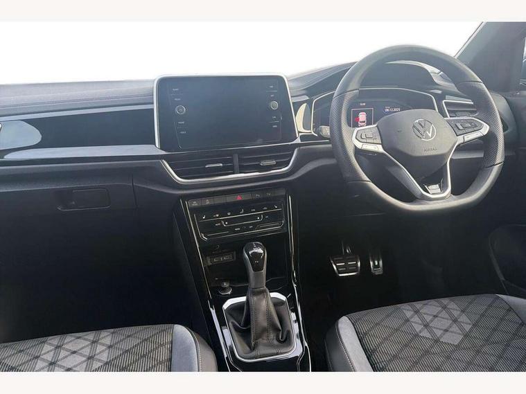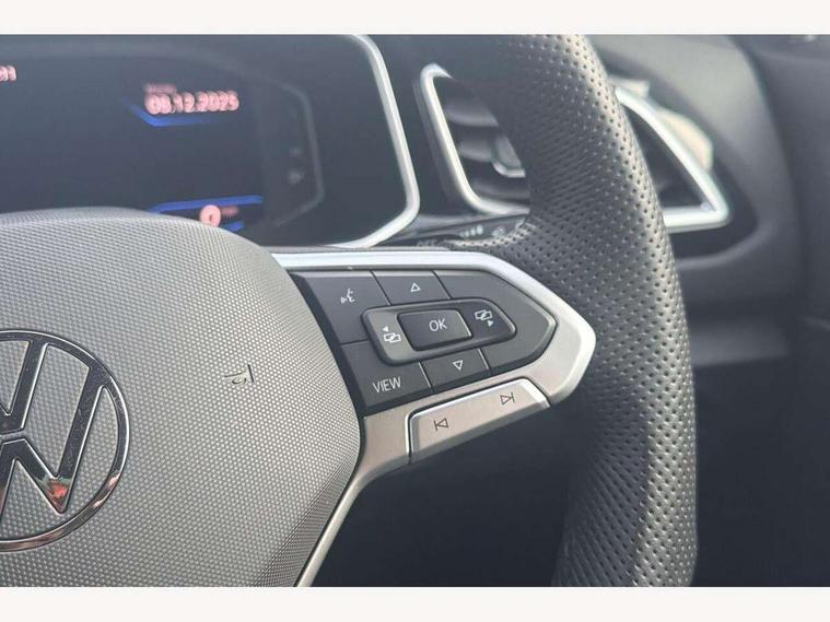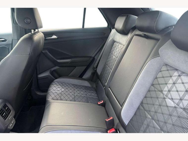 10.25" Digital cockpit pro, Advanced driver attention and drowsiness monitor, Dynamic road sign display, Emergency call service, Lane keeping system Lane Assist, Mobile phone interface, Modified key software - reduce switch off time for key status change to Long no motion, Online services, Park assist including front and rear parking sensors, Service interval indicator, Tailgate/trunk lid release from outside, Think blue trainer driver tips and journey analysis, Warning sound and light for front seatbelts unfastened, Wireless app connect, Battery regeneration during braking, Start/stop function with battery regeneration, DAB Digital radio, Diversity antenna for FM reception, Front and rear 6 speakers, Music playback - MP3, WMA and AAC files, Premium USB cable in choice of either Apple or Android smartphone compatibility, SD card slot, Simultaneous pairing of 2 compatible mobile devices, Title and cover art display, We Connect and We Connect Plus functionality, Auto dimming interior rear view mirror, Automatic hazard lights activation under emergency braking, Automatic headlight control with LED separate daytime running lights with coming/leaving home function, Body coloured exterior mirror housings and door handles, Electrically adjustable and heated door mirrors, Extended roof spoiler, Exterior mirrors aspherical on driver side, convex on front passenger side, External USB type C socket and charging sockets, Front windscreen wiper with intermittent wipe and 4 position delay, Heated rear window, LED 3rd brake light, LED rear combination lamps, LED rear number plate lights, Power windows with comfort operation and circuit breaker, Privacy glass for rear side windows and rear window, R-Line design body coloured bumpers, Rain sensor, Rear exhaust tailpipe, Rear fog light on one side and reversing lights on both sides, Rear side wing doors, Rear wash/wipe with intermittent wipe setting, Remote electrically foldable door mirrors, puddle lights and reverse activated passenger's door mirror, 12V power socket in centre console, 3 rear head restraints, 3 seat bench in 2nd row, 4 load lashing points in luggage compartment, Air care climatronic air conditoning system with active combination filter and 2-zone temperature control, Black roof lining, Chrome plated decorative trims, Chrome plated radiator grille inserts, air vent surrounds and light switch surrounds, Door and side trim panel with leatherette insert, Front + rear carpet mats, Front centre armrest, Front cupholders x 2, Front footwell illumination, Front reading light, Front scuff plates with R Line logo, Front seat back storage pockets, Glove compartment door with light, Instrument lighting, white adjustable panel illumination, Interior ambient lighting and surround lighting, Interior light delay, Isofix child seat preparation, Leather gearshift handle, Load-through provision with cup holder when folded down ('Unsplit rear seat bench, split folding backrest, with centre armrest), Luggage compartment lighting, Single front passenger seat, Stainless steel pedals, Storage compartment in left and right luggage area, Storage compartment in rear doors, Storage compartments in driver and front passenger doors, Sunvisors with illuminated vanity mirrors, Variable boot floor, height adjustable and removable, Driver assistance pack without proactive passenger protection - T-Roc, 3 point height adj front seatbelts + pretensioners, 3 point seatbelts in outer rear with ECE label, ABS, Child locks on rear doors, City emergency braking and pedestrian monitoring, Driver and front passenger airbag with front passenger airbag deactivation, Driver and front passenger safety-optimised head restraints, Drivers seatbelt reminder, Electronic parking brake, Electronic Stability Control (ESC) inc EDL (Electronic Differential Lock) and ASR (Traction Control), Front and rear passengers curtain airbag system including front side airbags, Hill start assist, Predictive pedestrian protection, Rear disc brakes, Two tone horn, Tyre pressure loss indicator, Volkswagen roadside assistance, Piano black decorative inserts in dashboard and front door trim panels, Trims for alloy wheels,