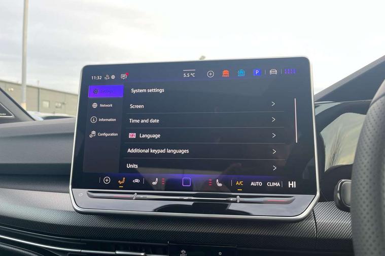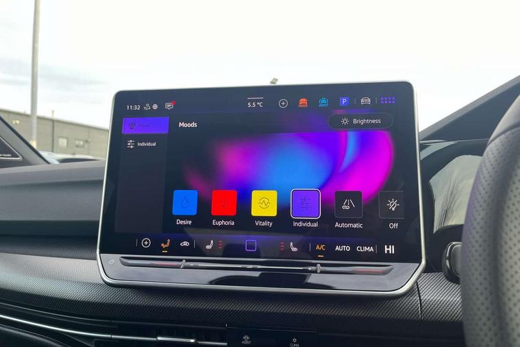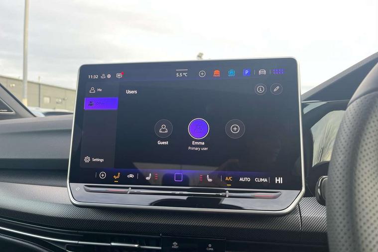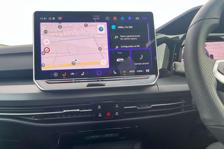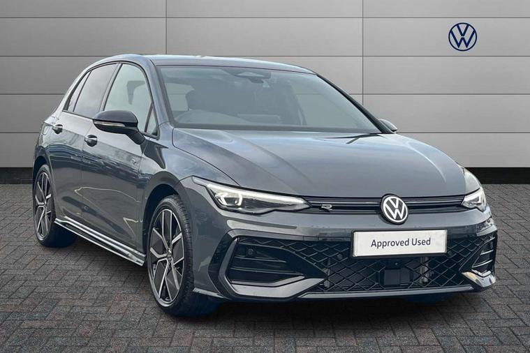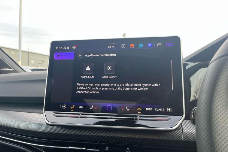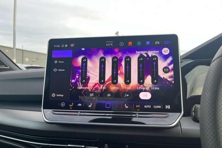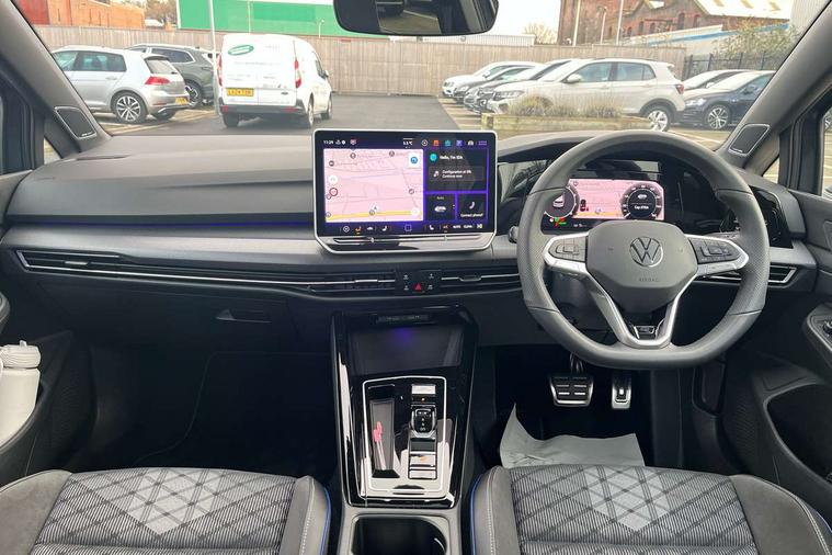Activated carbon canister, Adaptive cruise control (ACC), Advanced driver attention and drowsiness monitor, Dynamic road sign display, Dynamic steering, E-Sim card for online connectivity, eCall emergency call system, Multi-color Digital cockpit pro, selection of different info profile possible, Multifunction front facing camera for distance control, Navigation system, Oncoming vehicle braking when turning including swerve support, Speed limiter, Speedo, rev counter, electronic odometer, trip, service interval display, exterior temperature and fuel gauge, Traffic jam assist, Voice enhancer and voice control, Warning signal and warning light for front and rear seatbelts not fastened, We connect plus preparation, We connect preparation, Wireless app connect, Hybrid propulsion system, Petrol Particulate Filter, Start-stop system with battery regeneration (recuperation - energy recovery during braking), XDS electronic differential lock for improved traction and handling, 2 USB C ports in front, 2 USB charging sockets on the centre console in the rear charging capacity upto 45W, Digital radio reception (DAB), Diversity antenna for FM reception, Gaming platform via car app, Infotainment system with 12.9" display, Mobile phone interface with inductive charging feature, 3rd brake light, Auto dimming rear view mirror, Automatic headlamp activation with Coming home and Leaving home feature, Body colored bumpers in R-Line style, Body colour door handles, Exterior ambient lighting, Exterior mirrors convex on the left and aspherical on the right, Front and rear electric windows, Heat insulating windshield made of laminated glass, LED separate daytime running light, Rain sensor, Rear exhaust tailpipe, Rear fog light on one side and reversing lights on both sides, Rear side wing doors, Rear windscreen washer and wiper with interval delay, Remote electrically foldable door mirrors, puddle lights and reverse activated passenger's door mirror, Volkswagen logo in front, illuminated lighting animation with wake up/goodbye scenario and illuminated door handles, Welcome light with surround lighting, 12V socket in front centre console, 12V socket in luggage compartment, 3 rear head restraints, 3 seat bench in 2nd row, Ambient lighting with 30 colour including LED light unit in front footwell with selectable light colour, Black roof lining, Brushed stainless steel pedals, Chrome plated radiator grille inserts, air vent surrounds and light switch surrounds, Door insert, side trim panel and arm support in leatherette, Front + rear black carpet mats, Front centre armrest, Front seat lumbar support adjuster, Integrated front head restraints, ISOFIX anchors for child seats on outer rear bench seats and on front passanger seat compatible for i-Size, Luggage compartment lighting, Manual height adjustable front passenger seat, Manually height adjustable driver seat, Plastic gear knob, Premium sports seats in front, Rear cupholder and loadthough, Sardegna cloth upholstery with front and outer rear seats Art Velour inner sides of bolsters, Single front passenger seat, Split folding backrest with centre armrest and unsplit rear seat bench, Sun visors with illuminated vanity mirrors, Titanium black instrument panel, Black exterior Styling package with Matrix LED headlights - Golf, Winter package - Golf DSG Estate/Hatchback, 3 point height adj front seatbelts + pretensioners, 3 rear three point seatbelts, ABS, Autonomous emergency braking front assist with pedestrian and cyclist monitoring, Child locks on rear doors, Driver and front passenger airbag with front passenger airbag deactivation, Electronic parking brake with auto hold, ESC (Electronic Stability Control), Extended pedestrian protection measures, Hill start assist, Rear disc brakes, Two tone horn, Tyre pressure loss indicator, Volkswagen roadside assistance, Anti theft wheel bolts, Preparation for alcohol interlock, Decorative inserts carbon grey for dashboard and front door trim panels, 18" Leeds alloy wheels, Tool kit for tyre mobility set, Tyre mobility kit Includes 12V compressor and tyre sealant,
