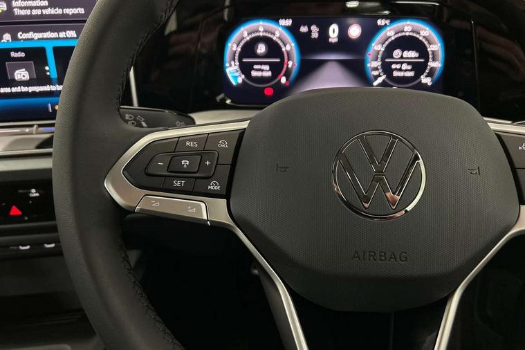 Activated carbon canister, Adaptive cruise control (ACC) with speed limiter and front assist (reacting to vehicles pedestrians and cyclists), Advanced driver attention and drowsiness monitor, Car2X intelligent vehicle networking, Discover media navigation system, Driver alert system, Dynamic road sign display, E-Sim card for online connectivity, eCall emergency call system, Infotainment system with scalable module options Version 2, Multi-color Digital cockpit pro, selection of different info profile possible, Multifunction camera for distance control, Oncoming vehicle braking when turning including swerve support, Power assisted speed sensitive steering, Speedo, rev counter, electronic odometer, trip, service interval display, exterior temperature and fuel gauge, Voice assistant and voice enhancer with chat GPT, Warning signal and warning light for front and rear seatbelts not fastened, We connect plus preparation, We connect preparation, Wireless app connect, Start-stop system with battery regeneration (recuperation - energy recovery during braking), XDS electronic differential lock for improved traction and handling, 12.9" infotainment display, Comfort telephony + wireless charging, without wireless aerial connection, DAB radio, Diversity antenna for FM reception, Gaming platform via car app, Mobile phone interface with inductive charging feature, 4 speed front wiper/interval delay, Auto headlights, Automatic headlamp activation with Coming home and Leaving home feature, Body colour door handles, Body colour door mirrors, Body colour rear roof spoiler, Chrome plated radiator grille inserts and light switch surrounds, Electrically heated and adjustable door mirrors with memory feature, Exterior mirrors convex on the left and aspherical on the right, Front and rear electric windows, Front windscreen washers, Heat insulating windshield made of laminated glass, High level 3rd brake light, Illuminated door handles, LED License plate illumination, LED separate daytime running light, Rear exhaust tailpipe, Rear fog light on one side and reversing lights on both sides, Rear side wing doors, Rear windscreen washer and wiper with interval delay, Remote electrically foldable door mirrors, puddle lights and reverse activated passenger's door mirror, Standard bumpers, Welcome light with surround lighting, 12V socket in front centre console, 12V socket in luggage compartment, 2 USB C ports in front, 2 USB charging sockets on the centre console in the rear charging capacity upto 45W, 3 rear head restraints, 3 seat bench in 2nd row, Front centre armrest with storage compartment, Front cupholders x 2, Glovebox, Height and reach adjustable steering wheel, Isofix child seat preparation for 2 rear child seats and front passenger seat, Leather gearshift handle, Luggage compartment lighting, Rear cupholder and loadthough, Removable luggage compartment cover, Single front passenger seat, Split folding backrest with centre armrest and unsplit rear seat bench, Standard pedal cluster, Storm black instrument panel, Storm grey roof lining, Sun visors with illuminated vanity mirrors, 3 point height adj front seatbelts + pretensioners, 3 rear three point seatbelts, ABS, Autonomous emergency braking front assist with pedestrian and cyclist monitoring, Child locks on rear doors, Driver and front passenger airbag with front passenger airbag deactivation, Drivers and front passengers safety optimised head restraints, Electronic parking brake with auto hold, ESC (Electronic Stability Control), Extended pedestrian protection measures, Front disc brakes, Rear disc brakes, Two tone horn, Tyre pressure monitoring system, Volkswagen roadside assistance, Anti theft wheel bolts, Electronic engine immobiliser, Chrome plated air vent surround, Nature cross brushed decorative inserts for dashboard and front door panels and side trim,