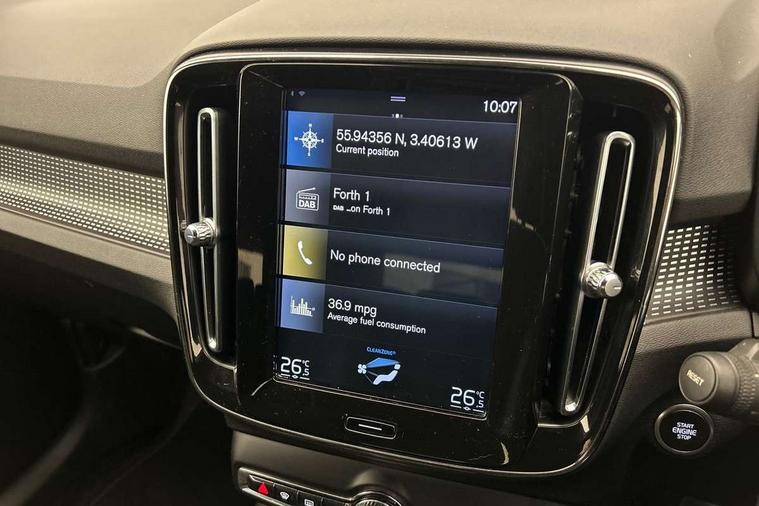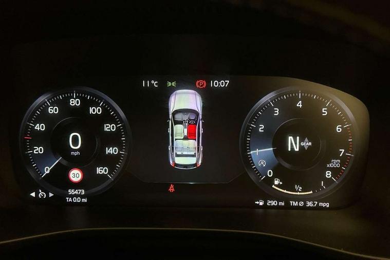 Cutting edge aluminium inlay, Anti-theft alarm including immobiliser/volume sensor + level sensor, Fuel flap with deadlocking system, Key integrated remote control central locking, Locking wheel nuts, Private locking, DAB Digital radio, Steering wheel mounted remote controls, ABS/EBD, City safety, Drivers knee airbag, DSTC-Dynamic Stability and Traction Control, Dual stage driver/passenger airbags, EBA, Electronic parking brake with auto hold, Fasten seatbelt reminder, First aid kit, Front seat side impact airbags, Hill descent control, Hill start assist, Inflatable curtain, Passenger airbag cut-off device, Road sign information display, Run off Road Mitigation, Run off Road Protection, Seatbelt pre-tensioners, Side impact protection, Tyre pressure monitoring system, Warning triangle, WHIPS whiplash protection system - front, Adaptive brake lights, Auto dimming interior mirror, Automatic headlamp levelling, Black stone door mirrors, Black stone roof, Dark tinted glass for rear windows + rear screen + side luggage area window, Dual integrated exhaust pipes with high gloss black surround, Electrically adjustable and heated door mirrors, Embossed rear side roof pillar, Front and rear electric windows, Front tread plates, High gloss black front and rear skid plate, High gloss black lower front bumper, High gloss black mesh grille, High gloss black roof rails, High gloss black window trim, Home safe and approach lighting, LED front fog lights, LED Headlights + Active high beam incorporating daytime running lights, Rain sensor windscreen wipers, Rear wiper, Roof antenna, Roof spoiler, Visible VIN plate, 12V socket in front tunnel console, 2 zone electronic climate control with air quality system, 3 spoke leather steering wheel with chrome trim, 60/40 split folding rear seat, A-pillar parking ticket holder, Ambient lighting in door panels, Black headlining, Bright metal luggage threshold, Centre console cupholders, Centre console storage box, Contour sports seats with leather/nubuck upholstery, Cooled glovebox, Courtesy lights, Driver's lower storage shelf, Extended front seat cushions, Front and rear headrests, Front door pockets, Front footwell illumination, Front/rear reading lights, Glovebox bag hook, Glovebox illumination, Height adjustable drivers seat with lumbar support, Height/reach adjustable steering column, Illuminated driver/passenger vanity mirrors, Illuminated front cupholder, Illuminated luggage compartment, Illuminated tailgate, Isofix attachments on rear seats, Multicolour theatre lights, Passenger seat adjustable for lumbar support, Perforated leather gearknob, Perforated Leather Key Integrated Remote, Perforated leather steering wheel, Pollen filter, Rear armrest / integral cup holders / storage tray, Sports pedals, Underfloor stowage compartment, 12.3" Active TFT crystal driver's instrument display, 9" Touch screen, Adjustable steering wheel force, Bluetooth hands free telephone kit, Drive mode selector, Lane keep assist with driver alert control, Oncoming Lane Mitigation, Sensus navigation system, Speed limiter, Speed sensitive steering, Voice control system, Volvo on call,