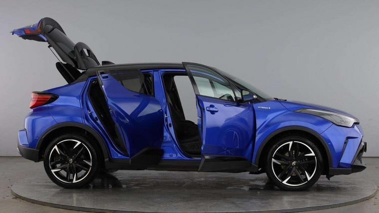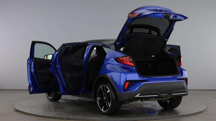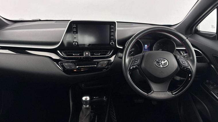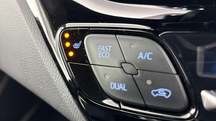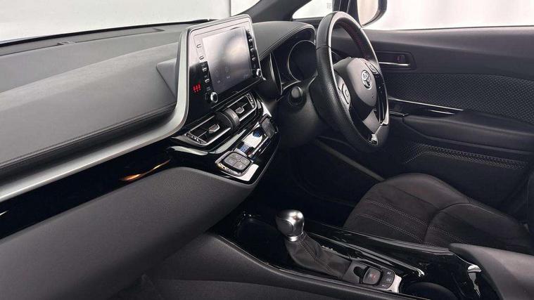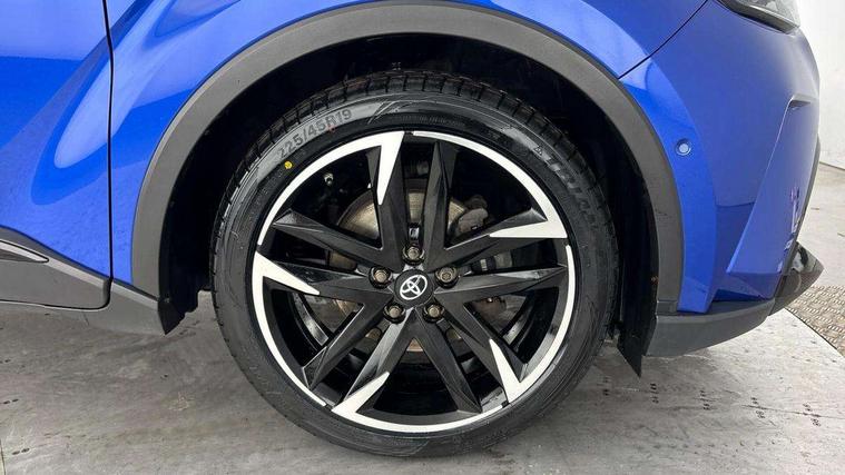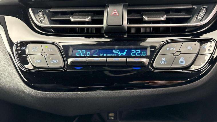 4.2" coloured TFT screen for multi-information display, Adaptive cruise control, Bluetooth connectivity, Electric power steering, Hybrid system indicator, Lane departure alert with steering control, Remote boot door release in cabin, Remote boot door release in key, Reversing camera, Road sign assist - RSA, Simple Intelligent parking assist, Touch 2 Go navigation system, Trip computer, Voice recognition, Vehicle Stability Control (VSC), 6 speakers, AM/FM radio, DAB Radio (Digital Audio Broadcasting), Toyota touch 2 multimedia system with 8" display, USB connector, Wi-fi connectivity, Adaptive front light system, Adaptive LED Headlights, Anti-jam protection on power windows, Auto high beam, Auto up and down function on all power windows, Automatic headlight levelling, Automatic headlights, Automatic headlights cut-off, Black and body coloured rear bumper, Black upper front grille, Body colour door handles, Body colour door mirrors, Body coloured front bumper, Boot door release with push button, Chrome front lower bumper, Electric heated door mirrors, Follow me home headlights, Front and rear power windows, Front spoiler lip in black, Hard tonneau cover, Honeycomb lower front grille, LED daytime running lights, LED fog lights, LED front light guide, LED High mounted stop light, LED rear brake lights, LED rear combination lights, Noise reduction layer on front windows and windscreen, Power adjustable door mirrors, Privacy glass, Rear sequential indicators, Rear spoiler, Rear tailgate, Rear window defogger, Rear window wiper, Shark fin antenna, UV-filter on driver and passenger windows, UV-filter on rear windows, 12v power outlet - front, 3 rear headrests, 3 spoke perforated leather steering wheel, 60/40 split folding rear seat, Adjustable rear headrests, Adjustable speed limiter switch on steering wheel, Assist grips front and centre pillar, Audio and telephone switches on steering wheel, Black front door assist grips, Blue ambient lighting on front cup holders, Blue ambient lighting on front doors, Boot light, Chrome interior door handles, Driver and front passenger personal light, Driver and front passenger Whiplash Injury Lessening seats, Driver and passenger seatback pockets, Dual zone automatic air conditioning, Fabric upholstery, Front cupholders, Front head restraints, Front sports seats, Glovebox with internal light, Heated driver and front passenger seats, Hooks for luggage holding net, Humidifying Nanoe air purifier, Illuminated entry system, Isofix attachments on rear seats, Leather gearshift, Light on driver sun visor, Light on passenger sun visor, Manual telescopic steering wheel, Manual tilt steering wheel, Manually height adjustable driver seat, Manually height adjustable front passenger seat, Manually reclining driver seat, Manually reclining front passenger seat, Manually sliding driver seat, Manually sliding front passenger seat, Microphone on front personal light, Mirror on driver sun visor, Mirror on passenger sun visor, Multimedia switches on steering wheel, Pollen filter, Power adjustable lumbar support on driver seat, Shopping bag hooks, Slow opening on lower glovebox, Voice recognition switch on steering wheel, Tech with parking sensor pack - C-HR, 16 Disk front wheel brake, 3x3 point rear seatbelts, ABS+EBD+Brake assist, Electronic parking brake, Front and rear seatbelt reminder, Front passenger airbag on/off switch, Hill start assist control (HAC), Pre collision system with pedestrian detection, Pre-tensioners and force limiters, Rear door child safety locks, SRS Airbags - Driver + Front passenger, front side, front and rear curtain and driver's knee airbags, Toyota safety sense, Tyre pressure monitoring system, Acoustic vehicle alert system (AVAS), Glass-breaking alarm sensors, Immobiliser, Intrusion alarm, Intrusion sensor, Motion sensor alarm, Power door locks, Power passenger window lock, Remote central locking, Black lower dashboard, Black upper dashboard, Piano black console, Silver deco line on upper dashboard, 19" Black machined alloy wheels, Tyre repair kit,