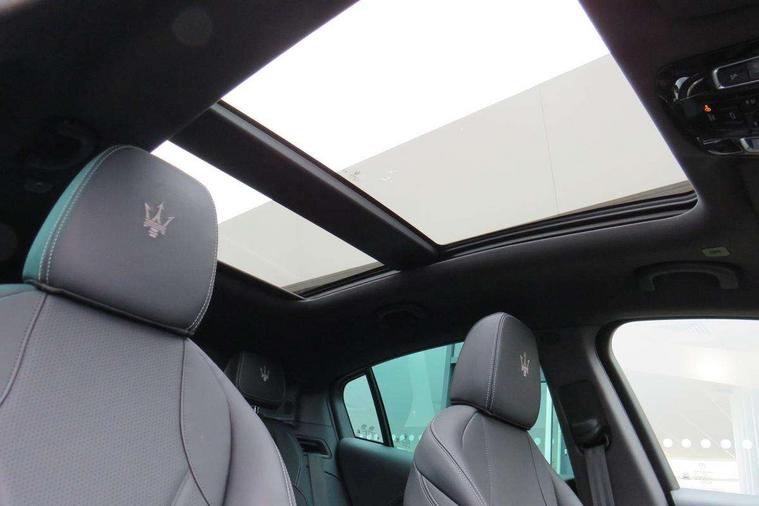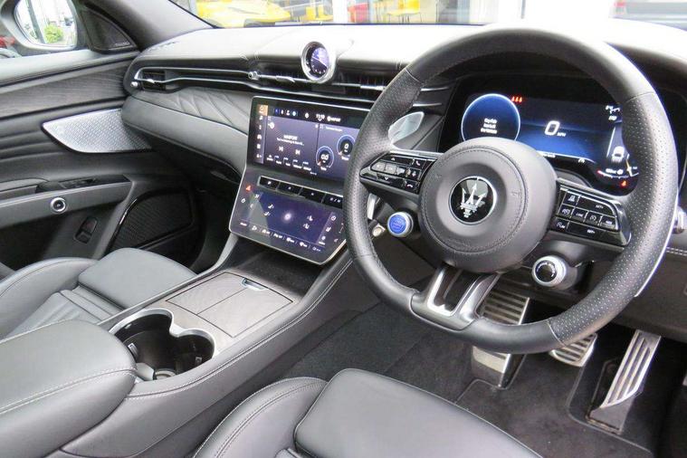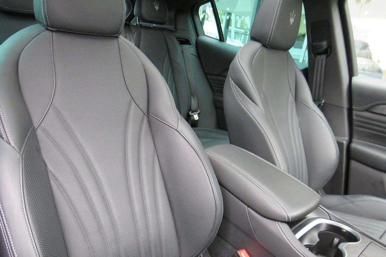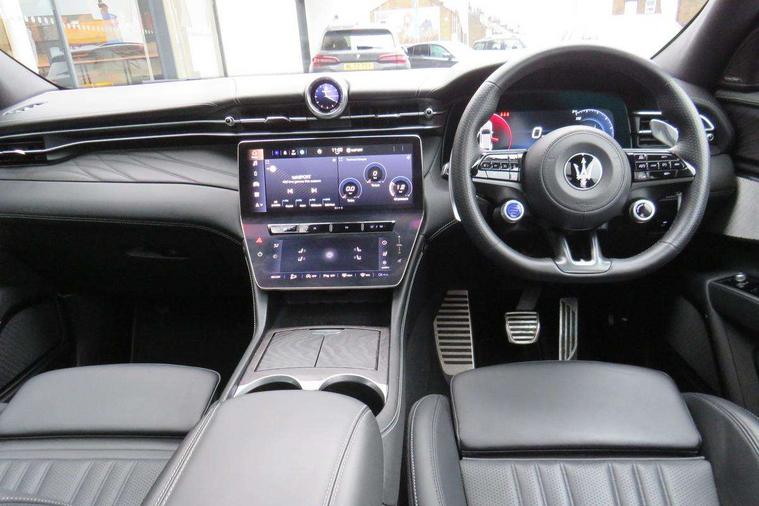 12.3" full TFT digital colour display cluster with onboard computer and driver information, 12.3" HD touch screen central display with Maserati Intelligent Assistant (M.I.A) and satelite navigation, Android Automotive OS, 8.8" multifunction comfort display with smart gestures (controls for front/rear climate, seats, headlights, ambient lighting, clock & air suspension), Active lane management (active blind spot and lane keeping), Adaptive cruise control with Stop and Go, Apple CarPlay and Android Auto, Bluetooth, Connectivity Services (Europe), Drive mode selector including suspensions stiffness (Comfort, GT, Offroad, Sport), Drowsy driver detection, E-call, Electronic Power Steering (EPS), Front and rear parking sensors with rear active braking, GSR step 1 removal, Maserati connect, Power tailgate, Speedometer with mph readout, Start and stop engine function, Surround view camera system, TBM (Telematic Box Module) for Connectivity, Wireless charger, All wheel drive system, Engine sound enhancement (ESEM), Multilink front suspension with semi virtual steering axis and multilink rear suspension with lower control arm, ZF - 8 speed automatic transmission, 4 USB charging port, Digital Audio Broadcast (DAB), Air shutter control, Aluminium front door sills, Auto dimming exterior mirrors, Auto dimming interior frameless mirror, Automatic headlight activation with dusk sensor, Badges in black finish, Black antenna, Black candybar, Black door handles, Black exterior mirror housings, Black side skirts inserts, Black wheel arches, Daylight opening (DLO) in black finish, Demist sensor, Front and rear electric windows with anti-pinch sensor, Front grille with vertical grille bars in piano black finish, Front splitter in black, Heated door mirrors, Heated rear windscreen, Heated windscreen washer nozzles, LED rear fog light, LED tail lights and third stop light, Light body cover, Lower bumper in black, Power folding door mirrors including memory, Puddle lights, Quad tips exhaust system with sport valve in black finish, Rain sensor, Rear roof spoiler, Rear side wing doors, Rear wiper, 14 way power front sports seats with driver's side memory fuction, 3 seat bench in 2nd row, 40/20/40 split folding rear seat, Air quality sensor, Ambient lighiting on dashboard and door panels, Brushed stainless steel sports pedals, Drilled leather multifunction steering wheel in forged black with fixed aluminium paddle shifters and blue start stop button, Driver and passenger sunvisor with mirror and courtesy light, Fabric headlining trim, Front and rear floor mats, Front and rear headrests, Front armrest with 12V power outlet, Heated front seats, Heated rear seats, Isofix, Maserati digital smart clock on dashboard, Power height and reach adjustable steering column, Rear armrest with 2 cupholders, Rear seats with ski hatch, Single front passenger seat, Three zone automatic climate control with rear touch screen, Trident stitching on headrest, Two front cup holders, Ventilated front seats, 3x3 point rear seatbelts, Acceleration Slip Regulation (ASR), Antilock Braking System (ABS), Electronic Brake Distribution (EBD) and Motor Slip Regulation (MSR), Advanced brake assist, Automated emergency braking with pedestrian recognition, Child locks on rear doors, Driver and passenger advanced dual stage front airbags, Electronic parking brake, Electronic Stability Control (ESC), Front and rear side curtain airbags, Front seat belts with pre-tensioners and load limiters, rear seat belts with load limiters, Front seat mounted side airbags, Front seatbelt reminder, Height adjustable front seatbelts, Hill descent control, Hill start assist, Integrated vehicle control, Manual passenger airbag deactivation function, Performance braking system - Ventilated brakes: 350mmX28mm with fixed, four piston callipers at front, 330mmX22mm with floating MOC calliper at rear, Tyre pressure monitoring system, Vehicle domain control module (VDCM), Cyber security level 3, Driver and front passenger doors Keyless entry and keyless go function, Perimeter alarm system including volumetric sensing, anti-lift device and electronic immobiliser, Second hand key fob, Vodafone stolen vehicle recovery with automatic driver recognition and remote inhibition, 3 years premium service plan, Fix and go tyre sealing compound and electric air compressor,