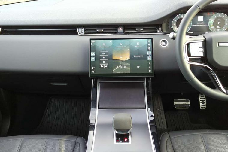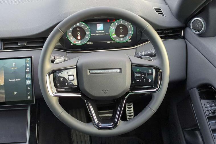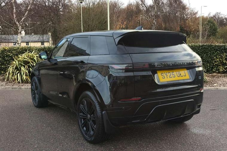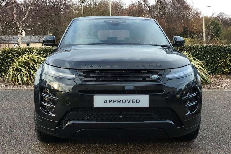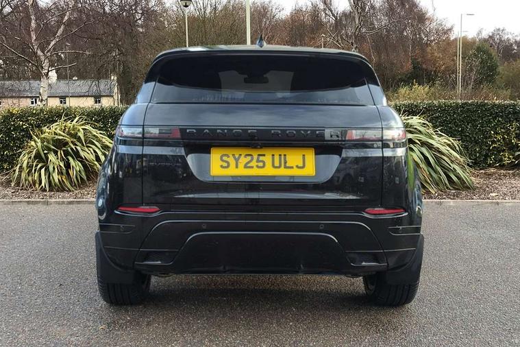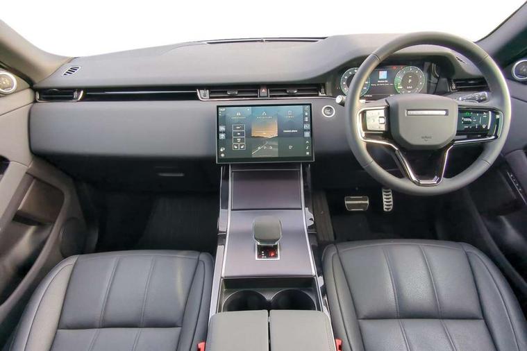 11.4" touch screen, 3D 360 degree surround camera with wade sensing, Adaptive cruise control, Android Auto, Apple car play, Blind spot assist, Bluetooth connectivity, Brake pad wear indicator warning light, Driver condition monitor, eCall emergency system, Eco mode, Electronic power assisted steering (EPAS), Front and rear parking aid, InControl remote, Interactive driver display, Land Rover InControl apps, Lane keep assist, Pivi pro connected includes diamond pivi variant, smart settings, connected navigation pro, nuance speech licence, Powered tailgate/boot lid, Rear collision monitor, Rear traffic monitor, Tailgate, Traffic sign recognition with adaptive speed limiter, Voice control system, Wireless device charging, All terrain progress control, Electric rear axle drive, Home charging cable, Large fuel tank, Passive suspension, Public charging cable, Terrain Response 2, Digital Audio Broadcast radio-DAB, Meridian sound system with 400W subwoofer and 11 speakers, Steering wheel mounted controls, Acoustic laminated windscreen, Auto dimming interior rear view mirror, Auto headlights, Auto high beam assist, Automatic headlight levelling, Black contrast roof, Electric windows with one touch open/close and anti trap, Fixed panoramic sunroof with powered sunblind, Flush deployable exterior door handles, Front and rear recovery eyes, Heated rear window with timer, Heated washer jets, Heated windscreen, LED headlights with signature DRL and LED tail Lights, Metallic paint, Power fold, auto-dimming, heated door mirrors with approach lights and auto dimming driver side, Privacy glass, Rain sensing windscreen wipers, Rear animated directional indicators, Rear fog lights, Rear side wing doors, Rear wiper, Tailgate spoiler, Third brake light, Winter wiper park position, 12 way driver memory and 10 way passenger electric front seats with 2 way manual headrest + 4 way lumbar support, 40:20:40 split folding rear seats with centre headrest and armrest, Bright metal pedals, Cabin lighting, Carpet mats, Chrome tread plates with range rover branding Includes stainless steel loadspace scuff plate with etched graphic, Customer configurable single point entry, Front and rear cupholders, Grained Leather upholstery, Heated front seats, Heated steering wheel, Isofix system on outer rear seats, Manually adjustable steering column, Overhead lighting console, Overhead stowage for sunglasses, Passive front head restraints, Rear air vents, Rear head restraints, Satin chrome gearshift paddles, Single passenger seat, Standard steering wheel with Moonlight Bezel, Sunvisors with illuminated vanity mirrors, Twin sliding front centre armrest, Two zone climate control, Black exterior styling pack - Evoque, Power socket pack 2 - Evoque, 3 rear 3 point seatbelts, Anti-lock braking system (ABS), Black brake calipers, Brake hold function, Customer configurable autolock, DSC - Dynamic Stability Control, Electronic brake force distribution, Electronic parking brake, Electronic traction control, Emergency braking, Front and rear seatbelt reminder, Hill descent control, Hill launch assist, Low traction launch, Occupant protection assist, Passenger seat occupant detector, Power operated child locks, Roll stability control, Six airbags - Driver and passenger airbags/driver knee airbag/front side airbag and curtain airbags, Torque vectoring brake, Tyre pressure monitoring system, Alarm, Immobiliser, Intrusion sensor, Keyless entry, Locking wheel nuts, Secure tracker pro, Black brushed aluminium finisher, 19" gloss black alloy wheels - Style 5136, All season tyres, Tyre repair system,