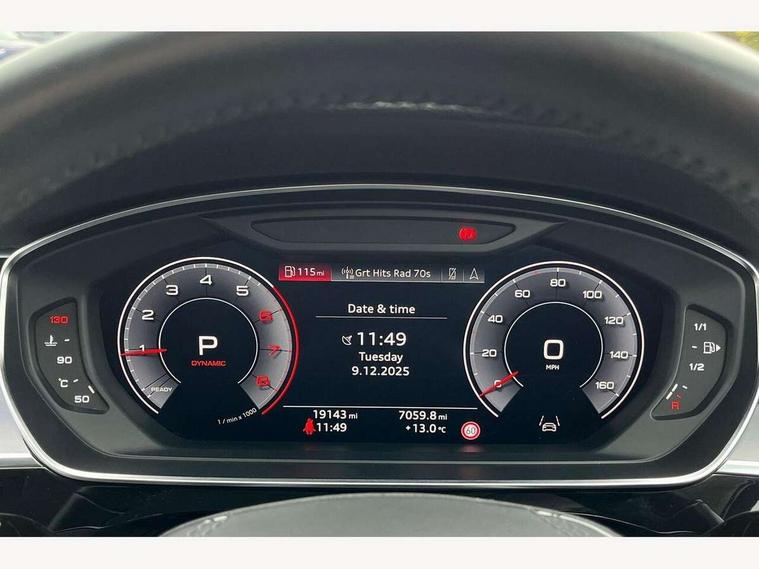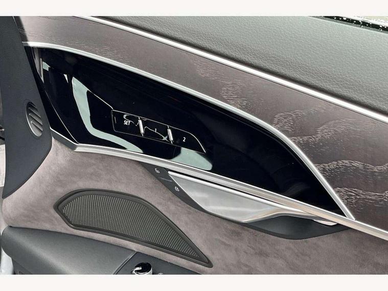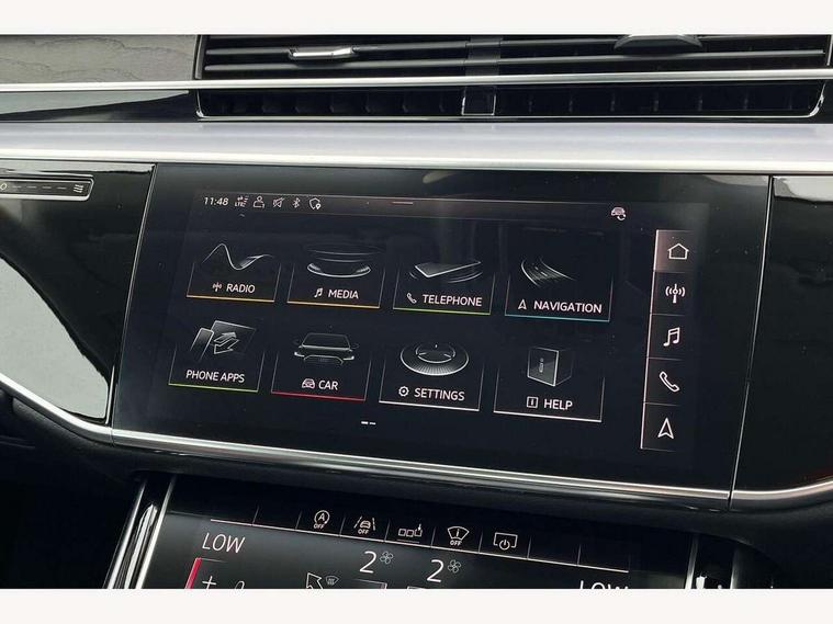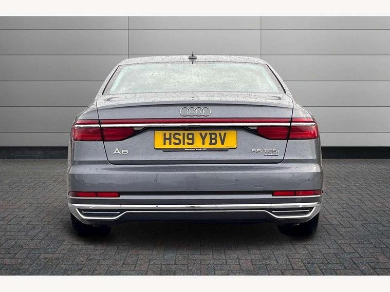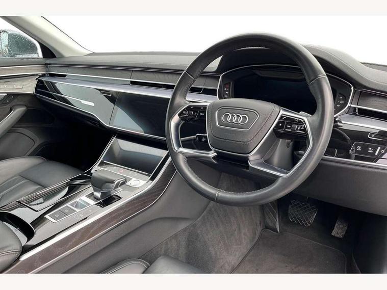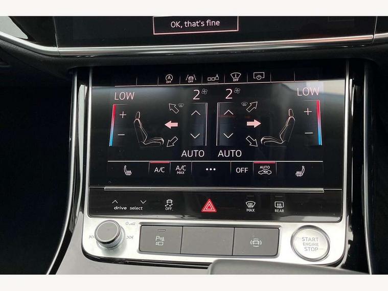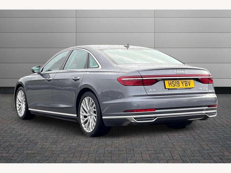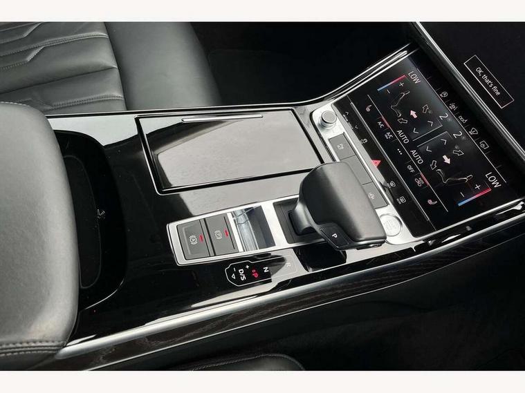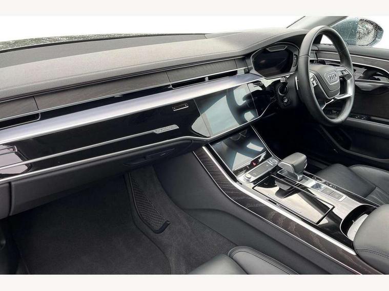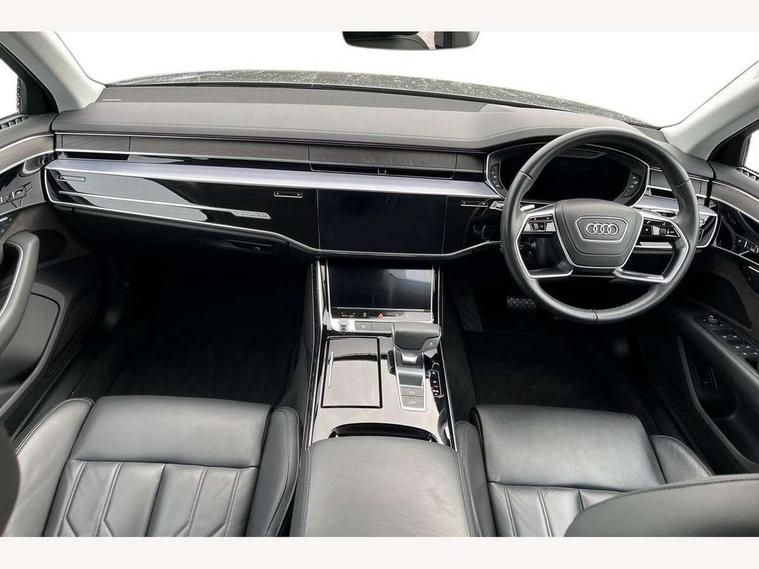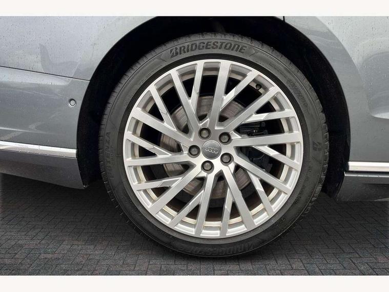 'Lights On' Reminder warning buzzer, Adaptive cruise control with Stop and Go + pre sense front, Audi connect, Audi drive select, Audi phone box with wireless charging, Audi smartphone interface, Camera based traffic sign recognition, Colour driver's information system display, Head up Display, Lane departure warning system, MMI navigation plus with MMI touch, Power tailgate, Rear view camera, Remote fuel filler release, Service interval indicator, Virtual cockpit, Adaptive air suspension, DAB digital radio module, DVD System, MMI radio plus, USB connection, Acoustic windscreen, Auto dimming rear view mirror, Automatic headlight control system, Body colour bumpers, Body colour door handles, Body colour door mirrors, Body colour side protection with aluminium trim strips, Electric front windows, Electric heated, adjustable, folding and dimming door mirrors with memory, Electric rear windows with isolation switch, Heat insulating glass windscreen and side windows, Heated rear window, Heated windscreen washer jets, LED brake lights, LED daytime running lights, Reverse activated kerb-view adjustment on passenger's door mirror, 230V socket, 3 rear seats, Centre console with cupholders, Climate controlled seats, Comfort front centre armrest, Cooled glovebox, Door armrest with storage, Door pockets with bottle holder, Dust/pollen filters, Electric 4-way lumbar support for front seats, Electric adj front seatbelt height + memory, Electric front seats with memory function, Front/rear floor mats, Height/reach electric steering column with easy exit function, ISOFIX child seat mounting in front passenger and rear outer seats, Jack and tool kit, Leather gear lever, Multifunction steering wheel, Passenger footwell storage net, Rear centre armrest, Rear head restraints, Roof mounted sunglasses holder, Sunvisors with illuminated vanity mirrors, LED ambient interior lighting pack - A8, Light and rain sensor pack - A8, Luggage compartment pack - A8, 3 point seatbelts on all rear seats, ABS/EBD, Active front headrest system, ASR traction control, Driver and front passenger airbag with front side and head airbags, EDL traction control, Electromechanical parking brake, Emergency brake assist, ESP, Front passenger airbag deactivation, Hill hold assist, Hill start assist, Pre sense basic, Predictive pedestrian protection, Rear child proof door locks, Seatbelt warning, Tyre pressure warning light, Warning triangle and first aid kit, Advanced key, Anti theft alarm tow away protection, Anti theft wheel bolts and loose wheel warning, Locking wheel bolts, Remote central locking, Brushed aluminium lower inlay, Space saver spare wheel,