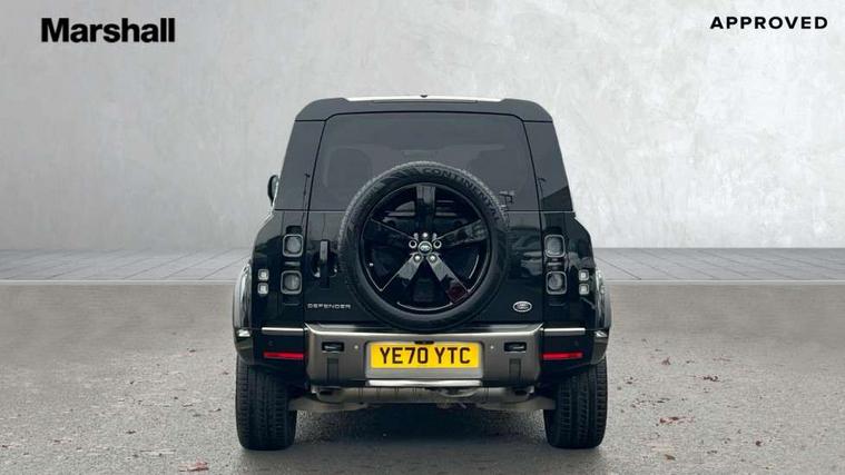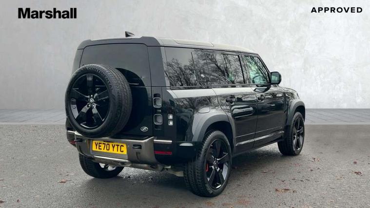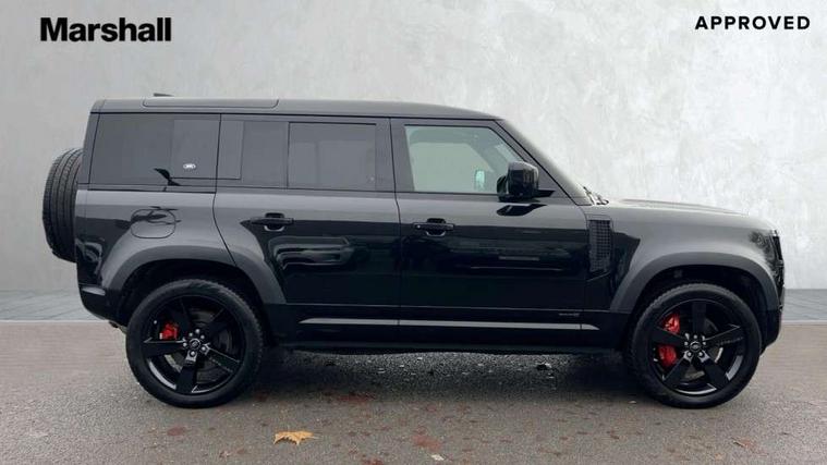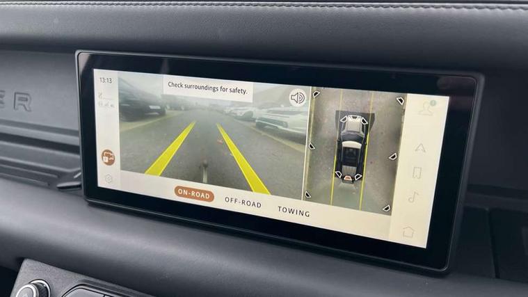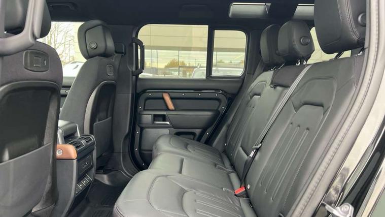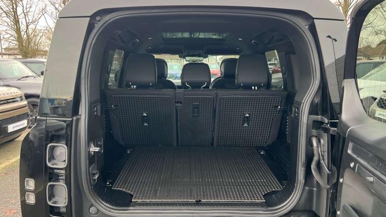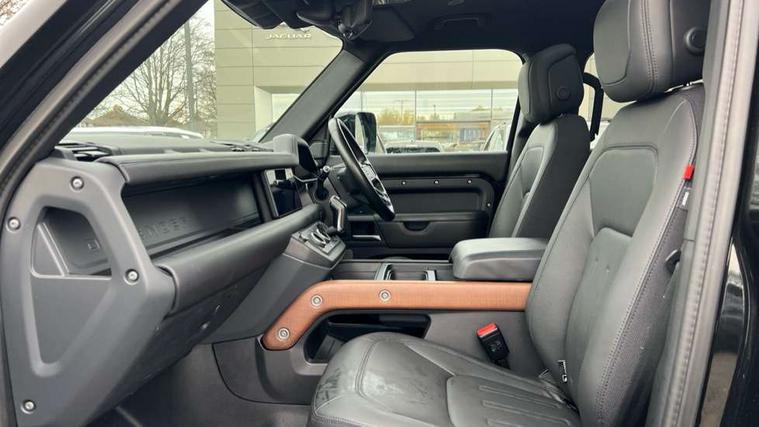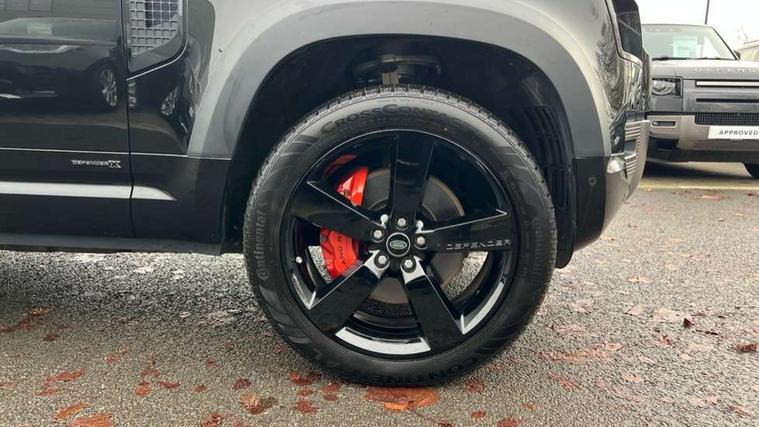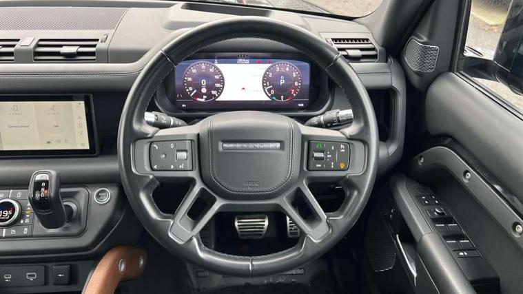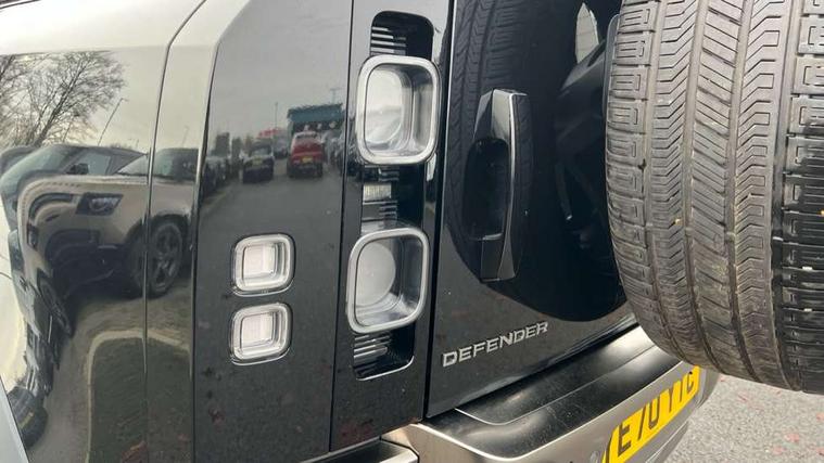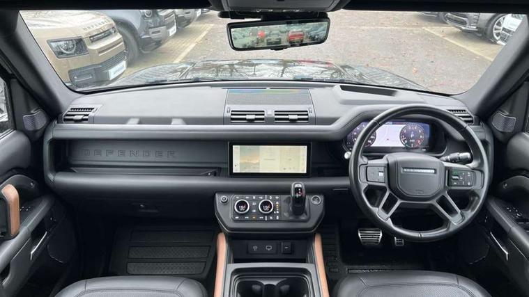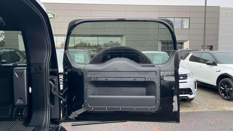 10" touch screen, 360 degree parking aid, 3D Surround Camera with 360 View, 180 Rear View, Front Traffic Detection, Forward Vehicle Guidance, Tow Hitch Assist and clear sight Ground View, Adaptive cruise control, Android Auto, Apple CarPlay, Assisted tailgate with soft close, Blind spot assist, Bluetooth system, Clear exit monitor, Click and go integrated base unit, Connected navigation pro, Driver condition monitor, Head up Display, Interactive driver display, Lane keep assist, PAS, Rear collision monitor, Rear traffic monitor, Traffic sign recognition with adaptive speed limiter, Trip computer, Wade Sensing, Adaptive dynamics, All terrain progress control, Configurable Terrain Response, Electronic active differential with brake torque vectoring, Electronic air suspension, Terrain Response 2, DAB Radio (Digital Audio Broadcasting), Meridian 700w surround sound audio system with 15 speakers, Pivi pro connected, Automatic headlight levelling, Automatic headlights, ClearSight interior rear view mirror, Darkened LED tail lights, Electric heated/power fold door mirrors with approach lights and auto dimming driver side, Front fog lights, Heated windscreen, Illuminated metal treadplates with brand name script, Matrix LED headlights with signature DRL, Puddle lights, Rain sensing windscreen wipers, Rear fog lights, Trailer stability assist, X badge, 12V power socket in loadspace, 14 way heated and cooled electric adjustable memory front seats with 4 way manual headrests, 40:20:40 folding, heated rear seats with centre armrest, Bright metal pedals, Carpet mats, Domestic plug socket, Ebony morzine headlining, Electric reach + rake adjustable steering column, Extended leather upgrade, Front passenger isofix child seat attachment, Heated steering wheel, Leather gearshift, Leather steering wheel, Loadspace cover, Loadspace Hook, Multifunction steering wheel, Premium cabin lighting, Rear headrests, Rear ISOFIX, Sunvisors with illuminated vanity mirrors, Twin front cupholders with cover, Windsor Leather and Steelcut premium textile upholstery, Online pack with data plan - Defender, X exterior pack - Defender, 5 x 3 point seatbelts, ABS, Cross car beam in Dark Grey Powder Coat, Driver and passenger airbags, Emergency braking, ESP + traction control, Hill launch assist, Remote for (e-Call, Optimised assistance call, InControl app, Climate, beep and flash and door), TPMS (Tyre pressure monitoring system), Alarm, Immobiliser, Intrusion sensor, Keyless entry and go, Locking wheel nuts,