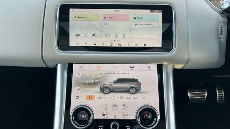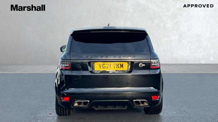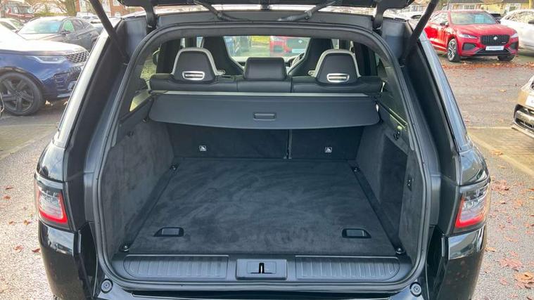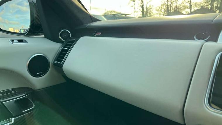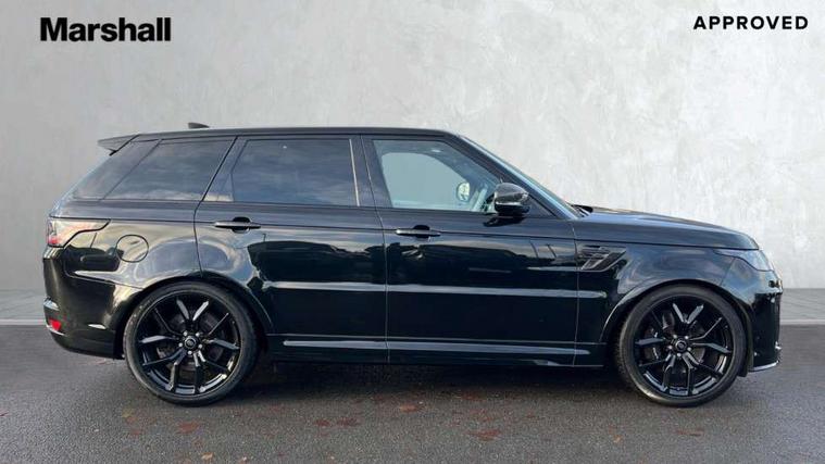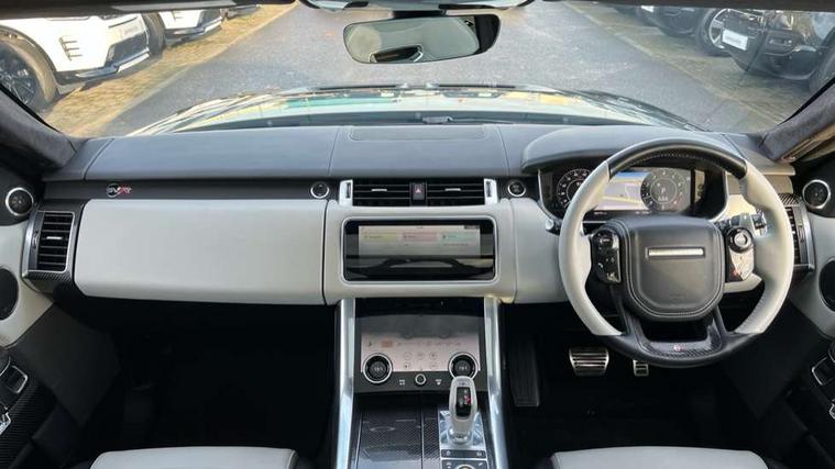 360 Parking aid, All Terrain Info Centre, Android Auto, Apple car play, Bluetooth connectivity, Clear exit monitor, Driver condition monitor, Electric power assisted steering (EPAS), Incontrol apps in vehicle touchscreen, Interactive Driver display instrument cluster, Mist sensor, Navigation pro system with 10" touch screen, app interface and media storage, Powered gesture tailgate/boot lid, Pro services and wifi hotspot, Push button start, Rear traffic monitor, Remote premium - Upgraded Incontrol remote app including remote climate control (engine dependent), remote lock + Unlock and remote beep + flash, Touch pro duo system, Traffic sign recognition with adaptive speed limiter, Trip computer, Adaptive dynamics, All terrain progress control, Carbon fibre engine covers with SVR logo, Configurable dynamics, Electronic active differential with brake torque vectoring, Gradient release control (GRC), SVR sports suspension with dynamic response (active roll control), Terrain Response 2 with dynamic program, Twin speed transfer box, Bluetooth audio streaming, DAB Radio (Digital Audio Broadcasting), Incontrol protect - SOS emergency call with automatic collision detection, optimised assistance call and Incontrol remote app essential, USB/aux input socket, Acoustic front and toughened rear side glass, Acoustic laminated front windows, Active exhaust system with integrated exhaust mounted quad tailpipes, Adaptive brake lights, Auto dimming interior rear view mirror, Automatic headlights, Body coloured side sills and bumpers corners, Centre high mounted stop light, Electric windows with one touch open/close and anti trap, Electrical towing preparation, Follow me home lighting, Front and rear recovery eyes, Headlight power wash, Heated rear window, Heated windscreen includes heated washer jets, Illuminated metal treadplates with brand name script, LED rear lamps, Power fold, auto-dimming, heated door mirrors with memory and approach lights, Rain sensing windscreen wipers, Rear fog lights, Rear side wing doors, Rear wash/wipe, Remote window closing, Side repeater indicators in mirror, SVR badge, SVR exterior styling, Switchable sports exhaust, Trailer stability assist, Unique light weight exhaust system, 16 way driver/passenger electrically adjustable SVR performance seats with memory, 2 way rear head restraints, 3 seat bench in 2nd row, 4 way lumbar support with memory function, 60/40 split folding rear seat, Aluminium gear shift paddles, Auto air recirculation, Bright metal foot pedals, Centre console with armrest, Climate control memory, Configurable Ambient interior lighting, Customer configurable single point entry, Driver's footrest, Extended leather upgrade includes door top rolls and leather instrument panel mid section, Front and rear cupholders, Front and rear premium carpet mats, Front door storage space, Front map lights, Front seat back map pockets, Front stowage pocket, Front/rear passenger grab handles, Heated steering wheel, Integrated front head restraints, Isofix child seat preparation, Loadspace light, Loadspace mounting provisions, Lockable glovebox, Multifunction steering wheel, Pollen filter, Power socket, Reach/rake electric adjustable steering column + entry/exit tilt away, Rear centre armrest, Rear ISOFIX, Roller blind loadspace cover, Single front passenger seat, Sports pedals, SVR leather steering wheel, SVR Performance seats, Three 12V accessory power outlets, Smartphone pack - Range Rover Sport, SVR Carbon fibre exterior pack with exposed carbon fibre bonnet - Range Rover Sport, 3 point seatbelts on all seats, Anti-lock braking system (ABS), Brake pre-fill technology, Cornering brake control (CBC), Curtain airbags, Customer configurable autolock, DSC - Dynamic Stability Control, Dual stage driver/passenger airbags, EBD - Electronic brakeforce distribution, Electric parking brake, Electronic traction control, Emergency braking includes city, urban AEB and pedestrian, Front seatbelt pretensioners, Gradient acceleration control, Height adjustable front seatbelts, High speed emergency braking, Hill descent control, Hill launch assist, Low traction launch, Passenger seat occupant detector with front airbags, Power operated child locks, Roll stability control, Seatbelt warning, TPMS (Tyre pressure monitoring system), Immobiliser, Intrusion sensor, Keyless entry, Locking wheel nuts, Perimetric and volumetric anti theft alarm, Remote locking, Extended carbon fibre trim finisher, 22" 5 split spoke forged gloss black finish alloy wheels - Style 5083,