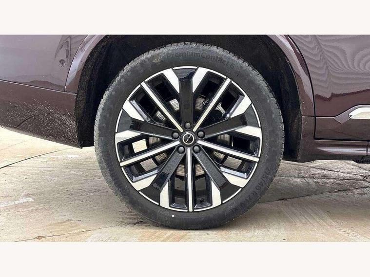 11.2" centre console touch screen, 12.3" Progressive Driver Display, Adjustable steering wheel force, Apple carplay (wired), Bluetooth handsfree system, Driver alert control with lane keeping aid, Driver assistance (pilot assist and adaptive cruise control), Driver awareness - Blind spot information system with steer assist, cross traffic alert with autobrake and rear collision warning and mitigation, Driver monitoring system, Emergency call service, Front and rear park assist, Google Automotive Services - Navigation with Voice recoginition and google assistant, Handsfree power tailgate opening and closing, Intelligent speed assistance, Oncoming Lane Mitigation, PAS, Power operated tailgate, Service interval indicator, Speed sensitive steering, Trip computer, Volvo on call, Wireless/Inductive Mobile Phone Charging, 8 speed automatic transmission with start/stop + manual change functions, Touring chassis, DAB Radio (Digital Audio Broadcasting), High performance sound, 2x USB Type C in front and 2x USB Type C in rear, 10 speakers/220W output, Steering wheel remote infotainment controls, Adaptive brake lights with high level LED brake lights, Auto dimming interior + exterior mirrors, Auto folding and heated power door mirrors, Automatic headlight levelling system, Automatic matrix LED headlights with Adaptive shadow technology and Active high beam, incorporating Day running lights, Body colour bumpers, Bright chrome front grille and deco, Chrome front and rear bumper deco, Chrome lower side mouldings, Chrome window surround, Colour coordinated door mirrors, Front and rear power windows, Headlight cleaning system, Heated front windscreen, Home safe and approach lighting, Integrated roof rails in Chrome, Puddle lights, Rain sensor with automatic windscreen wiper activation, Rear side wing doors, Rear wash/wipe with intermittent wipe setting, Roof antenna, Roof spoiler, Visible VIN plate, 12V socket in luggage compartment, 2nd Row centre armrest with and cupholders, 3 Spoke tailored sport steering wheel with chrome trim, 4 zone electronic climate control with Clean zone air quality system + pollen filter, A-pillar parking ticket holder, Air conditioning for 3rd row of seats, Air purifier PM2.5, Ambient door and instrument panel lighting, B Pillar ventilation, Bright metal luggage scuff plate, Centre console cupholders and storage, Floor mats, Front and rear courtesy lights, Front and rear door pocket illumination, Front footwell and side step illumination, Front headrests, Front reading lights, Front seat cushion extensions, Front tunnel storage illumination, Glovebox compartment light, Heated front seats, Heated rear seats, Heated steering wheel, Height/reach adjustable steering column, Illuminated front and rear aluminium tread plates, Illuminated luggage compartment, Illuminated tailgate, Illuminated vanity mirrors + ticket holder, Inner door release handle illumination, Isofix outer rear child seat preparation in 2nd row, Load cover, Load protection net, Lockable glovebox compartment, Luggage compartment divider with grocery bag holder, Nordico quilted upholstery, Outboard armrest with cupholder and storage for third row passengers, Power driver seat with multi directional lumbar support and memory for seat and exterior mirrors, Power folding 2nd row headrests, Power passenger seat with multi directional lumbar support and memory, Rear footwell and side step illumination, Rear headrests, Rear reading lights, Second row integrated child seat for centre seat, Single front passenger seat, Textile headlining, Three 2nd row individual folding passenger seats with fore/aft adjustment, Two 3rd row individual folding passenger seats, Underfloor luggage compartment storage, 7 three point seatbelts, City safety with steering support includes pedestrian, cyclist detection, front collision warning with full auto brake and rear auto brake, Driver and passenger airbags, Drivers knee airbag, First aid kit, Front seats SIPS airbags, Hill descent control - off drive mode, Hill start assist, IC (Inflatable Curtains) - Full Length, Passenger airbag cut-off switch, Power child locks on rear doors, Power parking brake with auto hold function, Road sign information display, Run off Road Protection, Seatbelt reminder and pretensioners for all seats, SIPS (Side Impact Protection System), Slippery road and hazard light alert, Stability and Traction Control with Spin control, Engine Drag Control and Corner Traction Control, Tyre pressure monitoring system, Vehicle deceleration control with Anti-lock Brake System, Electronic Brake Distribution and Emergency Brake Assist, Warning triangle, WHIPS whiplash protection system - front, 2x Key integrated remote control central locking + deadlocking system and auto open/close windows, Anti-theft alarm including immobiliser/volume sensor + level sensor, Keyless drive includes keyless entry and keyless start, Locking wheel nuts, Tailored instrument panel and door tops, Tempa spare wheel and jack,