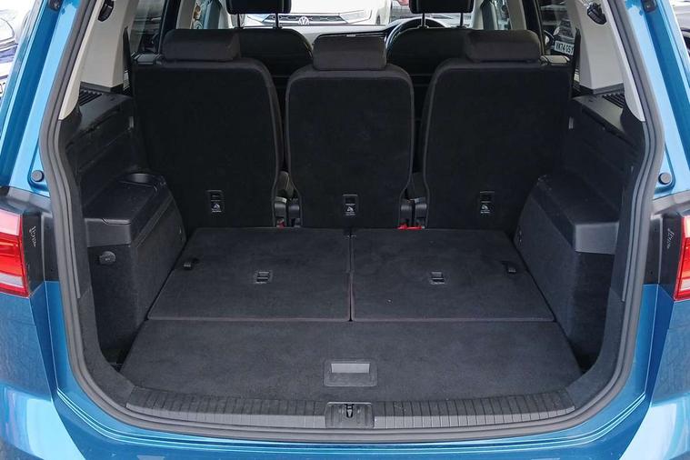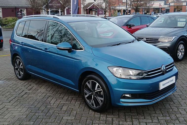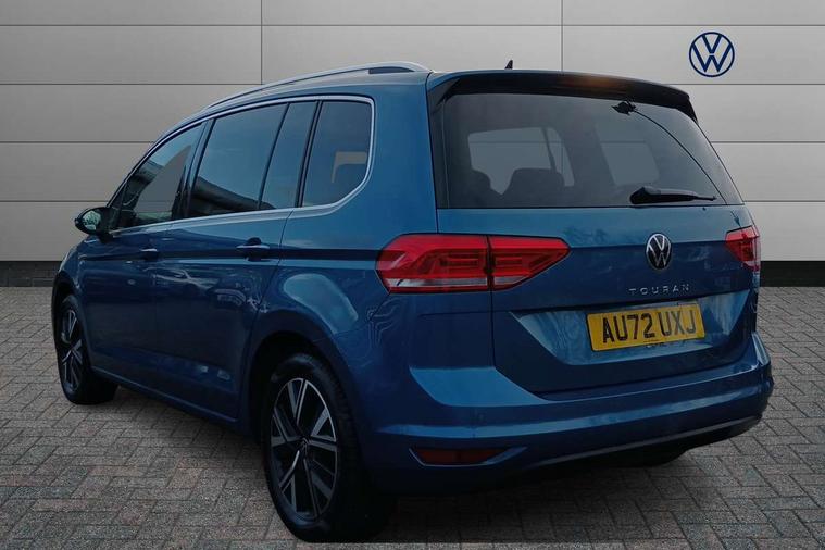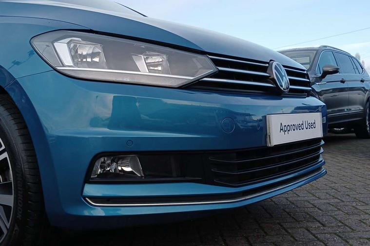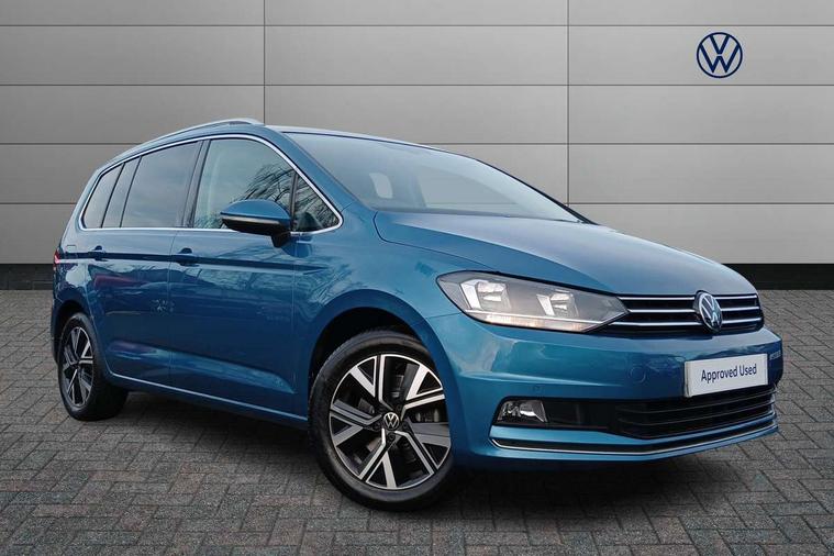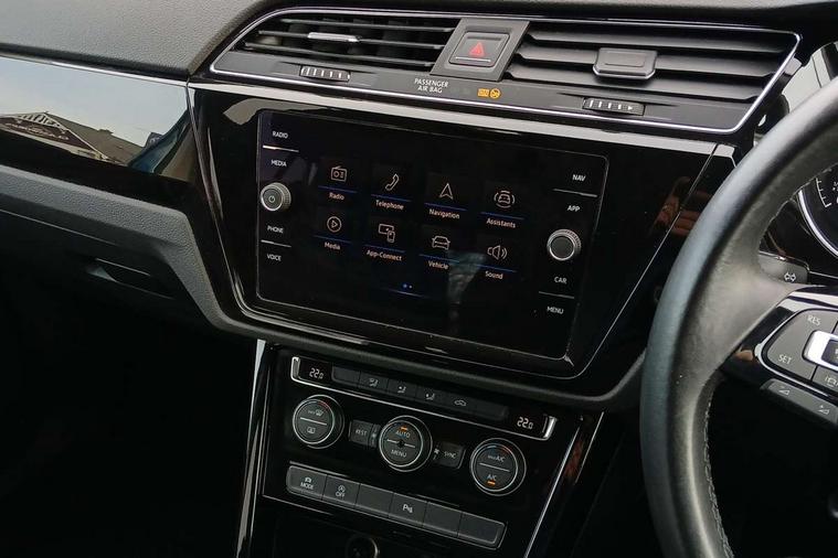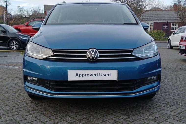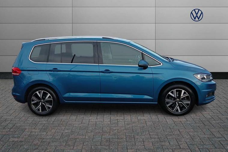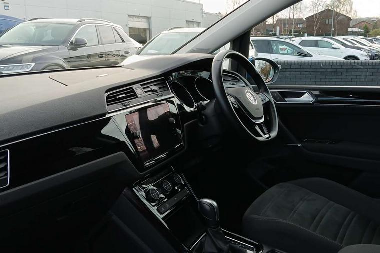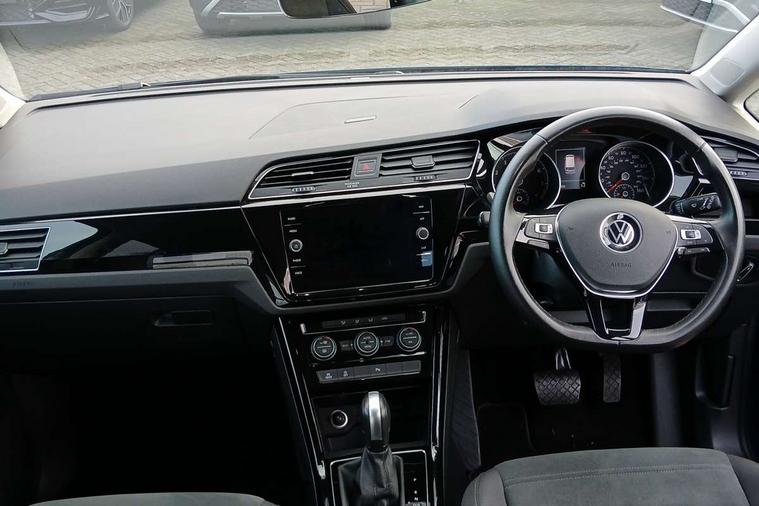 Adaptive cruise control, Audible lights on warning, Bluetooth telephone connectivity, Car information display, Digital cockpit, Discover nav, Euro 2D/3D map view+6.5" colour touchscreen CD + Radio, European map data, Car net guide/inform, Driver alert system, Driver electronic voice amplification function, Driver profile selection, Electronic odometer, Emergency services call system, Extended, crash-active and proactive Pedestrian and cyclist monitoring, External temperature gauge, Lane change system side assist and rear traffic alert, Lane keep assist, Mobile pairing with SMS function, Multifunction colour display, Rev counter with fuel gauge, Speed limiter, Speed sensitive power steering, Stop/start system, Think blue trainer driver tips and journey analysis, Trip and service interval display, Wireless app connect, Petrol Particulate Filter, XDS electronic differential lock, 4x20 watt output, 8 Speakers, Audio Connectivity System, DAB Digital radio, External USB-C data socket with increased charging performance - 2 USB sockets 45W, MP3/WMA compatability, SD card slot, Title and cover art display, USB connection, Aerial integrated into side window, Auto dimming door mirrors, on driver side, surround lighting and front passenger side mirror lowering function, Auto dimming rear view mirror, Automatic coming/leaving home lighting function, Body colour bumpers, Body colour door handles, Body colour door mirrors with integral indicators, Chrome fog light surround, Chrome lower front bumper insert, Chrome trimmed front air intake surrounds, Chrome trimmed radiator grille louvre inserts, Chrome trimmed side windows, Dusk sensor + auto driving lights, Front and rear electric windows, Front fog lights with static cornering function, Fully galvanised body, Gloss black finish B pillar, Green tinted heat insulating glass, High level third brake light, Rain sensor, Rear side wing doors, Rear tinted glass from B-pillar backwards approx 65% tinted, Rear wash/wipe with intermittent wipe setting, Silver roof rails, Tailgate wiper- reverse gear activation, Twin chrome exhaust tailpipes, Volkswagen roundel, Windscreen wipers intermittent wipe, 12V power point for Row 2, 12V socket in luggage compartment, 2 individual fold flat 3rd row seats, 2 three point seatbelts in 3rd row, 2nd row centre armrest, 2nd row centre seat converts into table, 3 single slide/fold/removable 2nd row seats, 3 spoke steering wheel, 3 Zone electronic climate control with automatic air recirculation, 3x3 point seatbelts on 2nd row with height adjust on outer seats, 4 boot load lashing points, 4 way adjustable front head restraints, 5 headrests, Ambient lighting in door trim and foot well, Art velour/Microfibre cloth upholstery, Driver and front passenger under seat drawer, Dust/pollen filters, Foldable front passenger seat backrest, Front + rear carpet mats, Front and rear reading lights, Front centre armrest with storage compartment, Front comfort seats with lumbar support, Front cupholders x 2, Front passenger seat height adjust, Front seat storage pockets, Front seatback folding tables, Height adjustable driver's seat, Height/reach adjust steering wheel, Illuminated glovebox, Illuminated vanity mirrors, Instrument lighting white adjustable panel illumination with red night time illumination, Interior light with delay, Isofix on 2nd row outer seats, Isofix on 3rd row seats, Large storage compartment in roof console, Leatherette on rear of front seats, Low tunnel 2nd row seat, Luggage compartment lighting, Media box in dashboard on passenger side, Multi storage in passenger/luggage areas, Multi-function centre console with storage facilities, Multifunction leather trimmed steering wheel including leather trimmed gear knob with 3.5" screen with multifunction computer, Retractable luggage cover, Split folding rear seat backrests, Storage bins on all doors, Mirror pack - Touran, 3 point height adjustable front seatbelts, Auto hold function, Automatic post collision braking system, Door open warning reflectors, Driver/Front Passenger airbags, Drivers knee airbag, EDL + ASR, Electrically operated child locks on rear doors, Electronic parking brake, Energy recovery system, ESC with ABS, First aid kit, Front and rear (row 2) curtain airbags, Front assist including city emergency braking, Front seat side impact airbags, Front seatbelt pretensioners, Front/rear disc brakes, Hill hold control, Hydraulic Brake Assist (HBA), Loose wheel warning function, Manual passenger airbag deactivation function, Pre crash preventive occupant protection, Proactive passenger protection system with front and side assist, Rear child proof door locks, Seatbelt warning lamp and buzzer, Traction control, Two tone horn, Warning triangle, Alarm with remote central locking and interior protection, Electronic engine immobiliser, Chrome plated instrument surrounds, Piano black decorative inserts, 17" Alexandria alloy wheels with self sealing tyres and anti-theft wheel bolts, Run flat tyres,
