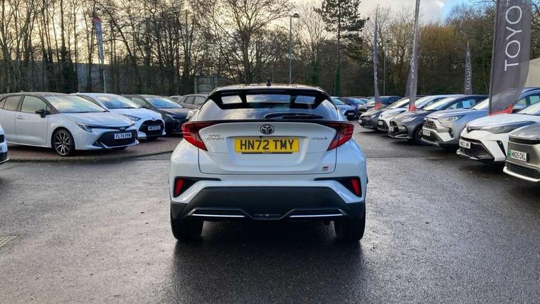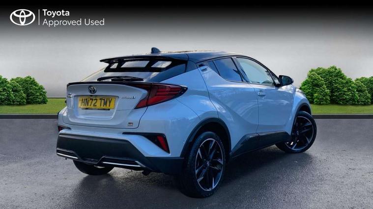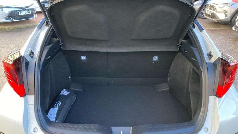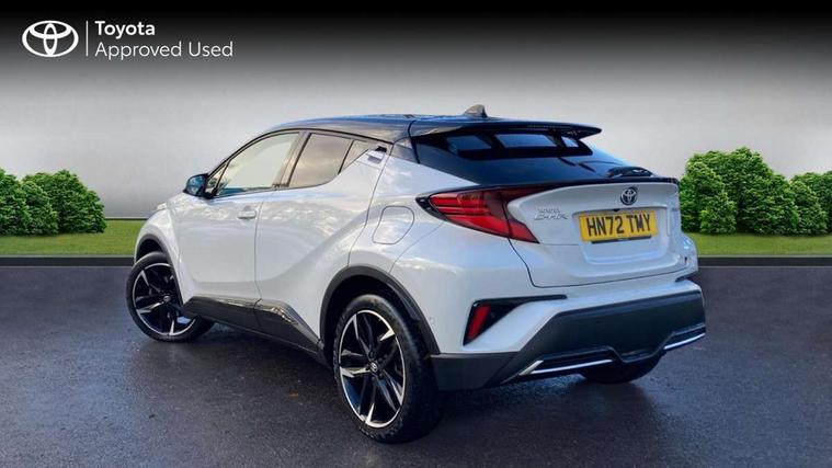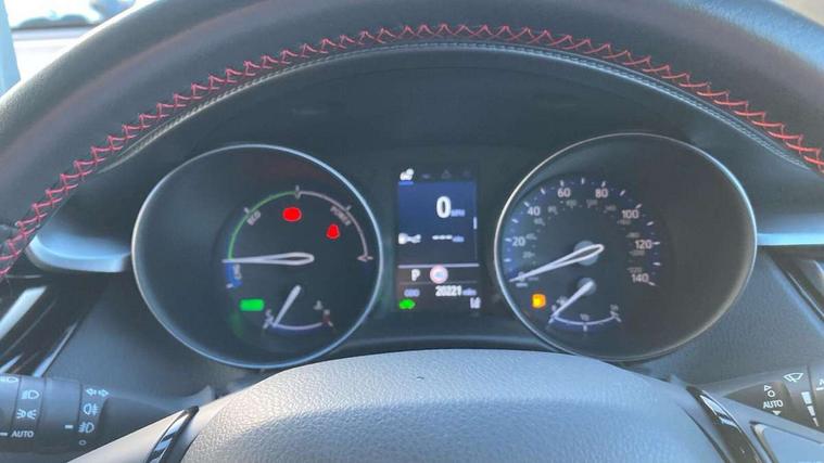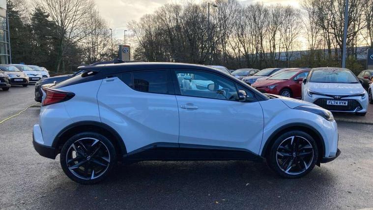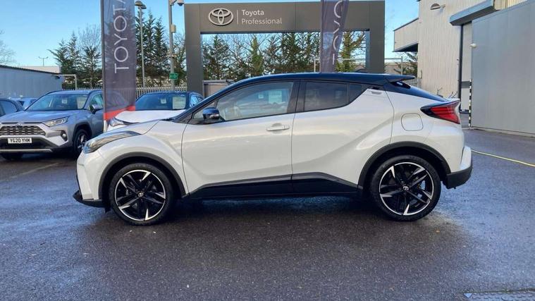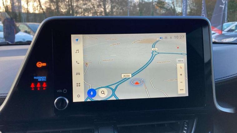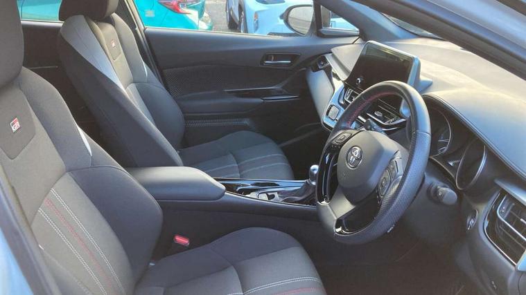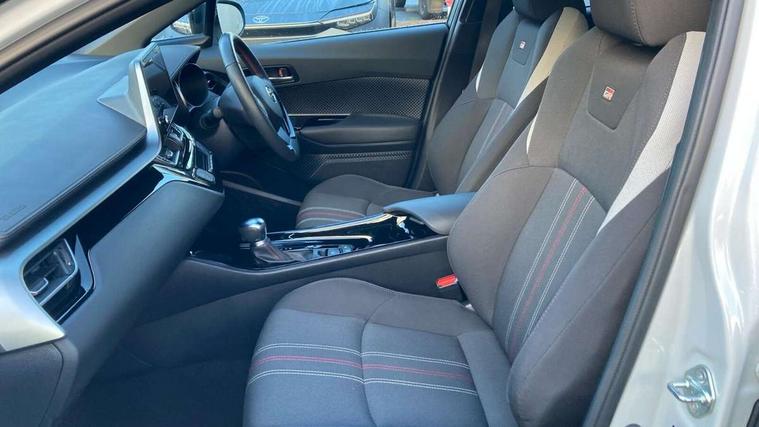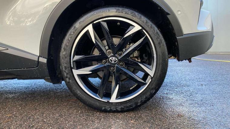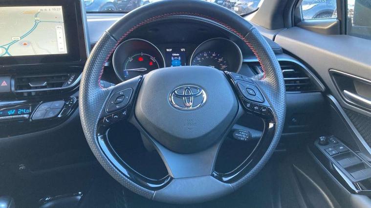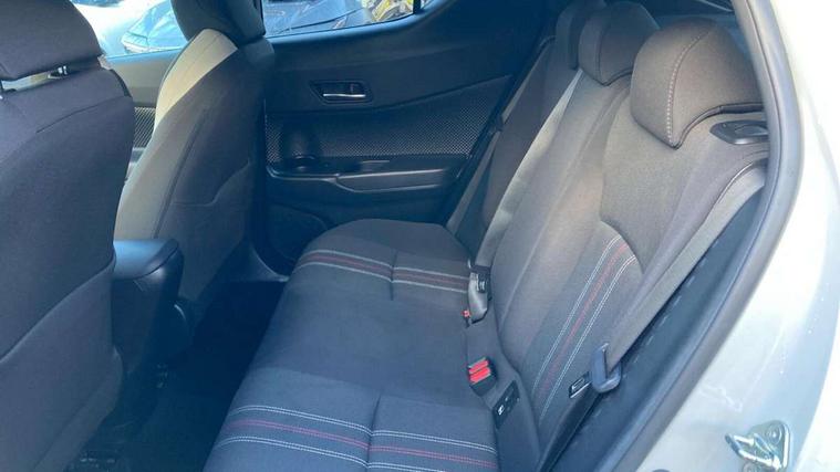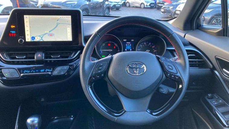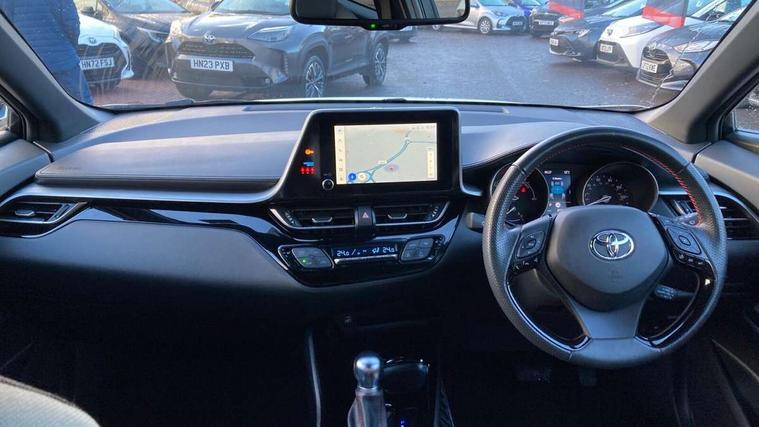 4.2" coloured TFT screen for multi-information display, Adaptive cruise control, Bluetooth connectivity, E-call, Electric power steering, Hybrid system indicator, Lane departure alert with steering control, Lane trace assist, Push button tailgate release, Remote boot door release in cabin, Remote boot door release in key, Reversing camera, Road sign assist - RSA, Simple Intelligent parking assist, Smart voice assist, Touch 2 Go navigation system, Trip computer, Voice recognition, Wireless smartphone integration, Vehicle Stability Control (VSC), 6 speakers, AM/FM radio, DAB Radio (Digital Audio Broadcasting), Toyota touch 2 multimedia system with 8" display, USB connector, Wi-fi connectivity, Adaptive front light system, Adaptive LED Headlights, Anti-jam protection on power windows, Auto high beam, Auto up and down function on all power windows, Automatic headlight levelling, Automatic headlights, Automatic headlights cut-off, Black and body coloured rear bumper, Black upper front grille, Body colour door handles, Body colour door mirrors, Body coloured front bumper, Boot door release with push button, Chrome front lower bumper, Electric heated door mirrors, Follow me home headlights, Front and rear power windows, Front spoiler lip in black, Headlight cut off reminder, Honeycomb lower front grille, LED daytime running lights, LED fog lights, LED front light guide, LED High mounted stop light, LED rear brake lights, LED rear combination lights, Noise reduction layer on front windows and windscreen, Power adjustable door mirrors, Privacy glass, Rain sensor, Rear sequential indicators, Rear side wing doors, Rear spoiler, Rear tailgate, Rear window defogger, Rear window wiper, Shark fin antenna, UV-filter on driver and passenger windows, UV-filter on rear windows, 12v power outlet - front, 3 rear headrests, 3 seat bench in 2nd row, 3 spoke perforated leather steering wheel, 60/40 split folding rear seat, Adjustable rear headrests, Adjustable speed limiter switch on steering wheel, Assist grips front and centre pillar, Audio and telephone switches on steering wheel, Black front door assist grips, Blue ambient lighting on front cup holders, Blue ambient lighting on front doors, Boot light, Chrome interior door handles, Cloth upholstery, Driver and front passenger personal light, Driver and front passenger Whiplash Injury Lessening seats, Driver and passenger seatback pockets, Dual zone automatic air conditioning, Floor mats, Front cupholders, Front head restraints, Front sports seats, Glovebox with internal light, Hard tonneau cover, Heated driver and front passenger seats, Hooks for luggage holding net, Humidifying Nanoe air purifier, Illuminated entry system, Isofix attachments on outer rear seats, Leather gearshift, Light on driver sun visor, Light on passenger sun visor, Manual telescopic steering wheel, Manual tilt steering wheel, Manually height adjustable driver seat, Manually height adjustable front passenger seat, Manually reclining driver seat, Manually reclining front passenger seat, Manually sliding driver seat, Manually sliding front passenger seat, Microphone on front personal light, Mirror on driver sun visor, Mirror on passenger sun visor, Multimedia switches on steering wheel, Pollen filter, Power adjustable lumbar support on driver seat, Shopping bag hooks, Single front passenger seat, Slow opening on lower glovebox, Voice recognition switch on steering wheel, Tech with parking sensor pack - C-HR, 16 Disk front wheel brake, 3x3 point rear seatbelts, ABS+EBD+Brake assist, Electronic parking brake, Front and rear seatbelt reminder, Front passenger airbag on/off switch, Hill start assist control (HAC), Pre collision system with pedestrian detection, Pre-tensioners and force limiters, Rear door child safety locks, SRS Airbags - Driver + Front passenger, front side, front and rear curtain and driver's knee airbags, Toyota safety sense, Tyre pressure monitoring system, Tyre pressure warning system, Acoustic vehicle alert system (AVAS), Glass-breaking alarm sensors, Immobiliser, Intrusion alarm, Intrusion sensor, Motion sensor alarm, Power door locks, Power passenger window lock, Remote central locking, Black lower dashboard, Black upper dashboard, Piano black console, Silver deco line on upper dashboard, 19" Black machined alloy wheels, Tyre repair kit,