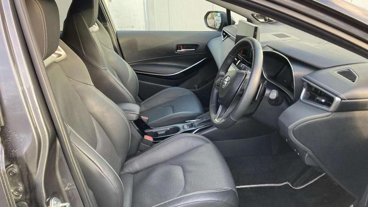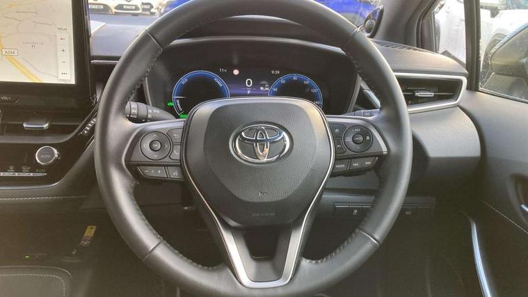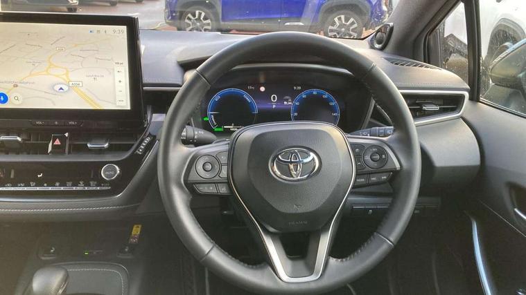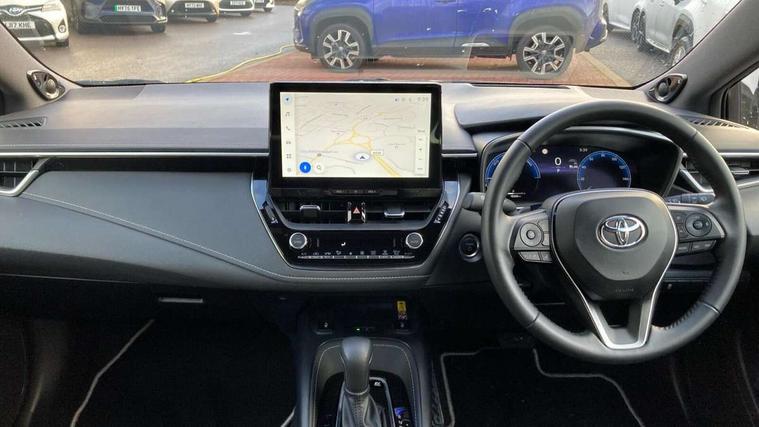 10.5" Multimedia display screen, Blind spot monitor and safe exit assist, Bluetooth telephone connectivity, Connected car functionality upgrade, tracker, remote status and e-care, Drive mode select (Eco, Normal), E-call, Electrically assisted power steering, EV drive indicator, Front and rear parking sensors with auto brake, Full Digital 12.3" TFT Digital Combimeter, Head up Display, Key reminder warning, Lane Departure Alert (LDA) switch on steering wheel, Memory on adjustable speed limiter, MyT connected services, Proactive driving assist (PDA), Rear cross traffic alert, Reversing camera, Smart entry and push button start, Smartphone integration with Apple CarPlay and wired android auto, Tailgate, Toyota remote services, Toyota smart connect navigation, Wireless charger, Gasoline particulate filter, Vehicle Stability Control (VSC), AM/FM radio, DAB Digital radio, Front USB-C in centre console, Front USB-C in dashboard, JBL Premium sound system with 8 speakers, Rear USB-C device charger, Smart voice assist/ Voice recognition, USB and Aux in connectors + 12V front outlet, Adaptive high beam system (AHS), Anti-jam protection on power windows, Auto headlight levelling system, Auto up and down function on all power windows, Automatic folding mirrors, Automatic headlights with high beam assist, Black centre and side air vents, Black metallic meshed front grille, Black toyota logo in front, Body coloured bumpers, Body coloured door mirrors, Body coloured front spoiler, Body coloured outside door handles, COROLLA alloy door scuff plates, Electrochromatic mirror, Follow me home headlights, LED daytime running lights, LED front fog lights, LED High mounted stop light, LED multi beam headlights, LED rear combi lights with LED lightguide, Noise reduction layer on windscreen, Piano black diffuser, Power adjustable heated door mirrors, Power front windows, Power rear windows, Privacy glass with UV filter, Rain sensing wipers, Rear bumper decoration with chrome plated inserts, Rear side wing doors, Rear under guard with chrome ornament, Rear window defogger, Rear window wiper, Reverse tilting door mirrors, Roof spoiler, Satin chrome insert on front air vents, Satin chrome insert on front door assist grips, Satin chrome inserts on rear passenger air vents, Shark fin antenna, Tailgate release with push button, Time adjustment on intermittent wiper, Turning signal integrated indicators in door mirrors, Unique grille pattern, Unique lower skirt, Unique side rocker with black insert, UV-filter on driver and passenger windows, 2 Shopping bag hooks in luggage compartment, 3 rear headrests, 3 seat bench in 2nd row, 3 spoke leather steering wheel with satin insert + gear knob, 4 tie down hooks in luggage compartment, 60/40 split folding rear seat, Adaptive cruise control (ACC) switch on steering wheel, Adjustable speed limiter switch on steering wheel, Audio, multimedia and telephone switches on steering wheel, Black armrest on centre console box, Black gear shift console, Boot light, Boot underfloor storage, Centre room light, Driver and front passenger personal light, Driver and passenger assist grip, Driver and passenger seatback pockets, Driver and passenger sun visor with mirror and light, Dual zone automatic air conditioning with ECO mode switch, Front and rear cup and bottle holders, Front door pockets, Front head restraints, Front passenger seat, Front sliding synthetic leather armrest, Heated seats, Illuminated entry system in room lamp, ISOFIX seat fixing (2 fixings on rear outer seats), Leather gear shift with satin chrome on gear shift console, Manual height adjustable for driver and front passenger seat, Manually tilt with sliding driver and front passenger seat, Nanoe-X air purifier, Paddle shifts, Parcel shelf, Perforated leather upholstery, Pollen filter, Power window switches with satin chrome inserts, Rear air conditioning, Rear armrest with 2 cupholders, Rear passenger coat hooks (2), Remote air conditioning, Satin chrome inside door handles, Satin chrome surround on heater control panel, Satin chrome surround on speedometer, Sliding armrest on centre console box, Slow opening glovebox with lights, Sports seats, Textile floor mats, Tilt/telescopic steering column, Voice recognition switch on steering wheel, Whiplash Injury Lessening (WIL) feature (active headrest) for seats, White ambient lighting on open tray and front cup holder, Toyota safety sense 3 pack - Corolla, 3x3 point rear seatbelts, Adjustable driver and front passenger seat belt extender to top anchor point, Anti lock braking system + Electronic brake force distribution, Brake assist function, Child locks on rear doors, Downhill Assist Control (DAC), Electronic parking brake, Emergency brake light signal (EBS), Front passenger airbag on/off switch, Front seatbelt reminder, HAC - Hill start assist control, Rear seat belt reminder, Seatbelt pretensioners and force limiters, Supplemental restraint system (SRS) 7 airbags - dual driver, dual side curtain, side impact and driver knee airbags, Traction control, Tyre pressure warning system, Acoustic vehicle alert system (AVAS), Alarm with motion sensor and immobilizer, Power passenger window lock, Remote central locking + deadlocks, Satin chrome dash trim, Soft touch texture on upper dashboard, Stitching on lower dashboard, Stitching on upper dashboard, 18" Dark grey machined face 5 double spoke alloy wheels, Tyre repair kit, Unique wheel finish with red wheel cap,