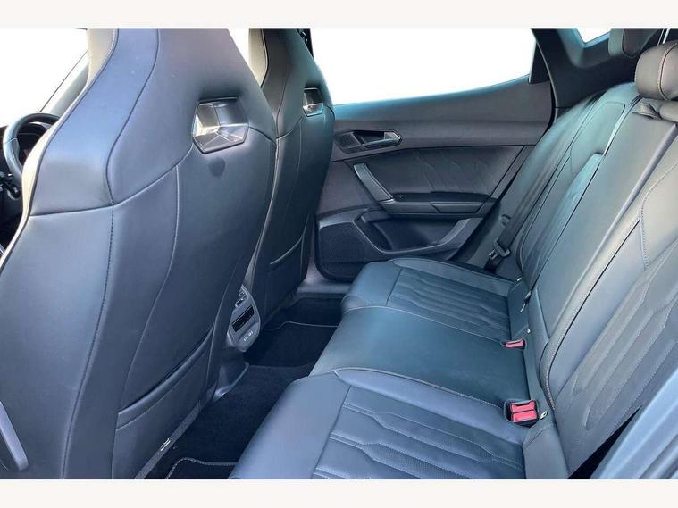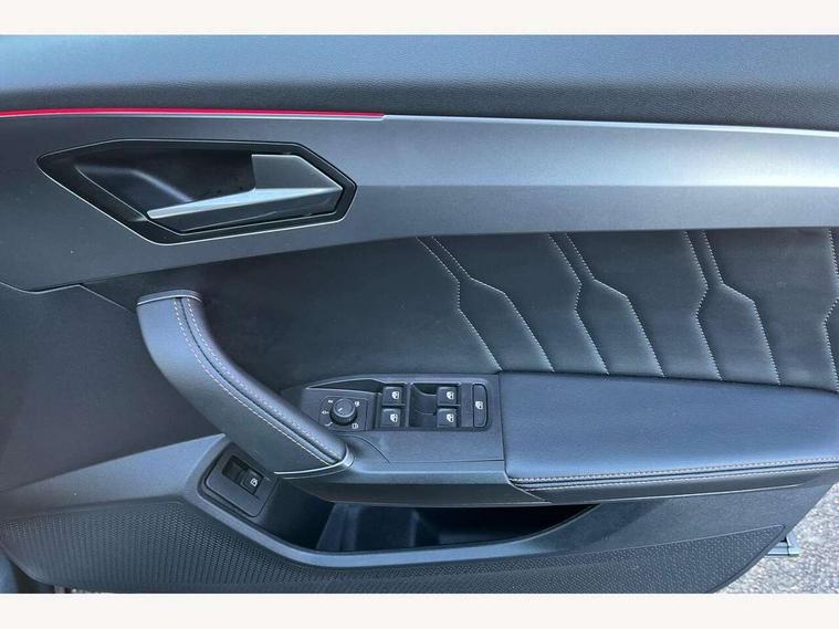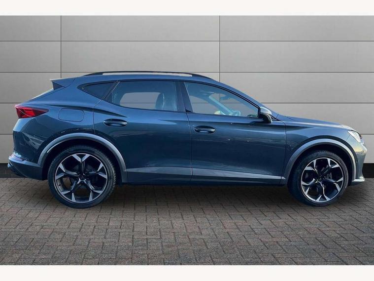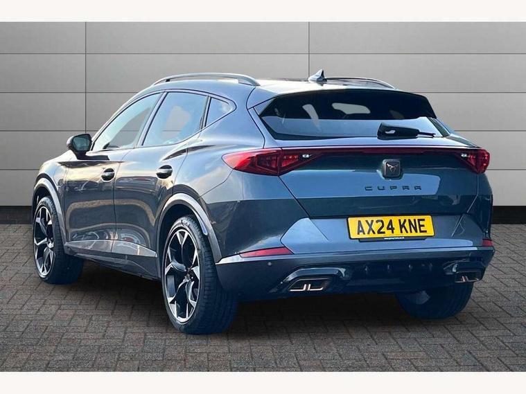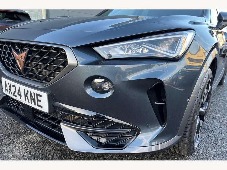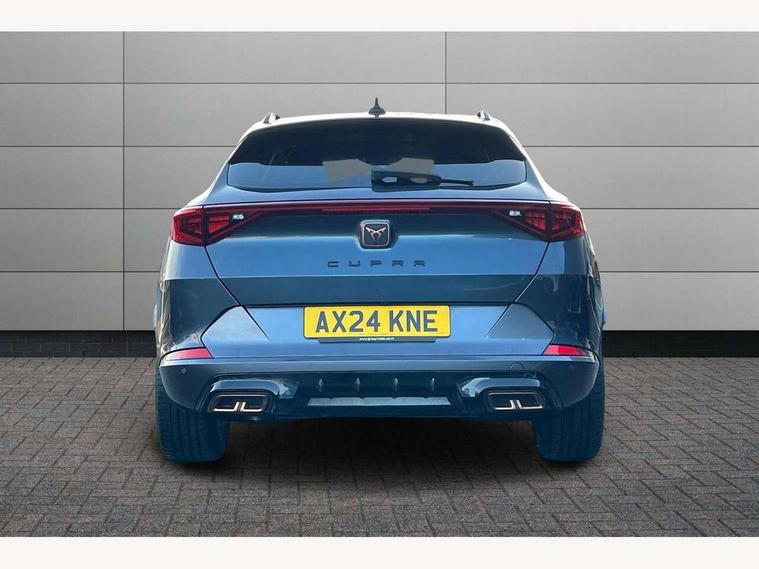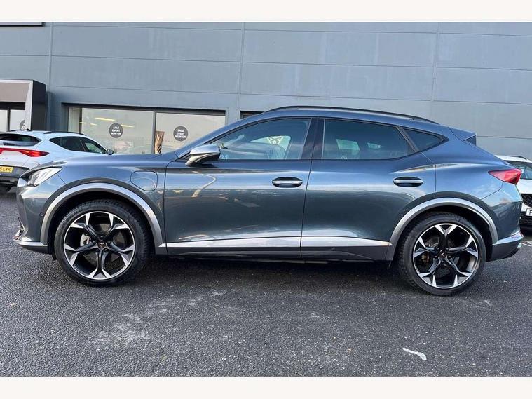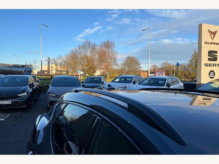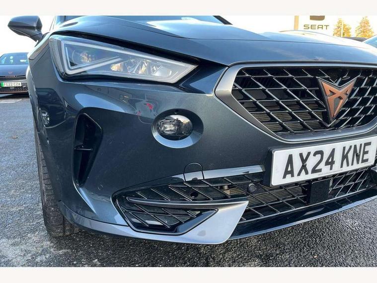 Digital cockpit and configurable dashboard, Driver alert system, Driving profile selection, Forward collision warning with automatic braking, Lane assist, Navigation system with 12'' Touchscreen Display, Park assist (inc front/rear parking sensors), PAS, Predictive adaptive cruise control with speed limiter, Rear view camera, RPM, trip computer, outside temp gauge, instrument light brightness, low fuel warning light, lights on reminder, gearshift indicator, Service interval indicator, Start/stop system with regenerative braking, Voice control system, Wired Android Auto, Wireless apple carplay, Wireless phone charger, 10 amp mode 2 charging cable, 16 amp mode 3 charging cable, 3.6 kw On-board charger, Electronic locking differential and dynamic traction support, Standard suspension, 2 front and 2 rear USB type C sockets, DAB radio, Auto dimming rear view mirror, Body colour door handles, Body coloured bumpers, Dark grey wing mirror, Daytime running light with automatic headlight control and coming home feature, Dynamic headlight range control, Electric front/rear windows, Electrically adjustable heated and folding door mirrors with memory function, Front fog lamps with cornering function, Gloss black roof rails and window surrounds, LED Headlights, LED Taillights with dynamic indicator, Rain sensing wipers, Rear diffuser with black simulated exhaust pipes, Rear side wing doors, Rear wash/wipe, Third brake light, Tinted rear windows, Welcome lights, 12V socket, 2 front and 2 rear reading lights, 3 seat bench in 2nd row, 60/40 split rear bench seat with armrest and mechanical seat release, Black headlining, Dust/pollen filter, Front and rear head restraints, Front centre armrest, Height/reach adjust steering wheel, Illuminated interior front door sills, Illuminated sunvisor with mirror, Isofix, Leather multi function heated steering wheel with gear shift paddles, Single front passenger seat, Three zone climate control with control panel in rear, Wraparound lighting, Genuine Nappa leather Pack - Cupra, 3 point seatbelts on all rear seats, ABS, Brake control system - ESC and brake booster, Child proof door locks, Driver and front passenger airbags with front passenger airbag de-activation, Electronic parking brake, Front and rear disc brakes, Front side curtain airbags, Hill hold control, Public e-call, Seat belt reminder for front and rear seats, Tyre pressure monitoring system, Anti theft alarm system, Keyless entry and start system (KESSY), Locking wheel bolts, Copper and aluminium interior detailing, 19" 'Exclusive' machined sport matte black and silver alloy wheels, Tyre repair kit,