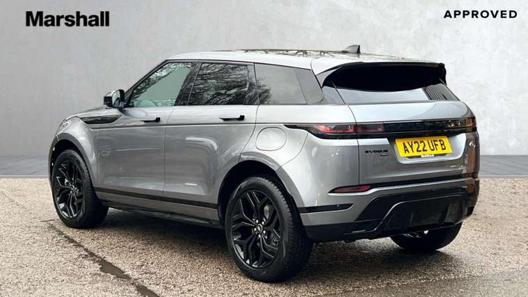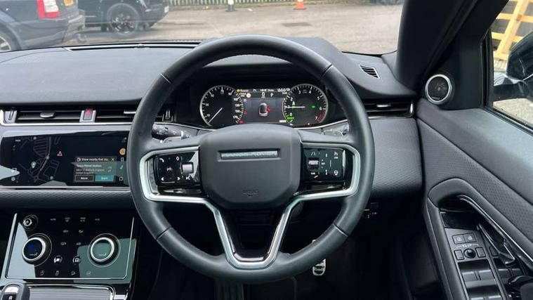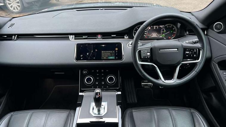 Adaptive cruise control, Android Auto, Apple car play, Bluetooth connectivity, Brake pad wear indicator warning light, Driver condition monitor, eCall emergency system, Electronic power assisted steering (EPAS), Front and rear parking aid, InControl remote, Land Rover InControl apps, Lane keep assist, Pivi pro connected includes upgraded infotainment, connected navigation pro, Nuance speech licence, Push button starter, Traffic sign recognition with adaptive speed limiter, Voice control system, 7 kW onboard charger, All terrain progress control, Electric rear axle drive, Home charging cable, Large fuel tank, Passive suspension, Public charging cable, Terrain Response 2 Auto, Digital Audio Broadcast radio-DAB, Steering wheel mounted controls, Auto headlights, Daytime running lights, Electric windows with one touch open/close and anti trap, Evoque and R-Dynamic badge, Flush deployable exterior door handles, Heated rear window with timer, Heated washer jets, Heated windscreen, P300e badge, Power fold, auto-dimming, heated door mirrors with approach lights and auto dimming driver side, Privacy glass, Rain sensing windscreen wipers, Rear fog lights, Rear side wing doors, Rear wiper, Tailgate spoiler, Third brake light, 40:20:40 split folding rear seats with centre headrest and armrest, Ambient interior lighting, Bright metal pedals, Heated steering wheel, Isofix system on outer rear seats, Overhead lighting console, Overhead stowage for sunglasses, Passive front head restraints, Rear air vents, Rear centre headrest, Rear head restraints, Satin chrome gearshift paddles, Single passenger seat, Sunvisors with illuminated vanity mirrors, Twin sliding front centre armrest, 3 rear 3 point seatbelts, Anti-lock braking system (ABS), Customer configurable autolock, DSC - Dynamic Stability Control, Electronic brake force distribution, Electronic parking brake, Electronic traction control, Emergency braking, Front and rear seatbelt reminder, Hill descent control, Hill launch assist, Low traction launch, Power operated child locks, Roll stability control, Six airbags - Driver and passenger airbags/driver knee airbag/front side airbag and curtain airbags, Torque vectoring brake, Tyre pressure monitoring system, Alarm, Immobiliser, Intrusion sensor, Locking wheel nuts,