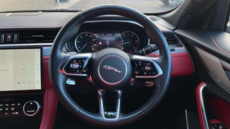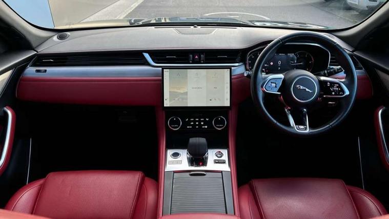 11.4" touchscreen, Android Auto, Apple car play, Bluetooth connectivity, Driver alert system, Driver condition monitor, eCall emergency call system, Eco driving style assistant, Electric power assisted steering, InControl remote, Jaguar Toggle shift selector, Lane departure warning system, Lane keep assist, Outside temperature gauge, Personalisation profile management, Pivi pro connected navigation system with app interface and media storage, Pro services and wifi hotspot, Push button starter, Service interval indicator, Speed proportional steering, Start up sequence with movement in dials and lighting, Traffic sign recognition with adaptive speed limiter, Trip computer, Voice control system, 8 speed automatic transmission, All terrain progress control, All Wheel Drive (AWD), Open differential with torque vectoring by braking, AM/FM radio, Bluetooth streaming, DAB Radio (Digital Audio Broadcasting), Dynamic volume control, InControl apps, InControl protect, iPod integration, 3 flash lane change indicators, Approach Illumination, Auto dimming rear view mirror, Automatic headlights, Body colour door mirrors, Electric windows with one touch open/close and anti trap, F-Pace and R Dynamic badge, Green tinted glass, Heated front windscreen + heated washer jets, Heated rear window with timer, Jaguar script and leaper, LED High level third brake light, LED tail lights, Non acoustic front windscreen, R Dynamic badge on side door, Rain sensor windscreen wipers, Rear fog lights, Rear metal tread plates, Rear side wing doors, Rear wiper, Trailer stability assist, Variable front intermittent wipers, 12V power point front, 3 rear headrests, 3 seat bench in 2nd row, Air distribution speed, Centre armrest console, Centre console with side storage, Deletion loadspace storage rails, Door sill tread plates, Fold flat front seats, Front centre armrest with storage compartment, Front door storage space, Glovebox finisher with jaguar script, Heated steering wheel, Hooks in loadspace, Illuminated glovebox, Interior front door handles with separate locking switches, ISOFIX on outer rear seats, Jaguar sense, Luggage tie downs in loadspace, Mist sensing, Multifunction steering wheel, Overhead lighting console, Overhead stowage for sunglasses, Passive front head restraints, Premium carpet mats, R-Dynamic branded leather steering wheel, Rear air vents, Rear armrest with twin cupholders, Rear centre headrest, Rear door storage space, Reversible boot floor, Satin chrome gearshift paddles, Shopping bag hook, Single front passenger seat, Sunvisors with illuminated vanity mirrors, Twin front cupholders with cover, Online Pack with data plan - F-Pace, 355mm front brakes and 325mm rear brakes, 3x3 point rear seatbelts, ABS, All surface progress control (ASPC), Brake pad warning light, DSC - Dynamic Stability Control, Electric parking brake (EPB), Emergency brake assist, Front airbags with passenger seat occupant detector, Front and rear seatbelt reminder, Front side airbags, Full length side window curtain airbag, Hill launch assist, Power operated child locks, Torque vectoring brake, Traction control, Tyre pressure monitoring system, Immobiliser, Keyless Start, Locking wheel nuts, Perimeter alarm, Remote central locking, Valet mode,