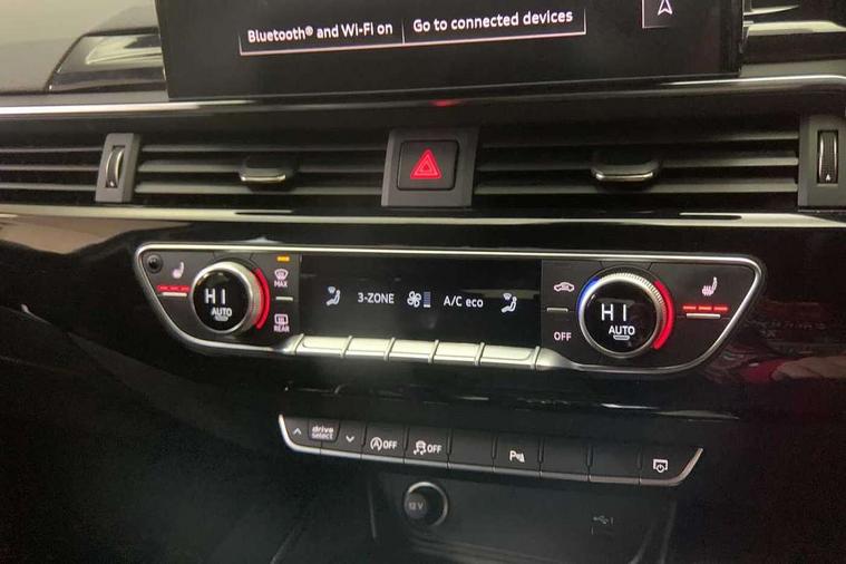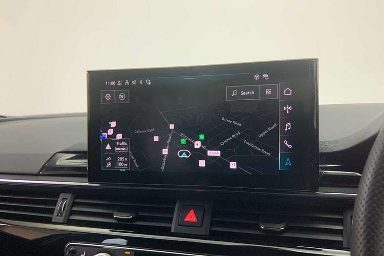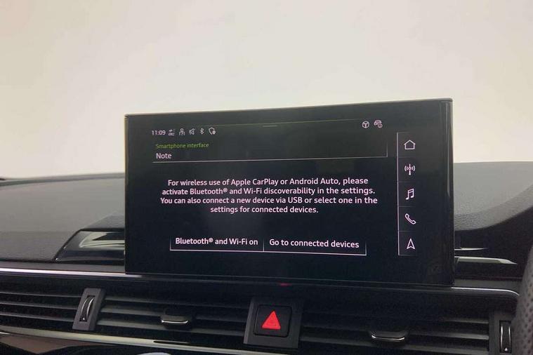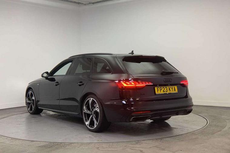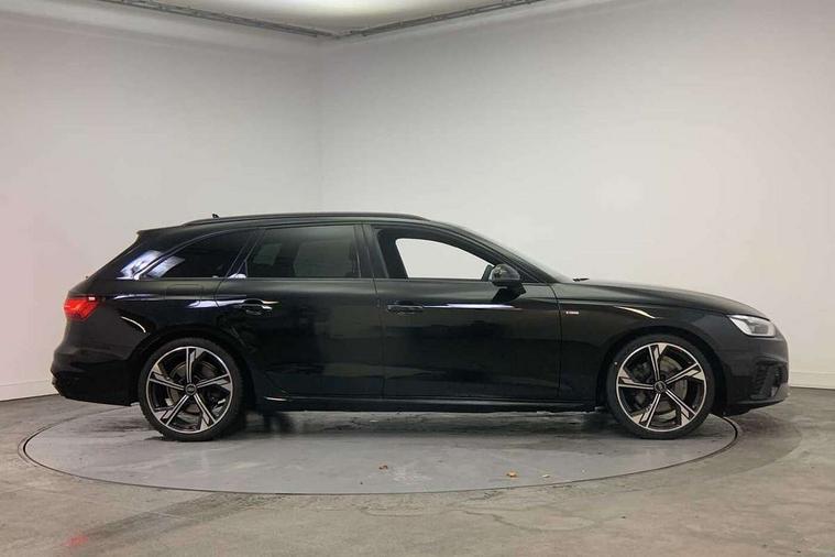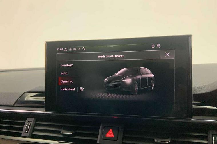 Audi connect safety and service (e-call), Audi connect with Amazon Alexa Integration, Audi drive select, Audi smartphone interface, Audi virtual cockpit, Automatic start-stop system with coasting functionality and efficiency programme, Bluetooth interface, Electromechanical power steering, Email, calendar and text messages displayed via MMI, Front and rear parking sensors, MMI Navigation plus with MMI touch includes 10.1" high resolution colour MMI display, 3D map, Power operated tailgate, Rear view camera, Voice control system, 54 litre fuel tank, Sports suspension lowered by 23mm, 2 USB charging ports, 8 passive loudspeakers, DAB digital radio reception, Audi beam uses LEDs to project the audi logo onto the ground as you exit your A4, Auto dimming rear view mirror, Black Audi rings and black badging (model name in black badging, no engine badging), Body colour door handles, Body colour front spoiler lip, Body colour side sill trim, Electrically folding auto dimming/adjustable/heated door mirrors with LED side indicators and kerb view function for passenger side, Exhaust tailpipes in high dark chrome, Grained matt black side air inlets with matt aluminium silver inlay, High beam assistant, High gloss black B pillar trims and triangular rear door trim, LED headlights with LED rear lights + dynamic rear indicators + headlight adjustment and high beam, turning light + LED daytime running lights, LED third brake light, Privacy glass, Rain and light sensors, Rear diffuser in matt black with trim strip in matt aluminium silver, Rear side wing doors, Rear wiper, RS4 rear spoiler in body colour, S Line roof edge spoiler, Sport front and rear bumpers with side skirts, Variable intermittent front wash/wipe, Windscreen with acoustic glazing, 4 way electric lumbar support for driver and front passenger, 40/20/40 split folding 3 rear seat bench in 3 parts with rear centre armrest, Black cloth headlining, Black perforated leather gearknob, Contrast stitching on seats, steering wheel and gear lever gaiter, Deluxe 3 zone electronic climate control, Door sill trims with aluminium inlay, Electric load area cover, Front and rear head restraints, Front centre armrest, Heated front seats, Illuminated door sill trims with S logo, ISOFIX child seat mounting and top tether, Manual seat adjustment, Single front passenger seat, Stainless steel pedals and foot rest, Tool kit, Black styling pack - A4 Avant, LED Interior light pack - A4/S4, 3 rear seatbelts, 6 airbags - Driver, front passenger, curtain and side windows, Electronic Stabilisation Control (ESC) including ABS, ASR and EDL, Hill hold assist, Multi collision brake assist, Pop-up bonnet for pedestrian protection, Pre sense city, Rear door child safety locks, Seatbelt monitoring, Warning triangle and first aid kit, Anti theft alarm, Anti theft wheel bolts, Central locking, Keyless Go, Piano black finish inlay, Tyre repair kit,