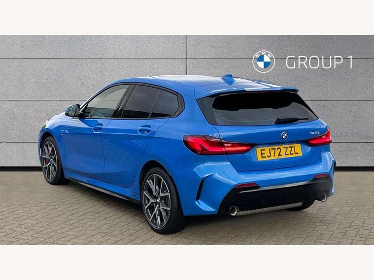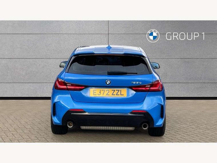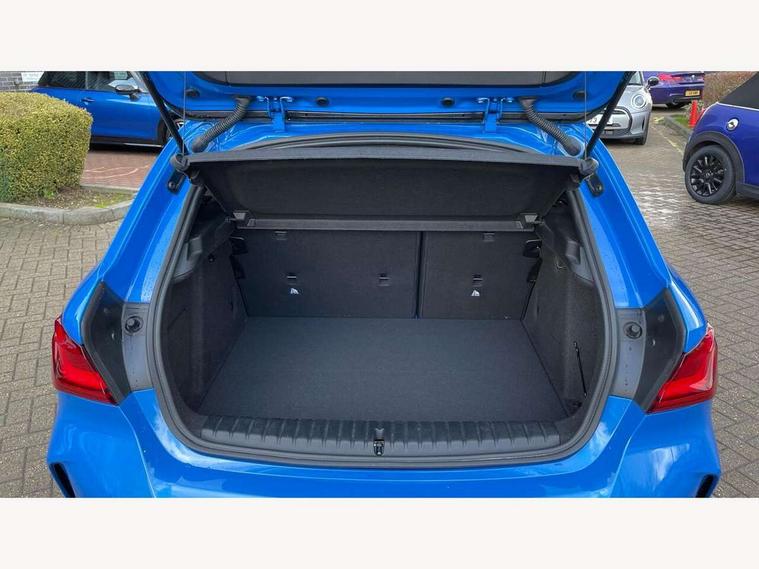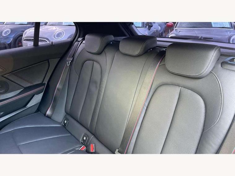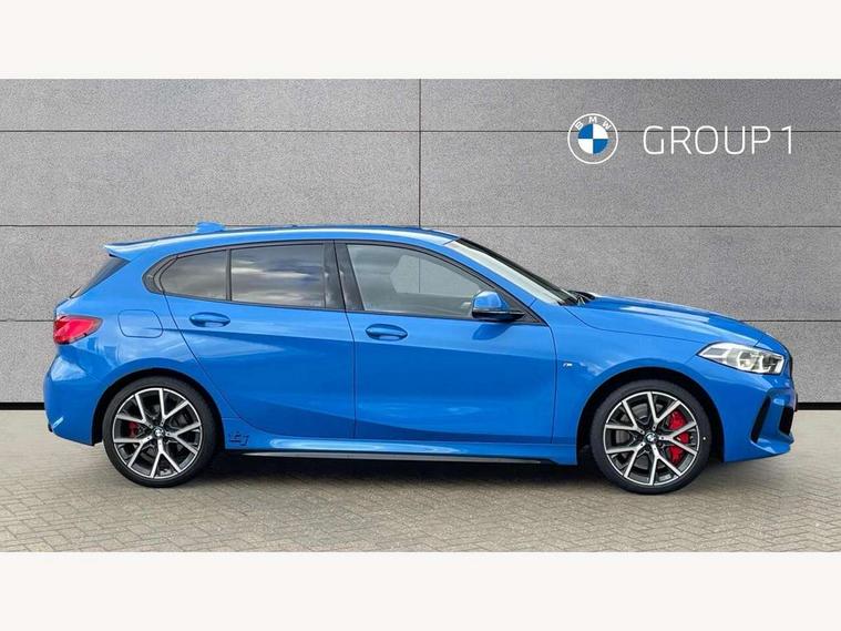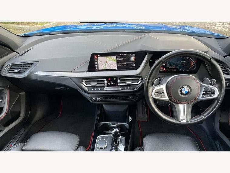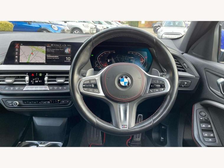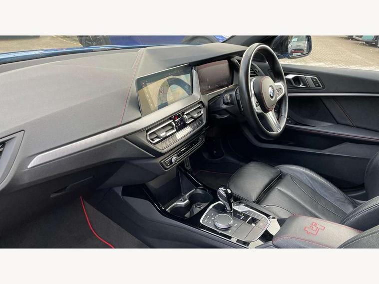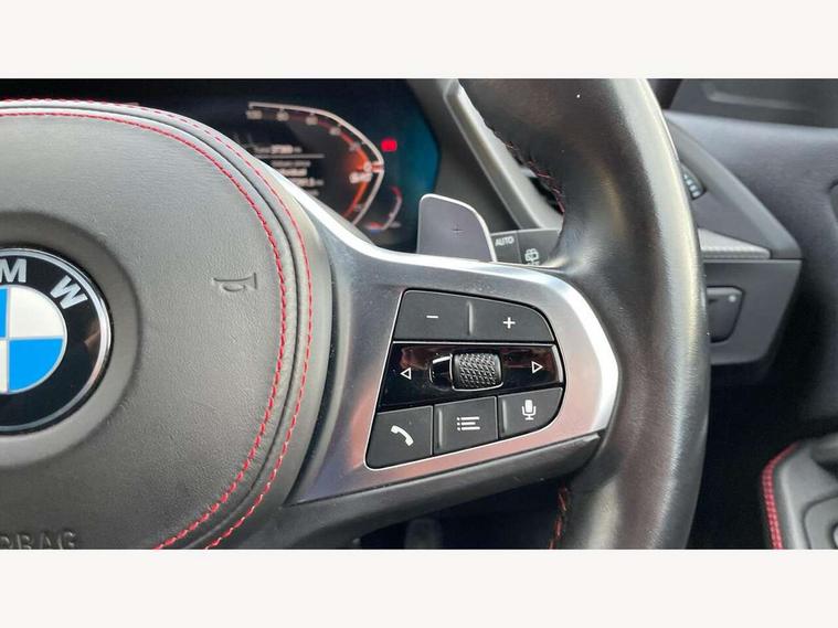 Active guard plus, Attentiveness assist, BMW ConnectedDrive online services, BMW Teleservices, Check Control warning system for monitoring of lights and door/luggage compartment open warning, Cruise control with brake assist, Eco pro mode, Electric power steering with Servotronic steering optimised at all speed ranges, Front axle single joint with specific axle kinematics to minimise drive influences on steering + provide increased rigidity agile driving behaviour, Integrated owners handbook, Lane departure warning system, Oil sensor for level and grade, On board computer, Optimum shift indicator, Personal Profile, Pull away assistant, Rigidly mounted rear subframe - Multi link construction with separate spring / damper configuration and excellent driving characteristics, Speed limit Info including no-overtaking indicator, Speed limiter, Aluminium lightweight construction, Anti roll bar front and rear, Balancer shaft, Double VANOS twin scroll turbocharging system, Drive Performance Control, Eight speed sport automatic transmission with gearshift paddle switches, Electronic differential lock, High precision injection, Larger fuel tank capacity (50 litres), M sport suspension with M128i xDrive specific settings, Petrol Particulate Filter, Twin tube gas filled shock absorbers with degressive characteristic curve, VALVETRONIC engine management, DAB Digital radio, Auto dimming rear view mirror, Automatic headlight beam throw control, Automatic windscreen wipers and automatic headlight, Black chrome tailpipe finishers, BMW individual high gloss shadow line with extended content, Body colour door handles, Body colour mirror caps, Body colour roof trims, Chrome 'M' logo side designation, Chrome kidney grille frame with Satin Aluminium struts, Direction indicator side lights in exterior mirrors, Fading support, Folding side mirrors with auto dimming/folding wing mirrors with auto dimming, Follow me home headlights, Front and rear bumper system with replaceable deformation elements, Front and rear electric windows with open and close fingertip control, anti trap facility and comfort closing, Front door sill finishers in black plastic with M designation in metallic look, Green tinted heat protection glazing, Heated, electrically adjustable exterior mirror aspheric on driver side, convex on passenger side, High gloss shadowline window frame, Recess cover mirror frames and B/C pillar embelisher trim, High level third brake light, Integrated front windscreen with washer jets, Kidney frame and struts in high gloss black extended, LED daytime running lights, LED eyebrow turn indicators, LED front fog lights, LED Headlights, Lightweight engineering, Matt black air guide grilles, Matt black wheel arch trim, Model designation on electric bootlid, Nearside reverse light in rear light cluster, Preparation for high beam assistant, Rear fog lights, Rear side wing doors, Rear window wiper, Shark fin antenna, Trailer stabilisation logic, Visible VIN plate, Welcome lighting, 12V power socket in front centre console with blanking plug, 3 rear seat head restraints, 3 seat bench in 2nd row, Anthracite headlining, Black boot net with lashing eyes, Cargo function on 2nd seat row, Centre armrest in black/red highlight including embroidered 'ti' designation in red, Child seat ISOFIX attachment for two outer rear seats and front passenger seat with anchorage points, Conditioned based service, Driver and front passenger seat heating, Floor mats with red binding, Folding rear clothes hook, Four grab handles integrated in roof lining, Front and rear door pockets with bottle holders, Front and rear side armrest integrated into door trim, Front armrest, Front sports seats, Glove compartment, Height adjustable front head restraints, Instrument panel top section , door armrests and door panels in black/red highlight, Luggage compartment for bag hooks on left and right, foldable luggage compartment liner and four lashing eyelets, Manual adjust steering wheel, Multi-function controls for steering wheel, Single front passenger seat, Storage compartment in centre console, Sun visors with vanity mirrors and insert tab, Three spoke M sport design multi function leather steering wheel in unique red stitching, Two front centre console cupholders, Two zone automatic air conditioning, Additional interior lighting pack - 1 Series, BMW live cockpit professional pack- 1 Series, Connected pack professional - 1 Series, Interior lights pack - 1 Series, M Sport exterior styling aerodynamics pack - 1 Series, 2 tone horn, 3 point seatbelts on all seats, front pyrotechnic belt tensioners, stopper and belt force limiters, rear coded belt buckles, Airbags - Front driver/passenger, front and rear curtain head protection, front side, manual deactivation of front passenger airbag, Anti lock braking system (ABS) with brake assist, BMW emergency call, Brake drying, Braking readiness, Child proof locking system in rear door, City braking function, Comfort modes, Cornering brake control, Crash sensor activating central locking release, hazard warning lights, fuel cut off, interior lighting + activation of safety battery terminal clamp, Driver and front passenger seat belt security check, Dynamic stability control + (DSC+), Dynamic Traction Control - DTC, Electrically operated hand brake including automatic hold function, Front and rear disc brakes, M Sport brakes with red calipers, M Sport seatbelts, Seatbelt warning, Side impact protection, Tyre pressure monitoring system, Warning triangle and first aid kit, Central locking switch for all doors, fuel filler cap and luggage compartment, Deadlocking function system to all doors, Drive away locking system on all doors and luggage compartment with de-activated in iDrive settings, Locking wheel bolts, Remote control with integrated key with High-gloss Black inlay and M designation and 1 button for open/ close lock, window, open luggage compartment, Start/stop button illuminated in centre console with keyless e