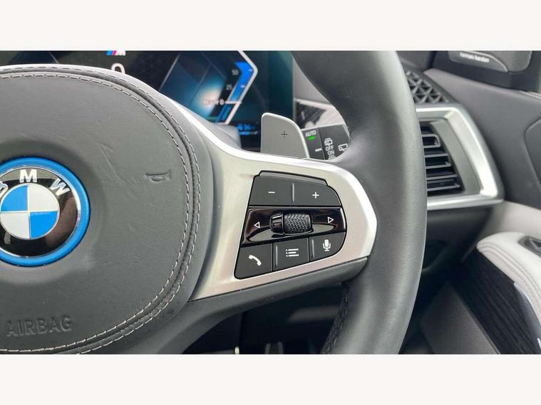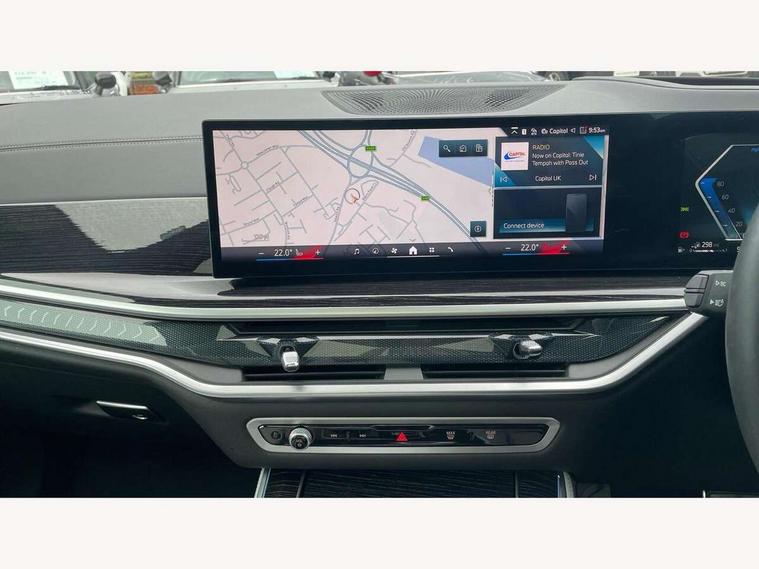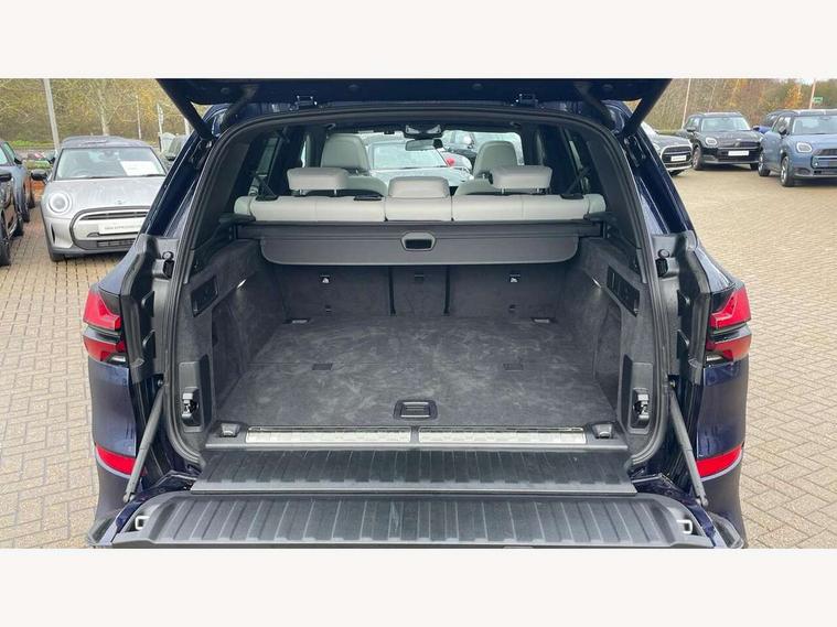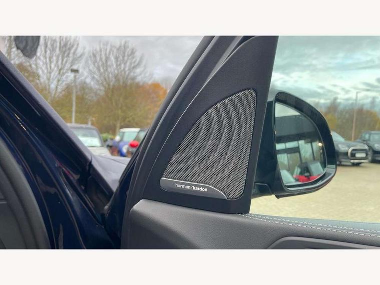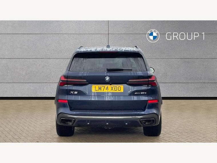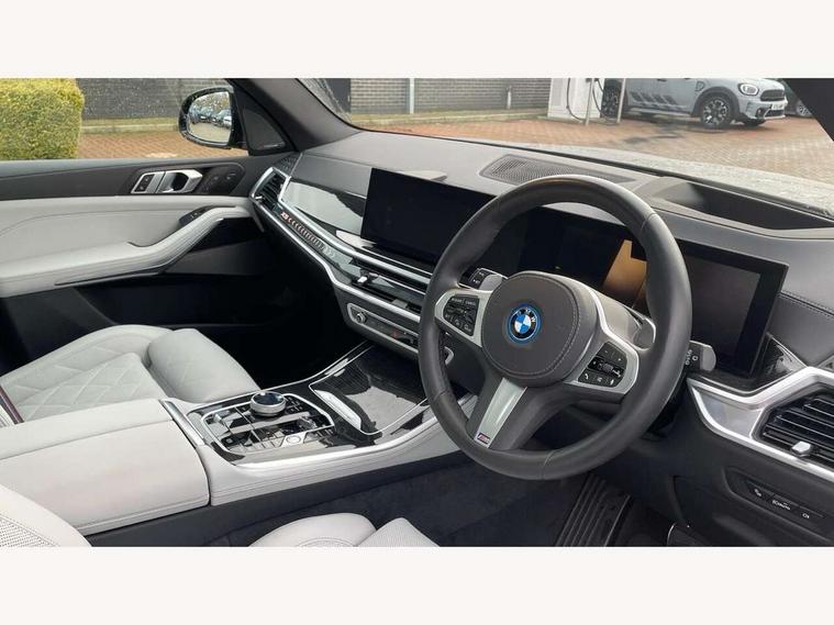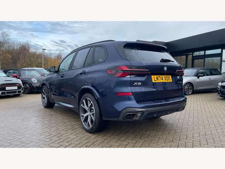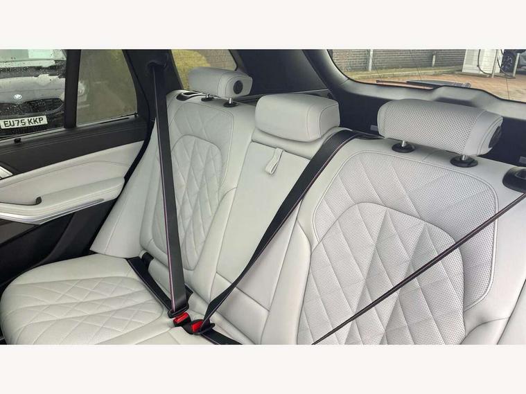 Attentiveness assist, Automatic tailgate operation, BMW ConnectedDrive online services, BMW live cockpit + with curved 12.3 instrument cluster/14.9 central display, nav/Tuner with diversity reception, RDS/4GLTE/remote software upgrade, BMW Teleservices, Condition based service, Cruise control with brake assist, eCall emergency call system, Enhanced bluetooth with wireless charging, Integral active steering, Integrated owner's handbook, PAS, Speed limiter, Wi-Fi hotspot, AC Fast charging preparation (Maximum charging power 11kW), Adaptive 2-axle Front and rear air suspension, Drive performance control with ECO PRO comfort + sport mode, Eight speed steptronic sport automatic transmission and gearshift paddles on the steering wheel, Hi-Fi loudspeaker system, Adaptive LED Headlights, Front and rear electric windows, High beam assistant, High gloss black shadow line roof rails, LED daytime running lights, Rain sensor, Rear side wing doors, Third brake light in rear spoiler, Variable intermittent rear wash/wipe, 12V - Power sockets with 2x centre console and 1x luggage compartment, 3 seat bench in 2nd row, Foldable rear centre armrest with 2 cupholders and storage compartment, Front and rear side armrest integrated into door trim, Headrests for all seats, Luggage compartment separating net, Single front passenger seat, Three spoke sport M leather steering wheel, Velour floormats, Ambient light interior pack - X5, Driving assistant pack with radar based driver assistance system - X5, Expanded exterior mirror pack - X5/X5 M, M aerodynamics pack - X5, 3 rear seatbelts, Acoustic protection for pedestrians, Active protection, Airbags - driver/front passenger, rear and side, first and second row seats head airbags, front passenger seat airbag deactivation + knee airbag, Anti-lock braking system (ABS), Automatic Stability Control (ASC), Brake energy regeneration, Cornering brake control (CBC), Crash sensor activating central locking release, hazard warning lights, fuel cut off, interior lighting + activation of safety battery terminal clamp, DSC - Dynamic Stability Control, Dynamic Traction Control - DTC, Electromechanical parking brake with automatic drive away release and auto hold function, Electronic brake force distribution, Hill start assistant, M Sport blue painted brake calipers with 'M' designation, Mechanical child proof lock on rear doors, Tyre pressure monitoring system, Tyre pressure sensors, Ventilated front and rear disc brakes, Warning triangle and first aid kit, Alarm system, Closing system with central locking, Comfort access system, Locking wheel bolts,