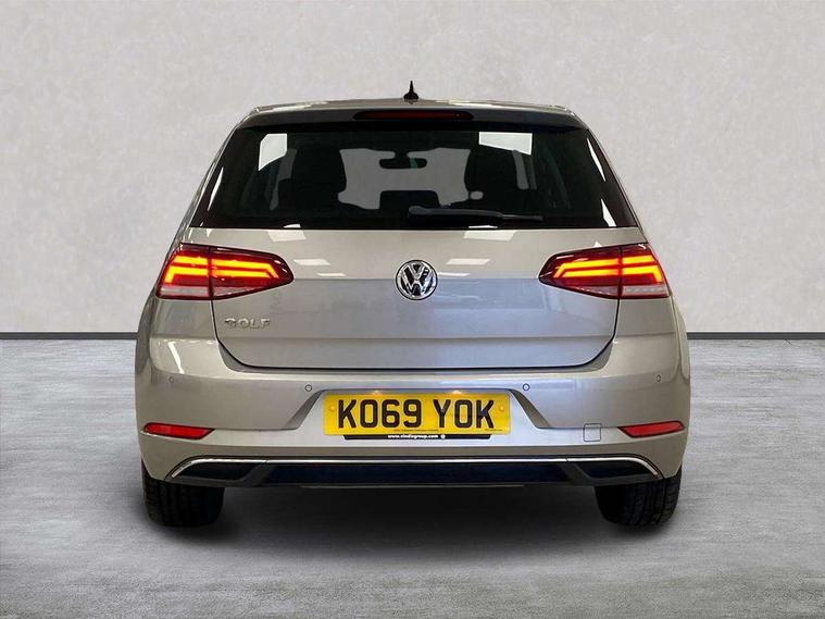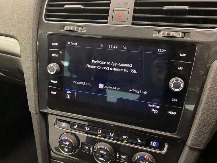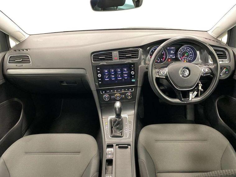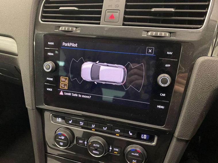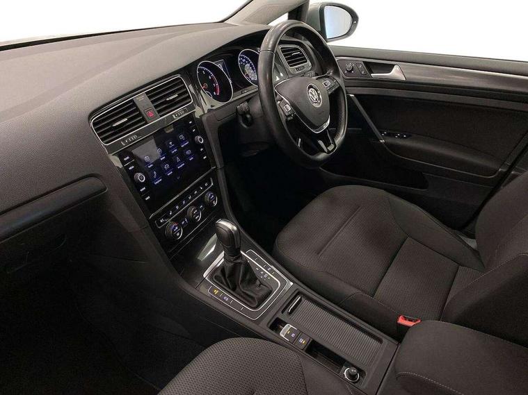 'Lights On' Reminder warning buzzer, ACC - Adaptive cruise control with front assist, forward collision warning, distance monitoring, city emergency brake and speed limiter, Bluetooth telephone and audio connection for compatible devices, Brake pad wear indicator warning light, Driver alert system, Driving Mode Selection with four preset modes - Eco, normal, sport or individual modes, Multifunction computer with visual gear change recommendation for fuel consumption, Power assisted speed sensitive electro-mechanical steering, Push tank flap, Speed limit display, Speedo, rev counter, electronic odometer, trip, service interval display, exterior temperature and fuel gauge, Stop/start system, Think blue trainer driver tips and journey analysis, Warning buzzer and light for front seatbelts unfastened, Battery regeneration during braking, XDS electronic differential lock, Composition media system, DAB Digital radio receiver, Driver Personalisation profile selection, MP3/WMA compatability, Multi device interface (MDI) via USB connection, Premium USB cable in choice of either Apple or Android smartphone compatibility, SMS Functionality, Title and cover art display, USB and SD card connectivity, Volkswagen media control, Black front air intake and radiator grille with chrome insert, Black rear diffuser, Body colour bumpers, Body colour door handles, Body colour door mirrors with integrated indicators, Dusk sensor + automatic driving lights, Electric front windows, Electric rear windows, Electrically adjustable and heated door mirrors, Fully galvanised body, Heated rear windscreen, High level 3rd brake light incorporating LED Technology, LED front fog lights with static cornering light function, Range adjustable headlights via infotainment system with LED daytime running lights, Rear fog lamp, Rear number plate lights incorporating LED technology, Rear tinted glass 65% light absorbing from B pillar backwards, Rear window aerial, Rear window wash/wipe with intermittent wipe, Reflectors in all doors, Tailgate with integrated rear roof spoiler, Windscreen wipers/ intermittent wipe + 4 position delay, 12V socket in luggage compartment, 3 rear headrests, 4 load lashing points in luggage compartment, 60/40 split folding rear seat backrest, Bag hook in luggage compartment x 2, Climate control - 2 zone electronic air conditioning with automatic air recirculation and allergy filter, Cooled glovebox, Cover for storage compartment in centre, Dust/pollen filter, Front and rear reading lights X 2, Front centre armrest with storage compartment and two rear air vents, Front seat back storage pockets, Grab handles front x 2, rear x 2 with integrated coat hooks, Height and reach adjustable steering wheel, Illuminated vanity mirrors, Instrument lighting white adjustable panel illumination, Interior light delay, Isofix preparation for 2 rear child seats, Load through provision with rear centre armrest and cupholders x2, Luggage compartment lighting, Overhead storage box, Pearl grey headlining, Storage box in luggage compartment, Storage compartment in roof console with cover, Storage compartments in centre console, Storage compartments in front doors, Storage compartments in rear doors, Stowable luggage compartment cover, Sun visors, Variable boot floor, height adjustable and removable, Convenience Pack - Golf, Mirror pack - Golf, Winter pack - Golf, 3 rear three point seatbelts, Airbags - Driver's and front passenger's, curtain airbag, Driver's knee, front side impact and passenger's airbag deactivation switch, Anti-lock Braking System (ABS) with Hydraulic Brake Assist (HBA), Automatic post collision braking system, Child locks on rear doors, Driver/Passenger optimised head restraints, Electronic parking brake with auto hold, Electronic stability control (ESC) including Electronic differential lock (EDL) and ASR (Traction control) with deactivation via infotainment system, Front ventilated disc brakes and rear disc brakes, Pre crash preventive occupant protection, Three point height adjustable front seatbelts with tensioners, Tyre pressure loss indicator, Alarm with interior protection and deactivation via infotainment system, Electronic engine immobiliser, Brushed dark silver decorative inserts in dash and door panels, Chrome plated air vent surround, Chrome-plated light switch surround, Polar night black decorative inserts in centre console, Steel space saver spare wheel,