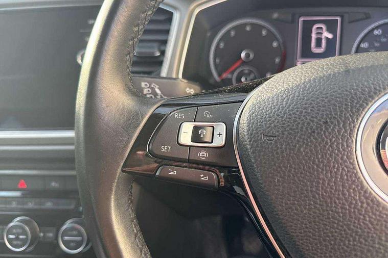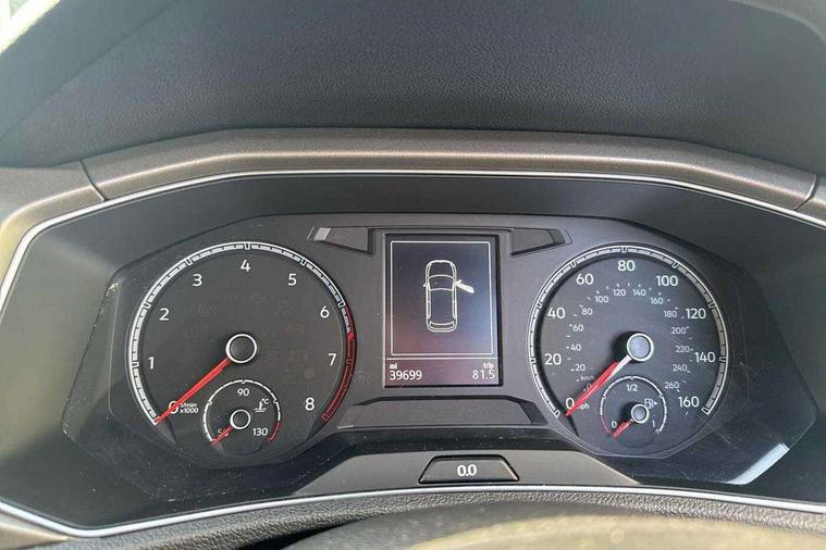 'Lights On' Reminder warning buzzer, 2 USB connection charging sockets, Adaptive cruise control with front assist, radar sensor controlled distance monitoring, city emergency braking, App-Connect, Automatic start/stop system, Bluetooth telephone and audio connection for compatible devices, Car information display, Driver tips and journey analysis, Lane assist, Multifunction computer with visual gear change recommendation for fuel consumption, Service interval indicator, Think blue trainer driver tips and journey analysis, Warning sound and light for doors and tailgate open, Warning sound and light for front seatbelts unfastened, We Connect Go Dongle, Battery regeneration during braking, DAB Digital radio, Multi device interface (MDI) with USB connection, Music playback - MP3, WMA and AAC files, Premium USB cable in choice of either Apple or Android smartphone compatibility, SD card slot, Simultaneous pairing of 2 compatible mobile devices, SMS functionality - read, compose and send SMS messages using touch-screen display, Title and cover art display, Auto dimming interior rear view mirror, Automatic hazard lights activation under emergency braking, Black grained lower door protectors, Black grained wheel arches, Body colour bumpers with silver metallic underbody fascia, Body colour door handles, Chrome trim on upper and lower radiator grille, Dusk sensor, Electrically foldable, adjustable and heated door mirrors with puddle lights and reverse activated kerb-view adjustment on passenger's door mirror, Front and rear electric windows, Front windscreen wiper with intermittent wipe and 4 position delay, Fully galvanised body, Heated rear window, High level 3rd brake light, LED rear number plate lights, Manual coming/automatic leaving home lighting function, Rain sensor, Rear wash/wipe with intermittent wipe setting, 12V socket in centre console storage area, 2 front reading lights, 3 rear head restraints, 4 load lashing points in luggage compartment, Climate control - 2 zone electronic air conditioning with automatic air recirculation and allergy filter, Drawer under drivers seat, Front centre armrest with storage compartment, longitudinal and height adjustable and two rear air vents, Front cupholders x 2, Front seat back storage pockets, Glovebox, Height adjustable front seats, Height/reach adjust steering wheel, Illuminated vanity mirrors, Instrument lighting, white adjustable panel illumination, Interior light delay, Isofix easy fit child seat preparation for 2 outer rear seats, Load through provision with single cup holder when folded down, Luggage compartment cover, removable, Luggage compartment lighting, Split folding rear seat backrests with centre armrest, Storage compartment in left and right luggage area, Storage compartment in rear doors, Storage compartments in driver and front passenger doors, 3 rear three point seatbelts, ABS, Curtain airbags, Driver and front passenger safety-optimised head restraints, Drivers and front passengers airbags with passengers deactivation switch, Electronic parking brake with auto hold, Electronic stability control (ESC) includes ASR, EDL, EDTC and trailer stabilisation function, Front seat side impact airbags, Predictive pedestrian protection, Rigid safety cell with front and rear crumple zones, Three point height adjust front seatbelts + pretensioners, Tyre pressure loss indicator, Ventilated front and rear disc brakes, Volkswagen roadside assistance, Alarm with interior protection and deactivation via infotainment system, Electronic engine immobiliser, Remote central locking with 2 remote folding keys, Limestone grey decorative inserts in dash and door panel, Steel space saver spare wheel,