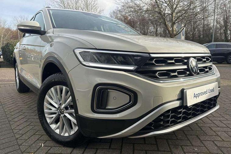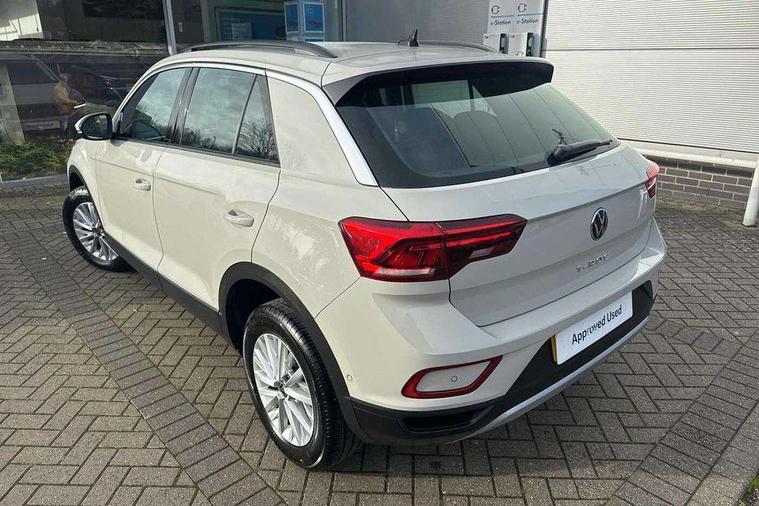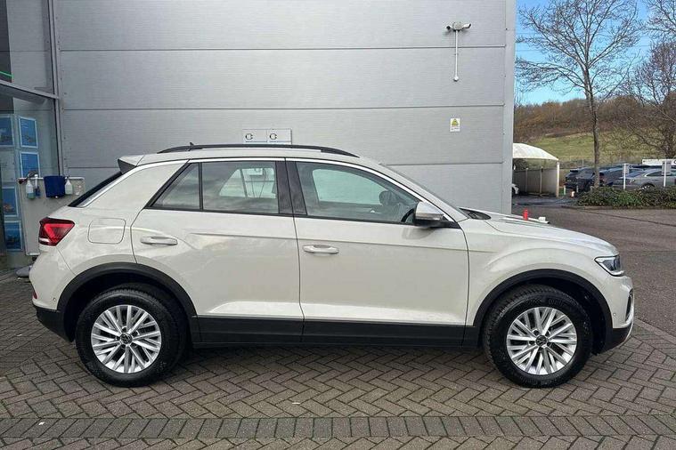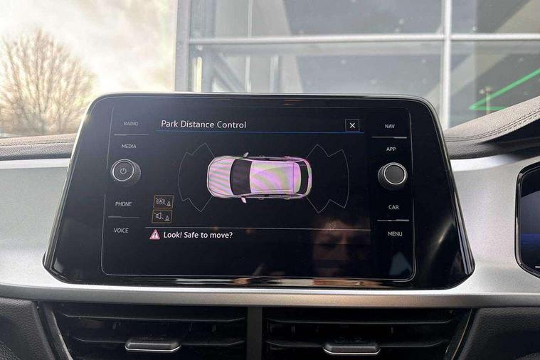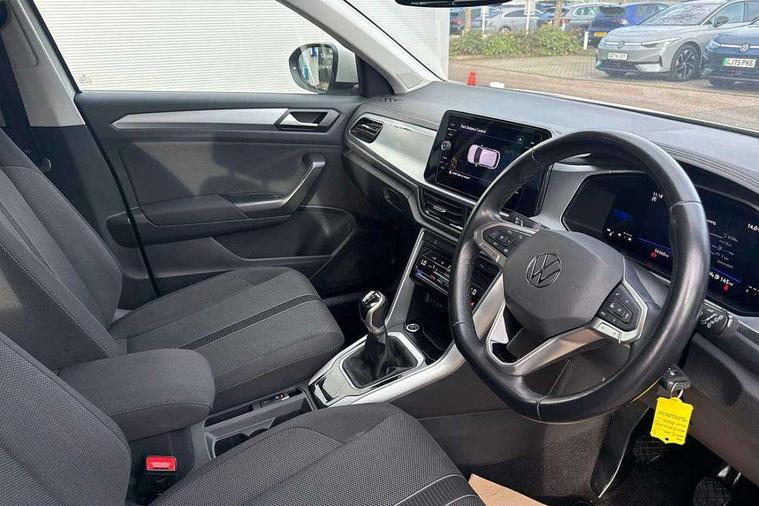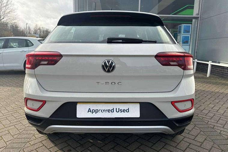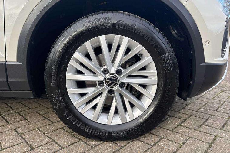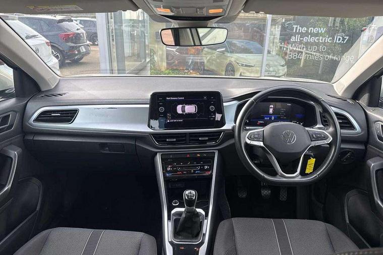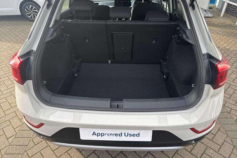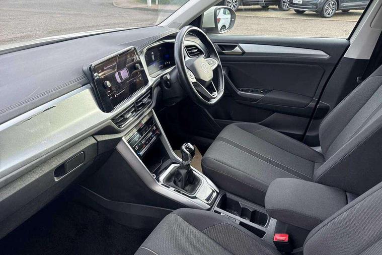 Bluetooth mobile phone interface, Driver alert system with fatigue detection, Driver tips and journey analysis, Emergency call service, Lane keeping system Lane Assist, Modified key software - reduce switch off time for key status change to Long no motion, Online services, Park assist including front and rear parking sensors, Power assisted speed sensitive steering, Service interval indicator, Tailgate/trunk lid release from outside, Think blue trainer driver tips and journey analysis, Warning sound and light for front seatbelts unfastened, Wireless app connect, Battery regeneration during braking, Front shock absorption, Rear shock absorption chassis with increased ride height, Start/stop function with battery regeneration, DAB Digital radio, Diversity antenna for FM reception, Front and rear 6 speakers, Music playback - MP3, WMA and AAC files, Premium USB cable in choice of either Apple or Android smartphone compatibility, SD card slot, Simultaneous pairing of 2 compatible mobile devices, Title and cover art display, We Connect and We Connect Plus functionality, 3rd brake light, Auto dimming interior rear view mirror, Automatic hazard lights activation under emergency braking, Automatic headlight control with LED separate daytime running lights with coming/leaving home function, Black roof rails, Body coloured bumpers and radiator grille with chrome trim and front fog lamps with chrome bezel, Body coloured exterior mirror housings and door handles, Extended roof spoiler, Exterior mirrors aspherical on driver side, convex on front passenger side, External USB type C socket and charging sockets, Front windscreen wiper with intermittent wipe and 4 position delay, Heated rear window, LED Headlights, LED rear combination lamps, LED rear number plate lights, LED tail lamp rear comination lamps, Power windows with comfort operation and circuit breaker, Rain sensor, Rear exhaust tailpipe, Rear fog light on one side and reversing lights on both sides, Rear side wing doors, Rear wash/wipe with intermittent wipe setting, Remote electrically foldable door mirrors, puddle lights and reverse activated passenger's door mirror, 12V power socket in centre console, 3 rear head restraints, 3 seat bench in 2nd row, 4 load lashing points in luggage compartment, Air care climatronic air conditoning system with active combination filter and 2-zone temperature control, Ambient lighting with mirror logo projection, Cloth upholstery, Door and side trim panel in cloth, Drawer under drivers seat, Driver/front passenger seat height adjustment, Front centre armrest, Front comfort sports seats, Front cupholders x 2, Front reading light, Instrument lighting, white adjustable panel illumination, Interior light delay, Isofix child seat preparation, Leather gearshift handle, Load-through provision with cup holder when folded down ('Unsplit rear seat bench, split folding backrest, with centre armrest), Luggage compartment lighting, Lumbar support for driver's and front passengers seat, Non-folding front passenger seat backrest, Single front passenger seat, Storage compartment in left and right luggage area, Storage compartment in rear doors, Storage compartments in driver and front passenger doors, Sunvisors with illuminated vanity mirrors, Variable boot floor, height adjustable and removable, Driver assistance pack without proactive passenger protection - T-Roc, 3 point height adj front seatbelts + pretensioners, 3 point seatbelts in outer rear with ECE label, ABS, Child locks on rear doors, Driver and front passenger airbag with front passenger airbag deactivation, Driver and front passenger safety-optimised head restraints, Drivers seatbelt reminder, Electronic parking brake, Electronic Stability Control (ESC) inc EDL (Electronic Differential Lock) and ASR (Traction Control), Front and rear passengers curtain airbag system including front side airbags, Front assist with city emergency braking and pedestrian monitoring, Front disc brakes, Front seat side impact airbags, Hill start assist, Predictive pedestrian protection, Rear disc brakes, Single tone horn, Tyre pressure loss indicator, Volkswagen roadside assistance, Alarm with interior protection, Anti-theft alarm system with interior monitoring, backup horn, and towing protection, Remote central locking with SAFELOCK, radio remote control with 2 remote control folding keys, Pewter matt decorative inserts for intrument panel, centre console and door panels at the front, Trims for alloy wheels,