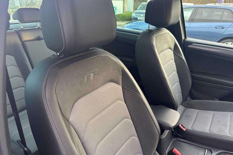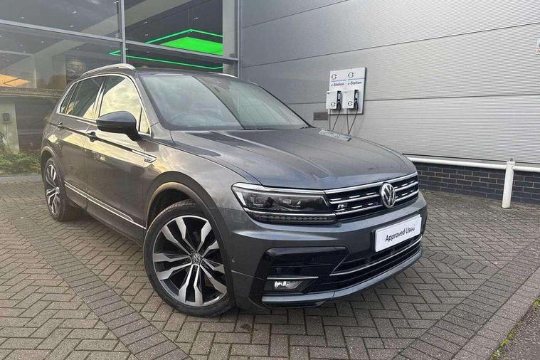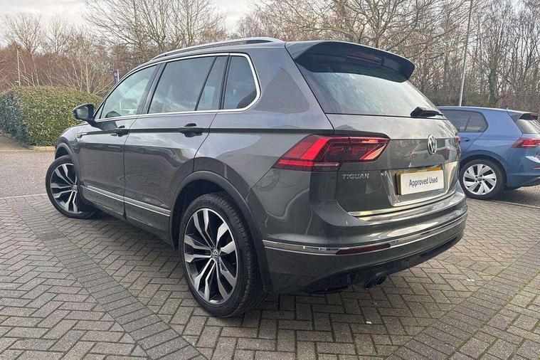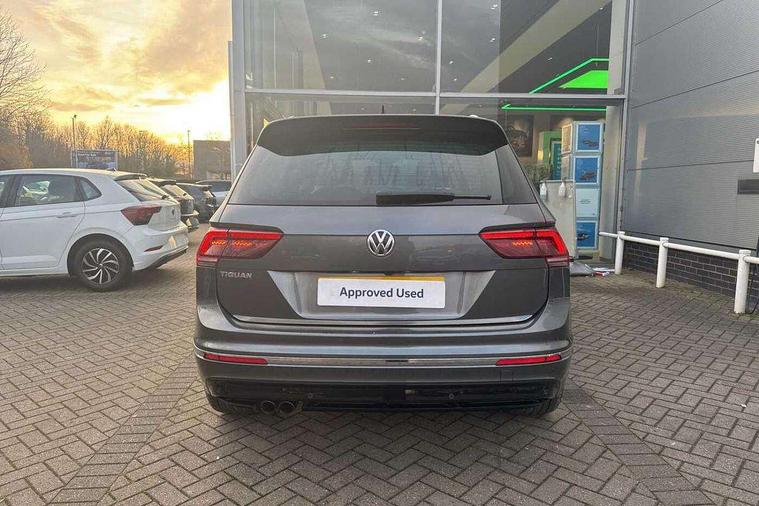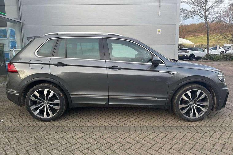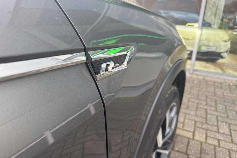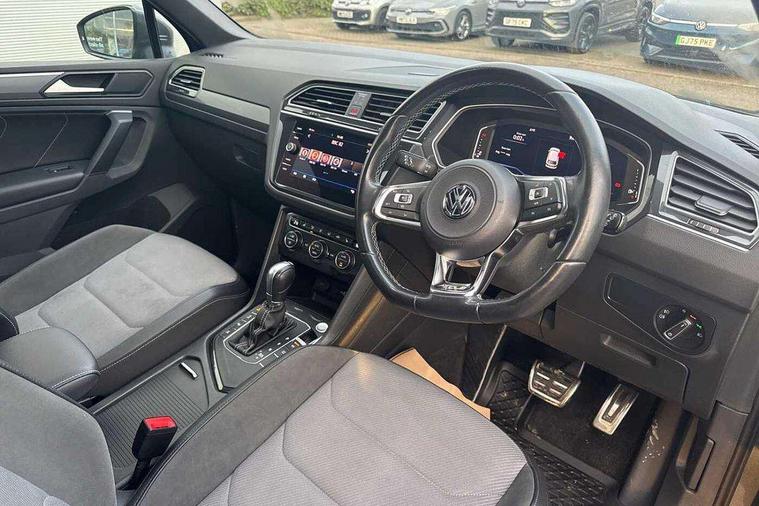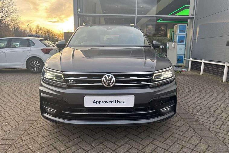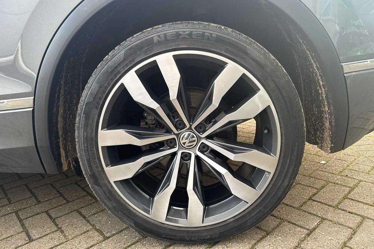 Aluminium decorative inserts, Chrome door trim inserts, Ambient lighting pack - Tiguan, 20" Suzuka alloy wheels + anti theft wheel bolts, Steel space saver spare wheel, Alarm with interior protection, Electronic engine immobiliser, Remote central locking with 2 remote folding keys, 2x USB sockets in front, DAB Digital radio, MP3 compatible single CD player, SD card slot, 3 rear 3 point seatbelts, ABS+EBD+Brake assist, Active bonnet, Active pedestrian safety system, Curtain airbags, Driver/Front Passenger airbags, Driver/Passenger whiplash optimised head restraints, Drivers knee airbag, DTC - Drag torque control, Electronic parking brake with auto hold, ESP with EDL + ASR, First aid kit, Front and rear brake disc, Front assist including city emergency braking, Front side airbags, Front ventilated brake discs, Head airbag system, Height adjustable front 3 point seatbelts + pretensioners, Hill hold control, Passenger airbag deactivate switch, Passenger knee airbag, Pre crash system, Rear side airbags, Seatbelt warning lamp and buzzer, Two tone horn, Warning triangle, 3D effect LED rear lights, Auto dimming interior mirror, Automatic activation of hazard warning lights, Body colour door handles, Body colour door mirrors, Body colour rear spoiler, Body colour side skirt, Body coloured bumpers, Chrome side window surrounds, Chrome trimmed radiator grille, Coming/leaving home lighting function, Dusk sensor + auto driving lights, Elec heated + adjust door mirrors, Electric folding door mirrors, Electric panoramic sunroof with sunblind, Front and rear electric windows, Heated rear window, LED headlights with dynamic light assist daytime running lights and cornering front fog lights, LED rear lights, Piano black rear diffuser, R Line body kit, R Line side sills, Rain sensor windscreen wipers, Rear windscreen washer and wiper with interval delay, Side skirts and rear bumper with chrome insert, Silver roof rails, Silver under body guard, Tinted windows (B pillar backwards), Windscreen wipers/ intermittent wipe + 4 position delay, 12V Accessory socket in centre console, 3 rear headrests, 3 zone climate control, 4 load lashing points, 40:20:40 split folding rear seats, Bag hook in luggage compartment, Black headlining, Driver + front passenger lumbar support, Foldable passenger seatback, Front + rear carpet mats, Front centre armrest with 12v socket, Front centre armrest with storage + rear 2 air vents + cupholders, Front seatback folding tables, Height/reach adjust steering wheel, Illuminated driver/passenger vanity mirrors, Illuminated scuff plates, Instrument lighting white adjustable panel illumination, Interior light with delay, Isofix Preparation 2 Rear child seats, Leather gear knob, Leather multifunction steering wheel with tiptronic control, Load through provision with 2 cupholders when folded, Lockable cooled glovebox, Luggage compartment lighting, Luggage compartment side storage, Map pockets on front seats, Passenger seat height adjuster, Rear cupholders, Removable luggage cover, Sliding/reclining rear seats, Stainless steel pedals, Storage compartment in driver's door, Storage compartment in passenger's door, Storage compartment in rear doors, Storage tray on dashboard, Sunglasses storage, Unique R Line door sill protectors, Variable boot floor, App-Connect, Active information display, Adaptive cruise control, Bluetooth phone integration system, Distance control assist, Driver profile selection, Fatigue detection system, Front assist, radar sensor controlled distance monitor, city emergency braking + predictive pedestrian protection, Instrument cluster, Lane assist, Low washer fluid warning light, Multifunction colour display, Outside temperature display, Progressive power assisted steering, Service interval indicator, Speed limiter, Warning lights, Diesel particulate filter, XDS electronic differential lock,