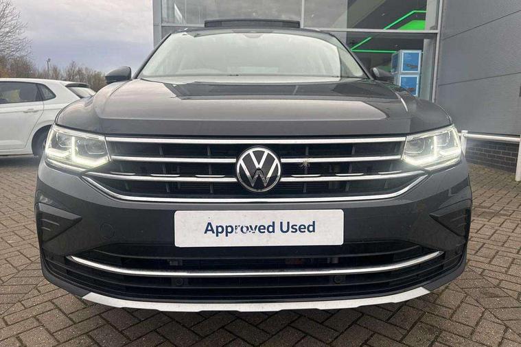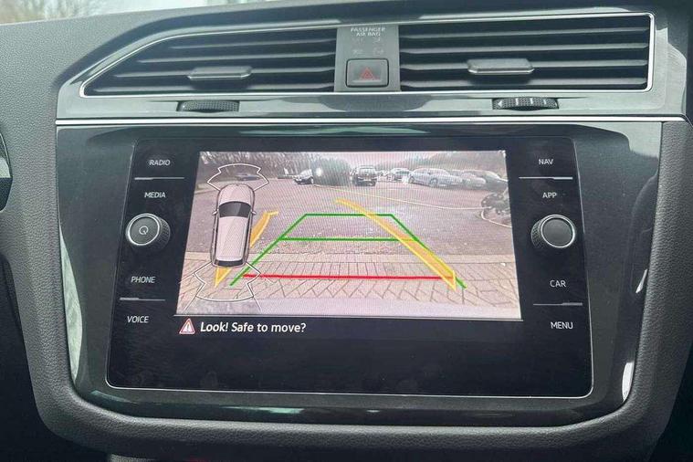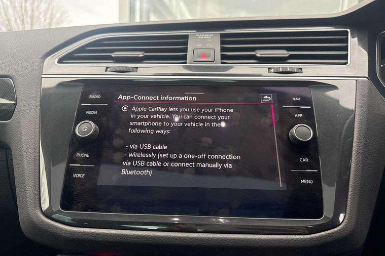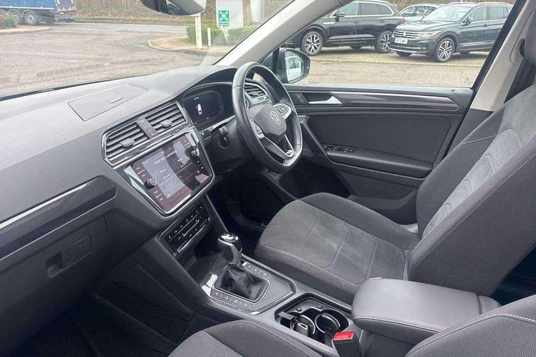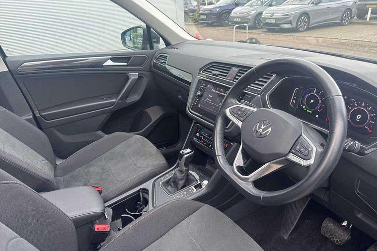 Adaptive cruise control ACC stop and go including speed limiter, App-Connect incl. App-Connect Wireless for Apple CarPlay and Android Auto, Bluetooth phone integration system, Distance control assist, Driver alert system, Driver profile selection, Dynamic road sign display, eCall emergency call system, Electromechanical speed sensitive power steering, Engine start/stop button, Lane keeping system Lane Assist, Lights on warning, Motorised electric tailgate operated via key fob, drivers door and foot movement under tailgate, Multifunction front facing camera, Outside temperature display, Premium multifunction display with multi colour display, Remote control boot opening, Rev counter, Revision / skills operating concept travel assistant, Service interval indicator, Speed limit display, Start/stop system with regenerative braking, Tailgate/trunk lid unlocking from outside, Trip computer, Warning sound and light for doors and tailgate open, Battery regeneration during braking, Charging cable Mode 3 Type 2 / 3 (16A), XDS electronic differential lock for improved traction and handling, 4 X 20 watt output, 8 Speakers, Diversity antenna for FM reception, Radio, SD card slot, Simultaneous pairing of 2 compatible mobile devices, SMS functionality - read, compose and send SMS messages using touch-screen display, Title and cover art display, USB C ports, Aluminium door sill protectors, Auto dimming interior rear view mirror, Automatic headlight control system, Body colour door handles, Body coloured bumpers, Body coloured door mirrors with integrated indicators, Coming/leaving home lighting function, Dynamic headlight range control, Front and rear electric windows, Heated rear window, High level 3rd brake light, IQ light-Adv high beam, Dynamic light assist for LED matrix headlamp+LED separate DRL+DCL, dark red rear LED tech, Poor weather light+ cornering light, Laminated safety glass windshield, heat and sound insulating, LED rear number plate lights, Privacy glass for rear side windows and rear window, Rain sensor windscreen wipers, Rear exhaust tailpipe, Rear fog lamp, Rear side wing doors, Rear windscreen washer and wiper with interval delay, Side and rear windows in heat insulating glass, Tilting and sliding panoramic sunroof with rear panoramic sunroof, Trailer Stability Programme, Windscreen wipers/ intermittent wipe + 4 position delay, 12V outlet in center console rear and in luggage compartment, 12V outlet in front and tray, 2 cup holders in front, 2 LED front reading lights, 2 LED rear reading lights, 3 bench rear seats in 2nd row, 3 rear headrests, 4 load lashing points, 40:20:40 split folding rear seats, Air Care Climatronic 3 zone automatic climate control with enhanced air filter and controls in the rear, Backrest release for left front seat, Climate control unit rear with touch function, Door and side trim panel in foam film and woven fabric, Front centre armrest, Front footwell illumination, Front seats head restraints (x-adjustment), Height adjustable front seats, Height/reach adjust steering wheel, Instrument lighting white adjustable panel illumination, Interior light with delay, Isofix Preparation 2 Rear child seats, Leather gear knob, Lockable cooled glovebox, Luggage compartment lighting, Luggage net, Rear bench seat asymetrically split folding, longitudinally movable and folding with load-through hatch and center armrest, Remote unlocking for rear seat backrest, Removable luggage cover, Removable rear headrests, Safety optimised front head restraints, Single front passenger seat, Sliding/reclining rear seats, Standard rear seat release, Storage compartment in driver's door, Storage compartment in passenger's door, Storage compartment in rear doors, Storage compartments in luggage area left and right, Storage tray on dashboard, Sun visors with illuminated vanity mirrors, Top front comfort seats, Variable boot floor, height adjustable and removable, Easy open and close pack with safelock - Tiguan, Park assist pack - Tiguan, 3 point seat belt for centre rear seats, 3 point seat belts with seat belt pretensioners for the outer rear seats, Active bonnet, Curtain airbags for front and rear passengers, Driver/Front Passenger airbags, Drivers knee airbag, Electronic parking brake with auto hold, Electronic Stability Control with driver steering recommendation, ABS, ASR, EDL, EDTC and trailer stabilization, Front assist with autonomous emergency braking (for Adaptive Cruise Control ACC up to 130 mph), Front disc brakes, Front passenger airbag deactivation, Front side airbags, Height adjustable front 3 point seatbelts + pretensioners, Hill hold control, Manual child proof rear door locks, Pedestrian monitoring system, Power assisted brakes, Proactive passenger protection system in combination with front assist, Rear disc brakes, Rigid safety cell with front and rear crumple zones, Two tone horn, Tyre pressure loss indicator, Warning sound and light for front seat belts if unfastened, Anti theft alarm system with interior monitoring, backup horn and towing protection, Anti theft wheel bolts, Central locking system with safelock radio remote control and 2 remote control folding keys, Electronic engine immobiliser, Tool kit, Tyre mobility kit Includes 12V compressor and tyre sealant,