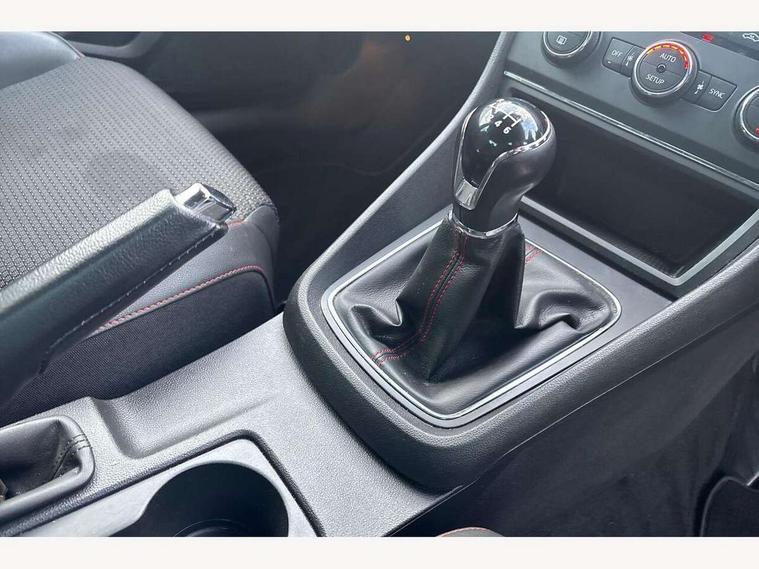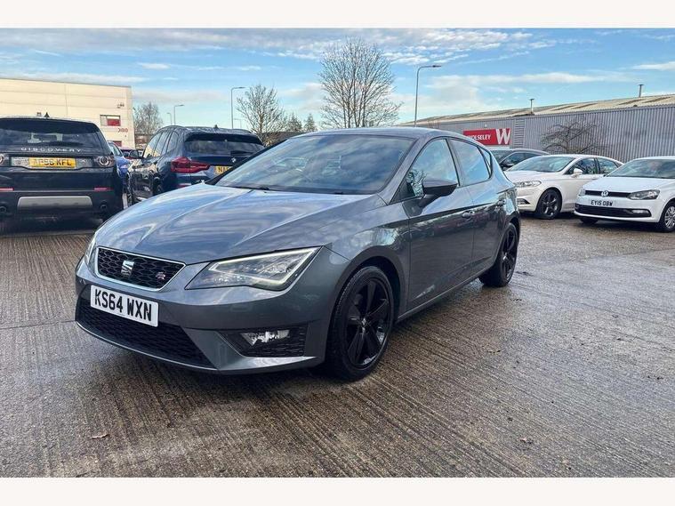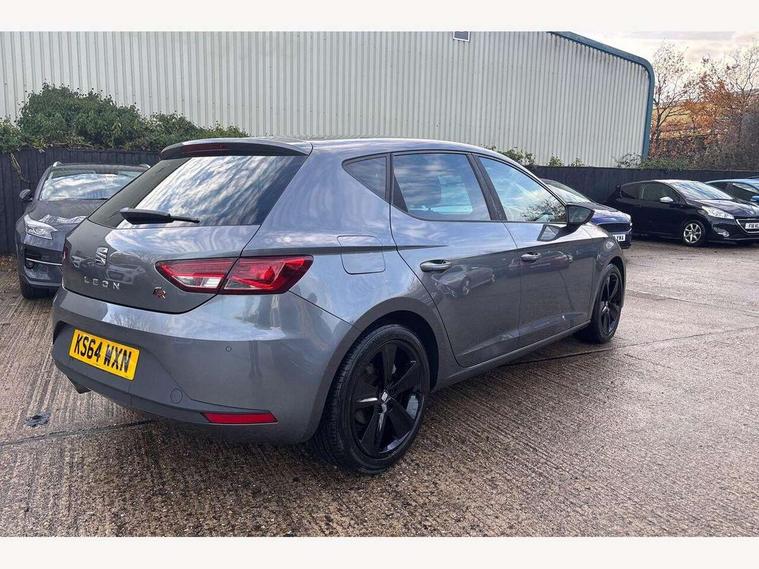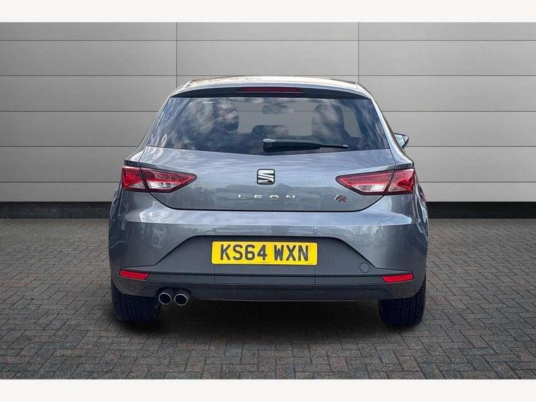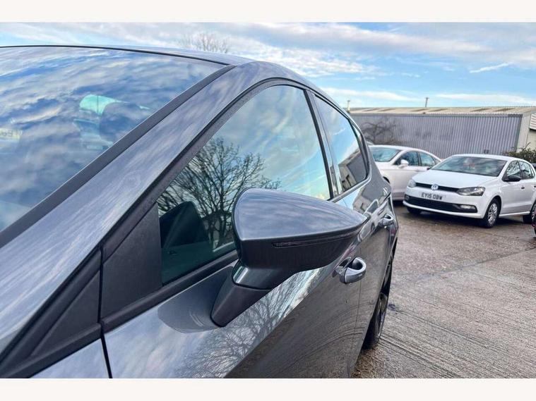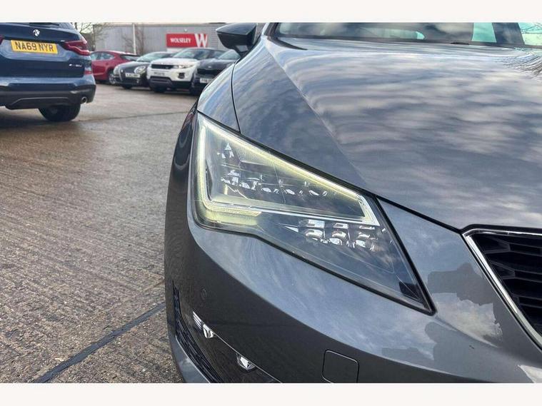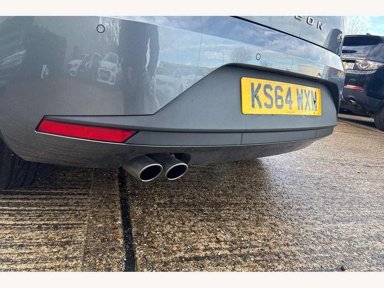 'Lights On' Reminder warning buzzer, Bluetooth Handsfree Phone Connection, Digital clock and outside temperature display, Front and rear parking sensors, Low fuel warning light, Multi function display, Remote fuel flap release, SEAT Drive profile, SEAT logo boot release, Service interval indicator, Touch screen display, Trip computer, Sports suspension, XDS electronic differential lock, Auxiliary input socket, Bluetooth audio streaming, DAB Digital radio, Radio/CD + MP3, SD card slot, Steering wheel mounted audio/phone controls, USB port, Aluminium front door sills, Body colour door handles, Body coloured bumpers, Chromed centre radiator grille surround, Coming home headlight function, Dark tinted rear windows, Electric adjustable/heated/folding door mirrors, Electric front/rear windows with one touch/auto up/down, Electric headlamp adjustment, LED indicators in door mirrors, Rear wash/wipe, Reverse activated kerb-view adjustment on passenger's door mirror, Tinted windows, 12v power point in centre console, 3 height adjustable rear headrests, Active head restraints, Additional heating and ventilation outlet in rear of centre console, Ambient lighting, Driver/passenger sunvisors with illuminated vanity mirrors, Dual zone climate control, Dust/pollen filter, Front adjustable head restraints, Front armrest with storage box, Front cupholders x 2, Front map reading lights, Front seat and rear pockets, Front/rear floor mats, Height/reach adjust steering wheel, Illuminated boot, Illuminated glovebox, Leather handbrake, Luggage tie-down hooks, Passenger seat height adjuster, Passenger seat lumbar adjust, Perforated leather steering wheel with red stitching + gear knob, Rear reading lights, Rear top tether child seat ISOFIX attachment, Split folding rear seat, Full LED headlight pack - Leon, Seat navigation pack - Leon FR/Cupra, 3 point seatbelts on all rear seats, ABS + traction control, Child proof door locks, Curtain airbags, Driver/Front Passenger airbags, Drivers knee airbag, ESP+EBA, Front seatbelt pretensioners, Front side airbags, Hill hold control, Manual passenger airbag deactivation function, Seatbelt warning, Tyre pressure monitoring system, Engine immobiliser, Locking wheel bolts, Remote central locking + deadlocks, Second remote key, Volumetric alarm with back up horn, Chrome interior trim,