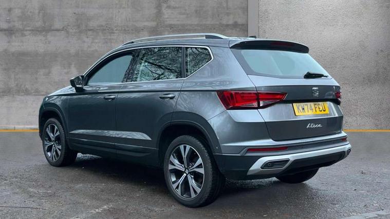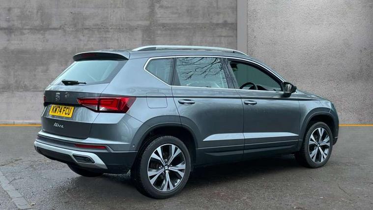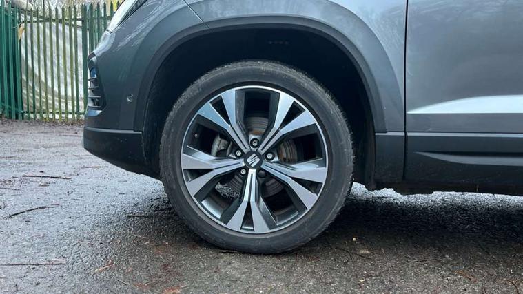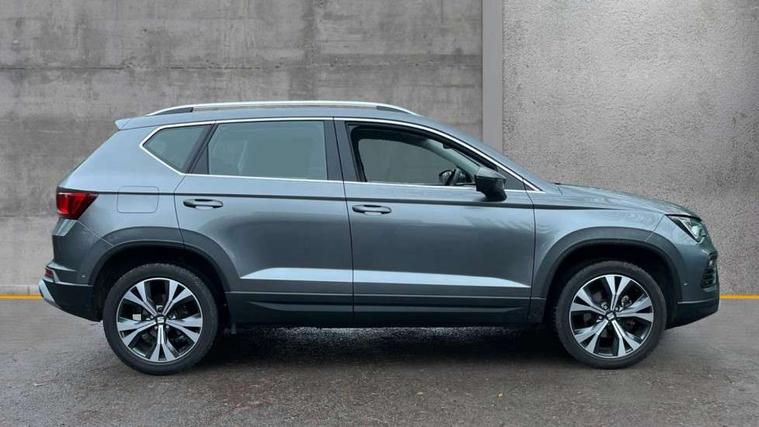 8" Digital cockpit, Colour multi-function on board computer display, Cruise control system with speed limiter, E-call, Outside temperature gauge, PAS, SEAT drive profile with driving experience button - Normal, Sport, Eco and Individual mode, gearshift, steering and throttle response, Self parking functionality (includes front and rear parking sensors), Start/stop system, Tailgate, Trip computer, wired and wireless full link smartphone integration, Wireless phone charger, Steering wheel mounted audio/phone controls, Black wheel arch surrounds, Body colour bumpers, Chrome front grille frame, Chrome roof rails, Chrome side window trim, Daytime running lights, Door mirrors with welcome light silhouette, Dynamic headlight range control with self adjusting whilst driving, Electric adjustable/heated/folding door mirrors, Front and rear electric windows, Full LED headlamps with lens and LED front fog lamps with cornering function, LED 3rd brake light, LED rear tail lights, Rear exhaust tailpipe, Rear fog lights, Rear side wing doors, Rear wash/wipe, Variable front intermittent wipers, 12V socket in front, 3 seat bench in 2nd row, 60/40 split folding rear seat, Cloth upholstery with front comfort seats, Drawer under right front seat, Dual zone climate control, Front and rear head restraints, Front centre armrest, Front seat back storage pockets, Height adjustable driver and passenger seat with lumbar adjustment, ISOFIX points in outer rear seats with top tether anchorage points, Leather sports steering wheel and gear knob, Rear armrest and easy back seat release mechanism from boot, Single front passenger seat, Steering wheel mounted gearshift paddles, Convenience pack - Ateca, Interior lighting pack - Ateca, Navigation system pack with DAB - Ateca, Safety and driving pack with attention and drowsiness assist - Ateca, 3x3 point rear seatbelts, ABS, Traction control system (TCS), Electronic stability control (ESC) and Electronic differential lock system (XDS), Airbags - Driver and front passenger airbag with deactivation, front side, two curtain and driver's knee airbags, Electric parking brake with auto hold function, Front and rear seatbelt reminder, Front assist with autonomous emergency braking, Hill hold control, Manual rear child locks, Single tone horn, Tiredness recognition system, Tyre pressure monitoring system, Alarm, Keyless entry, Locking wheel bolts, Remote central locking, Chrome interior detailing, 18" Performance machined alloy wheels 36/2 in nuclear grey,