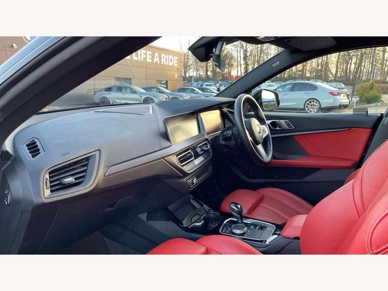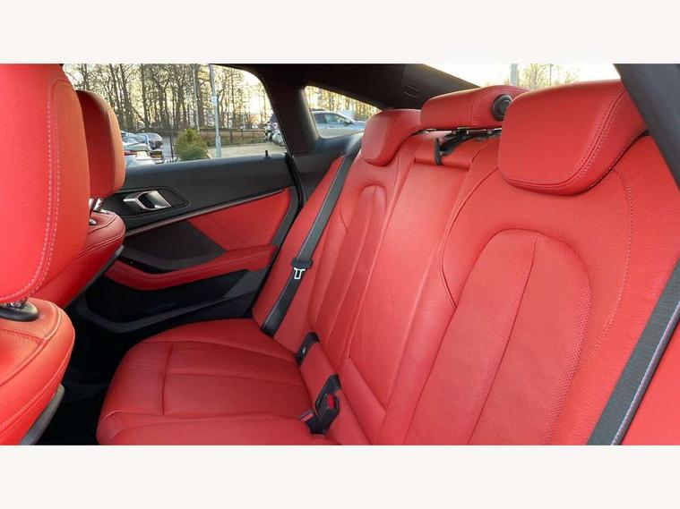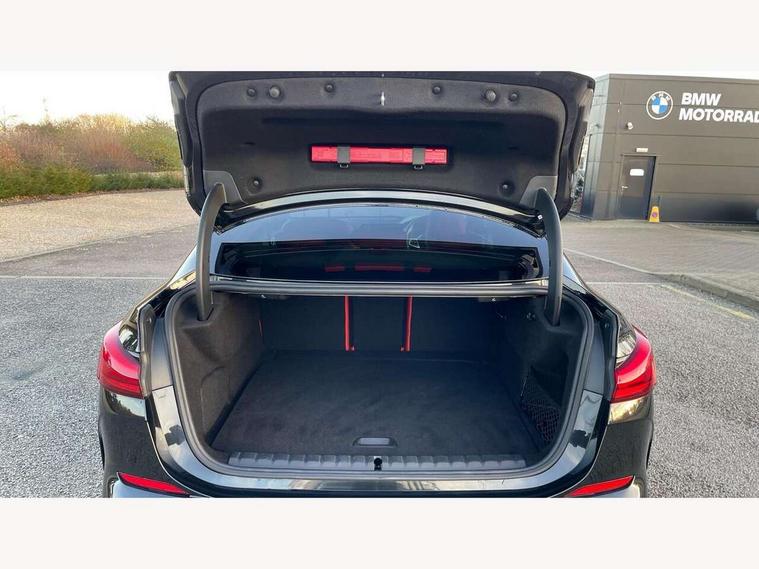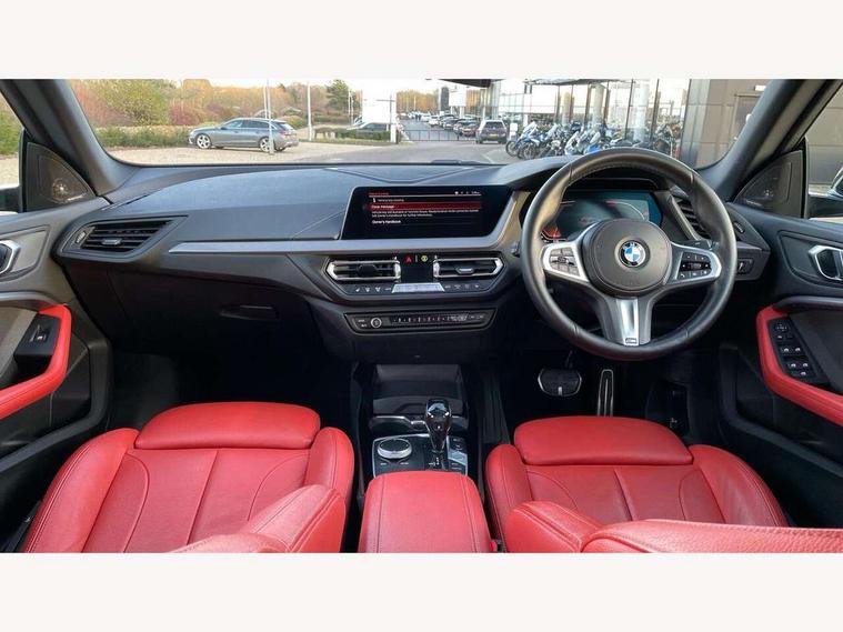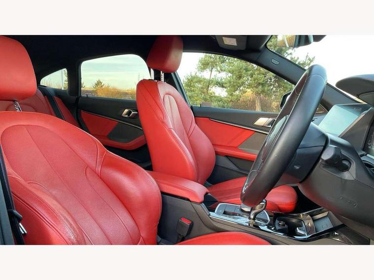 Active guard plus, Attentiveness assist, Auto start-stop, BMW Intelligent Personal Assistant, BMW Live Cockpit Professional with 10.25" high resolution instrument and control display, BMW Online services, BMW operating system with 7.0 mid interface, BMW Teleservices, Check Control warning system for monitoring of lights and door/luggage compartment open warning, iDrive controller with touch function and 7 short cut favourite buttons on centre console, Integrated navigation data with map data via USB +features such as 3D landmarks and micro city models, Integrated owners handbook, Intelligent voice assistant, M Sports steering, On board computer - average speed+fuel consumption, service interval, clock/date, odometer/trip meter, outside temperature display and ice warning, Optimum shift indicator, Personal Profile, Pull away assistant, Speed limiting function, Aluminium lightweight construction, Balancer shaft, Double VANOS, Drive performance control with ECO PRO comfort + sport mode, Dual clutch automatic transmission, Electronic differential lock, High precision injection, M Sport suspension with stiffer spring/damper set-up and vehicle lowered by 10mm + twin tube gasfilled shock absorbers and Anti roll bars, Performance Control, Petrol Particulate Filter, VALVETRONIC engine management, 2x USB Type C ports (for charging and data transfer), 4G LTE Connectivity with hard wied 4G network sim card, DAB digital radio, MP3 players and RDS double tuner, Automatically dimming rear view mirror, Body colour door handles, Body colour mirror caps, Chrome 'M' logo side designation, Chrome exhaust single tailpipe, round, Direction indicator side lights integrated exterior mirrors, Electric windows - front and rear, with open/close fingertip control and trap release, Exterior mirrors - electrically folding with anti-dazzle, Fading support, Follow me home headlights, Front and rear bumper system with replaceable deformation elements, Front door sill finishers in black plastic with M designation in metallic look, Heated, electrically adjustable exterior mirror aspheric on driver side, convex on passenger side, High gloss black B pillar finish, High gloss shadow line exterior trim, High level third brake light, LED daytime running lights, LED front fog lights, Lightweight engineering, Model designation on right side of tailgate, Preparation for high beam assistant, Rain sensor with automatic headlight activation, Rear fog lights, Reversing light in rear light cluster, Welcome lighting, 12V power socket in centre console, 2 cupholders in front centre console, 3 rear seat head restraints, 3 spoke M sports design leather steering wheel finished in nappa leather with specific M badge, Anthracite finished floor mats with contrasting surround, Anthracite headlining, Automatic two zone climate control air conditioning, Child seat ISOFIX attachment for two outer rear seats and front passenger seat with anchorage points, Conditioned based service, Dakota leather upholstery with perforation and contrast stitching, Driver and front passenger seat heating, Front and rear door pockets including bottle trays, Front and rear side armrests integrated into door trim, Front armrest foldable with integrated storage compartment, Front centre interior light over interior mirror and rear centre automatic interior light when door is opened/ignition switched off or via remote key, Front head restraints, Front sports seats with electric side bolster adjustment, Glove compartment, Glovebox with light, Luggage compartment lighting, Manually adjustment steering wheel column, Multi-function controls for steering wheel, Shift-by-wire selector shift, Sun visors with vanity mirrors and insert tab, Through loading system with 40/20/40 split folding rear seat, Two lashing eyes, Additional interior lighting pack - 2 Series Gran Coupe, Connected pack professional - 2 Series Gran Coupe, Extended storage pack - 2 Series Gran Coupe, M Sport exterior styling aerodynamics pack - 2 Series Gran Coupe, 2 tone horn, Airbag - Front driver and passenger, front and rear head, front side, curtain head protection, manual deactivation of front passenger airbag possible, Anti lock braking system (ABS) with cornering brake control, BMW emergency call, Brake drying, Braking readiness, Crash sensor activating of airbags, Unlocking doors, hazard warning lights, interior light, safety battery terminal, Dynamic stability control + (DSC+), Dynamic Traction Control - DTC, Electrically operated hand brake, Rear brake discs, Rear child proof door locks, Seat belt security check for driver and front passenger, Seatbelt warning, Side impact protection, Three point seat belts on all seats including front belt stopper, pyrotechnic belt tensioners and belt force limiters, Trailer stability control, Tyre pressure monitoring system, Ventilated front disc brakes, Warning triangle and first aid kit, Central locking switch for all doors, fuel filler cap and luggage compartment, Deadlocking function system to all doors, Drive away locking system on all doors and luggage compartment, Locking wheel bolts, Start/Stop button (illuminated) in centre console with keyless engine start and Auto Start-Stop deactivation button, Thatcham Cat.1 alarm and immobiliser, Two remote control key with integrated key - open/close doors/fuel flap/tailgate +1 button for unlock compartment with M design high gloss black inlay, Contrast stitching on instrument panel, 18" Burnished M double spoke bi-colour alloy wheels finished in orbit grey - style 819M, Reduced rolling resistance tyres,