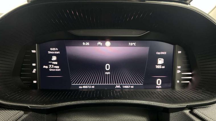 Advanced driver attention and drowsiness monitor, Bluetooth connection, Electromechanical power steering, Exterior temperature gauge, Service interval indicator, Traffic sign recognition, Virtual cockpit with 10.25" colour display, Wireless SmartLink for Apple CarPlay and Android Auto, 6 Speakers (4 in front and 2 in rear), Auxiliary socket for external MP3 player, DAB digital radio reception, Body coloured bumpers, Dimming rear view mirror with black frame, Door mirror integrated indicators, Front and rear electric windows, Front window wiper intermittent control, Headlight range control - Automatic, Ice scraper in fuel cap, LED daytime running lights with coming and leaving home feature, LED rear lights, Privacy glass, Rear LED fog light, Rear side wing doors, Rear window wiper with washing nozzles, Roof mounted spoiler, SKODA tailgate lettering in chrome, Third brake light, 2 reading lights in front and 2 reading lights in rear, 3 rear headrests, Backrest split and folding, Central console with removable cup holder and storage box, Chrome handbrake release button, Fabric upholstery, Front centre armrest, Gearshift knob/handle in leather, Grain satin black interior door handles, Hand brake lever handle in leather, Height adjustable front headrests, Height adjustable steering wheel, ISOFIX and TopTether anchorage points to the outer rear seats, ISOFIX and TopTether on the front passenger seat, Luggage compartment lighting, Manually adjustable lumbar support in front seats, Pollen filter, Rear seat bench unsplit, Single front passenger seat, Storm grey headlining, Sun visors with mirror and airbag label on passenger side, Textile floor mats, Ticket holder, Umbrella in drivers door, 3-point height adjustable front seats belts with pretensioner and force limiter, Automatic warning lights in case of crash, Driver and passengers airbag with switch off function, e-Call+, ESC including ABS, MSR, ASR, EDS, HBA and XDS, Front and rear seat belt warning, FRONT ASSIST (AEB City and AEB Inter Urban), Front side airbags, Head airbags, Hill hold control, One tone horn, Pedestrian protection, Three rear 3-points safety seat belts with pretensioner and force limiter including stop function for outer rear seat belts, Tyre pressure monitoring system, Anti-theft alarm system including immobiliser, interior monitoring, backup horn, and towing protection, Central locking with radio remote control, interior controls, SAFE function and 2 foldable keys, Colour Edition air vents, Grain satin black central console cover, Metallic grey upper decorative trim, Satin black door and side trim panel in front, Textile Kota grey lower decorative inserts, Anti-theft wheel bolts protection, Super-low rolling resistance tyres,