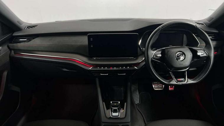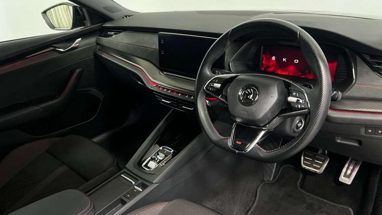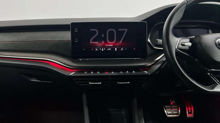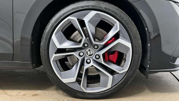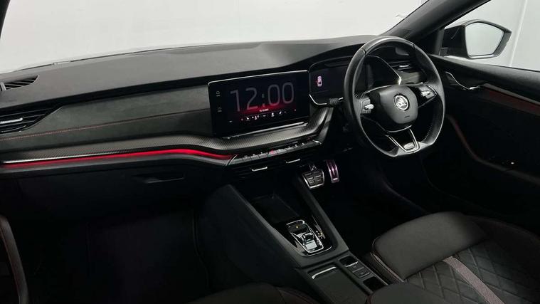 1x USB Type C port in rear view mirror (charging only), 2x USB Type C ports in rear of front centre armrest (charging only), Bluetooth system, Columbus satellite navigation with 10" touchscreen display, Driver fatigue sensor, eCall emergency system, Front and rear parking sensors with manoeuvre assist, Front assist system, Progressive dynamic steering, Speed limiter, Turn Assist, Virtual Cockpit - 10.25" digital display, Virtual pedal with electrically operated boot door (Rear LED lights (high functionality), dynamic indicators, Voice control system, Wireless SmartLink for Apple Car Play, Electronically controlled limited slip differential, Front and rear stabilizers, 2x USB Type C ports (for charging and data transfer), 8 Speakers, DAB Digital radio, Aero front windscreen wipers with intermittent function, Auto dimming rear view mirror, Body colour door handles, Chrome exhaust tailpipes, Door sills with vRS logo, Electric front and rear windows, Exterior gloss black sports styling including front grille, side strip, window surrounds, door mirror and badging, Full LED Matrix headlights with AFS, rear LED lights (high functionality) and dynamic indicators and cornering front fog lights, Headlight washers, Heated rear windscreen, High level third brake light, Ice scraper in fuel cap, LED daytime running lights, Rain and light sensors, Rear fog light on one side, Rear privacy glass, Rear side wing doors, vRS bumpers and lip spoiler, 3 rear headrests, 3 seat bench in 2nd row, 4 foldable roof handles, Aluminium pedals, Black headlining, Black microsuede padded dash panel with red contrast stitching, Chrome inner door handles, Front centre armrest, Front head restraints, Heated front seats, Illuminated glovebox, Leather trimmed gearshift lever, Luggage compartment lighting x1 light, Mechanical rear seat release, Parcel shelf - folding, Single front passenger seat, Sunglasses storage, Textile floor mat set, Three spoke leather sports multifunction steering wheel with paddles, Ticket holder, Umbrella in door panel, Unsplit rear bench seat and split folding backrest, LED interior light pack - Octavia, 3 point front/outer rear seatbelts+pre-tensioners, Alarm with interior monitoring, tilt sensor and back up horn, Automatic door unlocking in case of crash, Automatic fuel cut off in case of crash, Automatic warning lights in case of emergency braking, Curtain airbags and front side airbags, Driver and front passenger airbags, Drivers knee airbag, Electronic parking brake, ESC including ABS, EBV, MSR, ASR, EDS, HBA, DSR, Front and rear disc brakes, Front central airbag, Hill hold control, Hill start assist, ISOFIX on front passenger seat and outer rear seats, Manual rear child locks, Passenger airbag deactivate switch, Pro active services, Red brake calipers, Two tone horn, Tyre pressure monitor, Visual and acoustic seat belt reminder, Warning reflectors in front door, Door locks with immobiliser, Keyless entry and start/stop including rear doors, Remote central locking, Carbon optic decorative inserts, Gloss black air vent surrounds, 19" Altair anthracite alloy wheels,