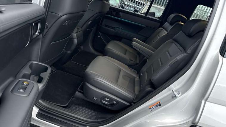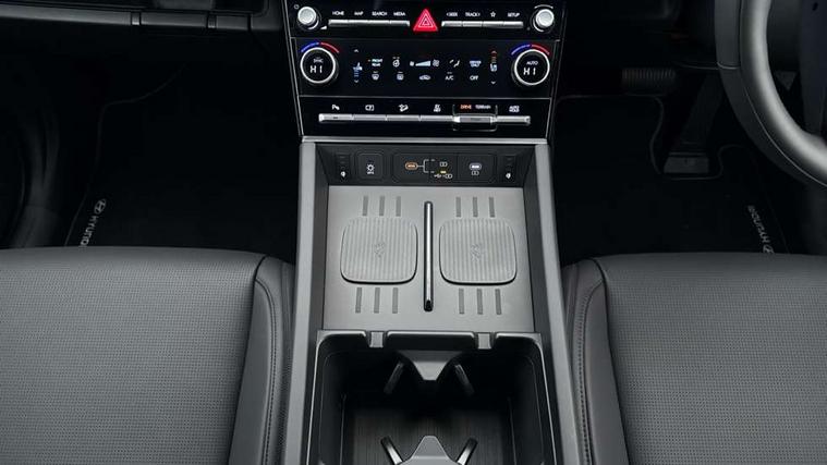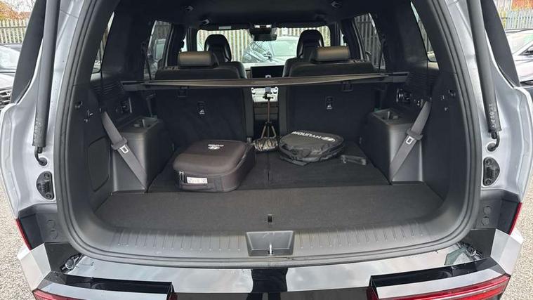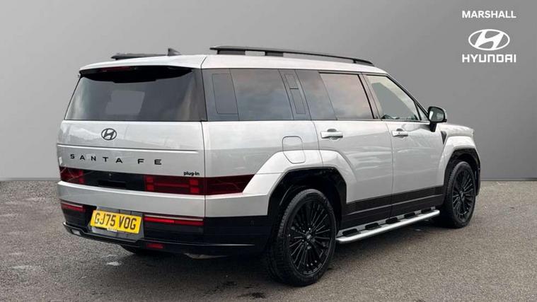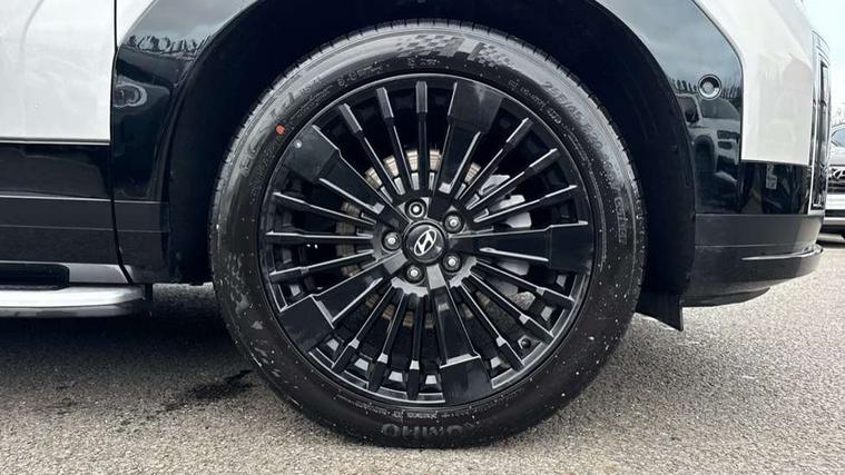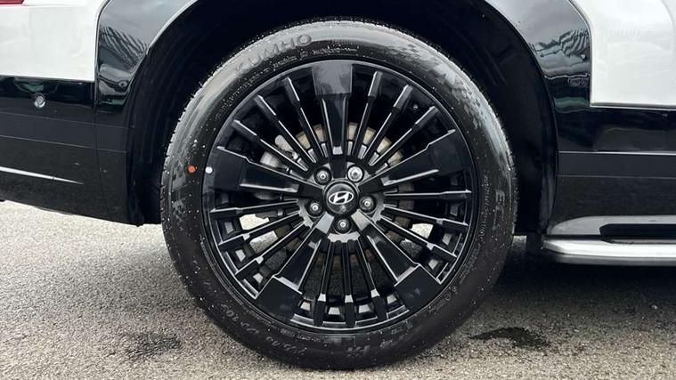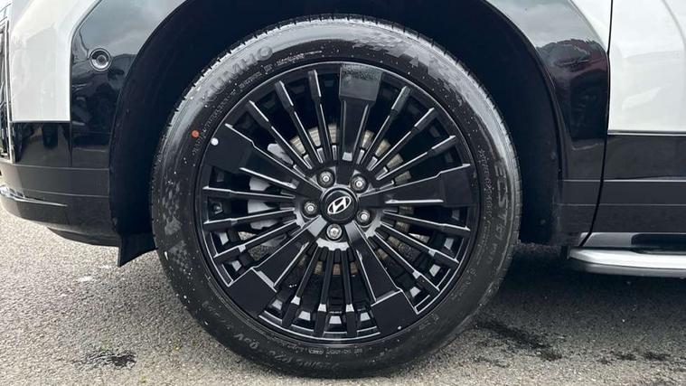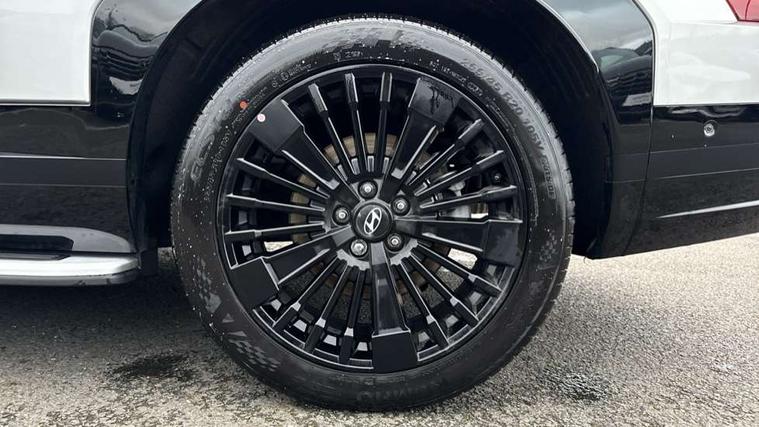 12.3" Drivers supervision instrument cluster with LCD display, 360 degree parking sensors, Blind spot collision avoidance assist (BCA), Blind spot view monitor (BVM), Bluelink and Wireless Apple Carplay/Android Auto, Bluetooth connectivity with voice recognition, Drive mode selector, Driver status monitor (DSM), Dual wireless phone charging pad, Emergency services call system, Forward collision avoidance assist (FCA 2.0), Head up Display, Highway drive assist 2 (HDA 2), Intelligent speed limit assist (ISLA), Lane departure warning system (LDW), Lane Follow Assist 2 (LFA 2), Lane keeping assist (LKA), Low washer fluid warning, Navigation based smart adaptive cruise control with stop and go, Over the air software updates (OTA), Parking Collision Avoidance Assist-Reverse (PCA-R), Power assisted steering, Remote smart parking assist, Safe exist assist (SEA), Smart electric tailgate with hand's free opening function, Surround view monitor, Self levelling suspension, Shift by Wire Gear Selector (SBW), 12.3" Touchscreen display with satellite navigation, 2nd Row USB C Ports x2 Charging, 3rd Row USB C Ports x2 Charging, Front USB C port 1 charging and 1 data/charging, Premium BOSE sound system with 12 speakers and subwoofer, Steering wheel audio, phone and cruise controls, Automatic headlights with dusk sensor, Automatic windscreen wipers with rain sensor, Black Styling (Skid plate, Fender upper garnish, Door side garnish, C/D pillars, Rear bumper moulding, DLO), Body colour bumpers, Digital centre mirror, Dynamic welcome light, Electric adjustable/heated/auto power folding door mirrors, Front and rear electric windows, Heated rear window, Hidden C pillar assist handle, Hidden rear wiper, High beam assist, LED daytime running lights, LED Headlights, LED indicator lights, LED indicators in door mirrors, LED positioning lights, LED taillights, LED third brake light, Manual rear door blinds, Rear side wing doors, Rear windows and tailgate privacy glass, Roof rails, Solar glass windscreen and front windows, Windscreen acoustic film, Windscreen auto defog function, 3rd row head restraints, Driver and front passenger premium relaxation seats, Dual zone climate control air conditioning, Electrically adjustable front seats with 2 way electric lumbar support, Front head restraints, Front seats with memory, Heated front seats, Heated rear seats, Height and reach electrically adjustable steering column, Leather wrapped heated steering wheel, Luggage cover, Luggage hooks, Luggage net, Multi colour LED ambient lighting, Nappa leather upholstery, Rear head restraints, Single front passenger seat, Sliding and reclining second row 2 captain seats, Split folding (50/50) third row seats, Sun Visors with driver and passenger illuminated vanity mirrors, Two front cup holders, UV-C Tray, Ventilated front seats, Trailer wiring pack - Santa Fe, 3 point seatbelts on all seats, Adjustable regenerative braking paddle shifters, Airbag - Front, front side, curtain and centre front airbags, Anti-lock brake system (ABS), Dynamic brake control, Electric parking brake with auto hold function, Electronic Stability Control (ESC), Hill start assist control (HAC), Manual child lock in rear doors, TSA (Trailer Stability Assist), Tyre pressure monitoring system, Immobiliser, Smart Key - Keyless entry with Power On/Off button, Black ink interior decals, 20" Black calligraphy alloy wheels, Tyre mobility kit,