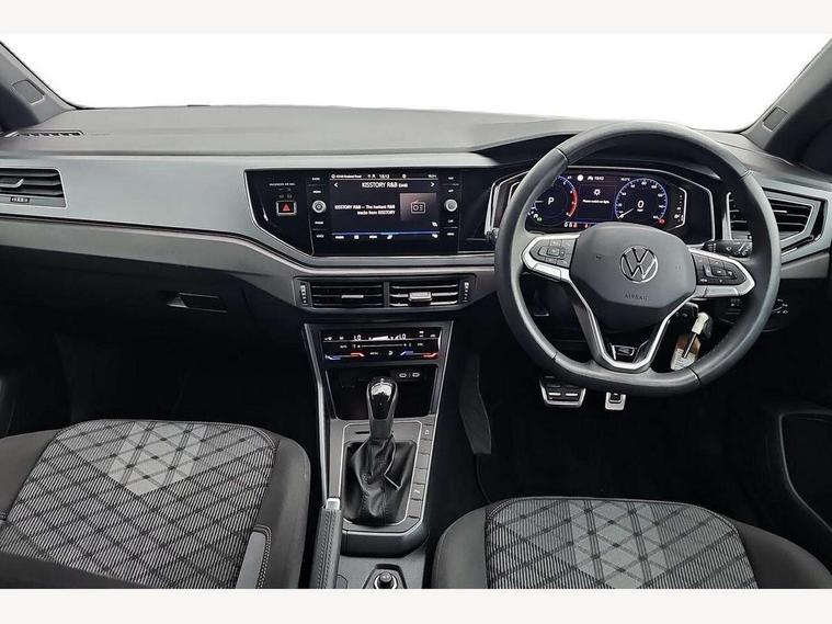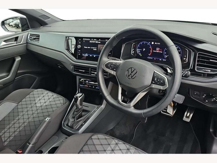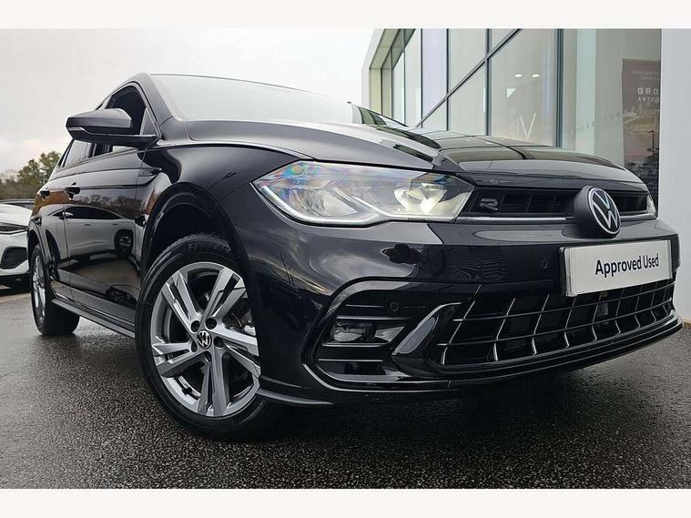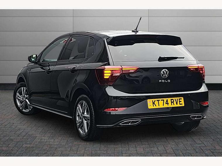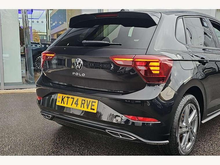 Adaptive cruise control with follow-to-stop and speed limiter, Advanced driver attention and drowsiness monitor, Bluetooth mobile phone interface, Digital Cockpit Pro with 10.25" Display, Dynamic road sign display, Emergency call service, Multifunction camera, Power assisted speed sensitive steering, Preparation for We connect and We connect plus, Speedo and rev counter, electronic odometer, trip, service interval display and fuel gauge, Standard rear axle, Travel Assist - Lane keeping system and traffic jam assist, Travel assist including emergency assist, Trip computer, Warning signal and warning light for front and rear seatbelts not fastened, Washer fluid level indicator, Wireless app connect, Front wheel drive, Rear shock absorpion, Start-stop system with battery regeneration (recuperation - energy recovery during braking), DAB Digital radio, Diversity antenna for FM reception, Front and rear 6 speakers, Body colour bumpers, Body colour door handles, Electric front windows, Front scuff plates with R-Line logo, Heat insulating glass windscreen, Power folding adjustable/heated exterior mirrors and front passenger exterior mirror lowering function, Rear electric windows, Rear fog light, Rear side wing doors, Rear windscreen washer and wiper with interval delay, Third brake light, 12V power socket in centre console, 2 USB-C ports in the front, 2 USB-C charging sockets on the center console in the rear, 3 rear head restraints, 60/40 split folding rear seat and rear seat bench not split, Air care climatronic air conditoning system with active combination filter and 2-zone temperature control, Black roof lining, Carpet mats, front and rear, Chrome plated radiator grille inserts, air vent surrounds and light switch surrounds, Door and side trim panel, Driver and front passenger seat height adjustment, Driver/passenger sunvisors with illuminated vanity mirrors, Front centre armrest, Front footwell illumination, Front seat backrest storage pockets, Front sports comfort seats, Handbrake lever handle in leather, Headliner in recycled material, Isofix child seat preparation easy-fit (for two outer rear seats, and front passenger seat) compatible with I-size, Karoso artvelours cloth upholstery, Leather trimmed gear knob, LED interior light with switch off delay and dimmer, 2 reading lights front and rear, Luggage compartment cover, Luggage compartment floor, Luggage compartment lighting, Lumbar adjustment for front seats, Single front passenger seat, Stainless steel pedals, Standard pedal cluster, Three spoke leather wrapped multifunction steering wheel with shifting paddles, Light and sight pack - Polo R-Line/Black Edition, 3 point height adj front seatbelts + pretensioners, 3x3 point rear seatbelts, ABS, Driver and front passenger airbag with front passenger airbag deactivation, Drivers and front passengers safety optimised head restraints, ESC (Electronic stability control) + EDL (Electronic Differntial lock) and ASR (Traction control), Extended and predictive pedestrian/ cyclist protection, Front curtain and side airbags with center airbag, Front/rear disc brakes, Hill hold control, Manual child lock in rear doors, Single tone horn, Tyre pressure loss indicator, Alarm with interior protection, Anti-theft alarm system with interior monitoring, backup horn, and towing protection, Anti-theft wheel bolts, Electronic engine immobiliser, Chrome applications on rotary light, mirror adjustment, window regulator switches, outlet with frame in black, Dark grey anodised matt decorative inserts in dash and front door panels, 16" Coventry alloy wheels, Low rolling resistance tyres,