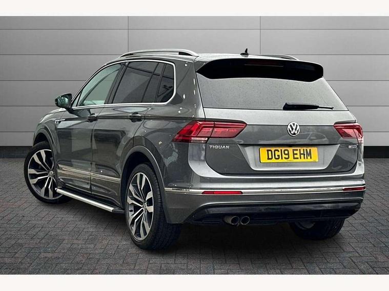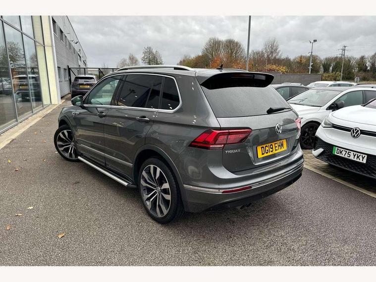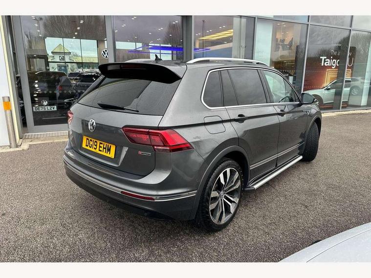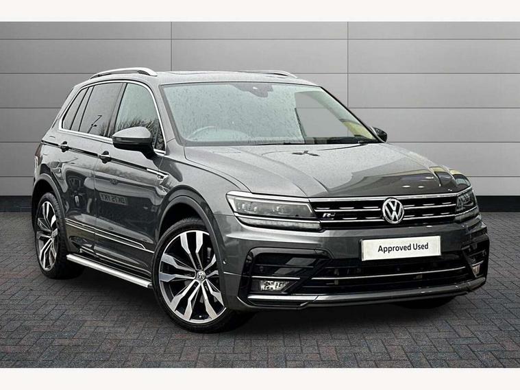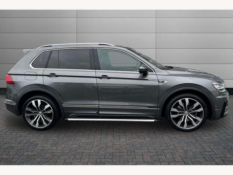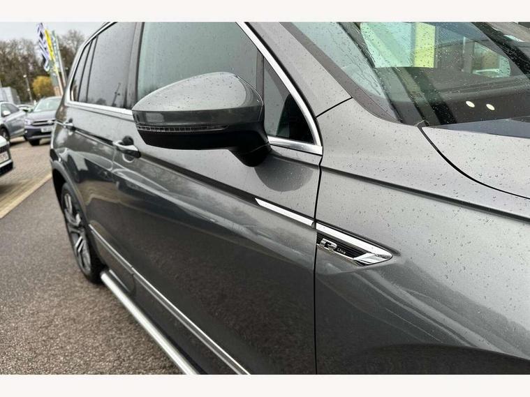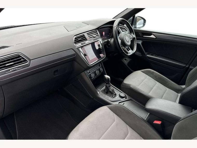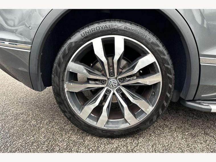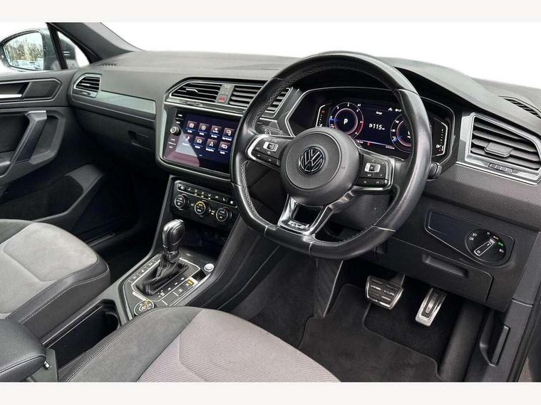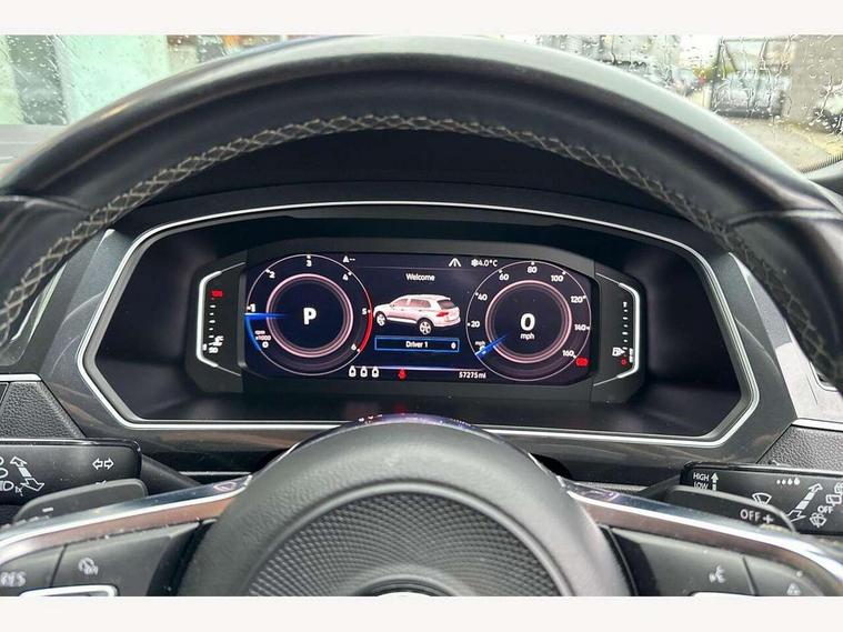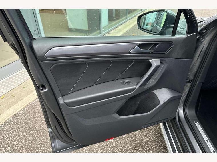 App-Connect, Active information display, Adaptive cruise control, Area view with park assist steering and front and rear parking sensors, Bluetooth phone integration system, Car-Net Security and Service, Coasting function, Distance control assist, Drive mode selector, Driver profile selection, Fatigue detection system, Front assist, radar sensor controlled distance monitor, city emergency braking + predictive pedestrian protection, Fully electric tailgate + keyless entry and start, Instrument cluster, Lane assist, Low washer fluid warning light, Multifunction colour display, Outside temperature display, Progressive power assisted steering, Remote tailgate release, Service interval indicator, Speed limiter, Start/Stop function, Warning lights, Diesel particulate filter, Misfuel prevention device for diesel engine, XDS electronic differential lock, 2x USB sockets in front, 4 X 20 watt output, DAB Digital radio, MP3 compatible single CD player, SD card slot, Simultaneous pairing of 2 compatible mobile devices, SMS functionality - read, compose and send SMS messages using touch-screen display, Title and cover art display, 3D effect cherry red LED rear tail lights, Auto dimming interior mirror, Automatic activation of hazard warning lights, Body colour door handles, Body colour door mirrors, Body colour rear spoiler, Body colour side skirt, Body coloured bumpers, Chrome side window surrounds, Chrome trimmed radiator grille, Coming/leaving home lighting function, Dusk sensor + auto driving lights, Elec heated + adjust door mirrors, Electric folding door mirrors, Electric panoramic sunroof with sunblind, Front air intake with chrome strip, Front and rear electric windows, Halogen clear headlights with integrated indicators and range adjustable, Heated rear window, Heated windscreen washer jets, High level 3rd brake light, LED headlights with dynamic light assist daytime running lights and cornering front fog lights, LED rear number plate lights, Piano black rear diffuser, R Line body kit, R Line side sills, Rain sensor windscreen wipers, Rear windscreen washer and wiper with interval delay, Side skirts and rear bumper with chrome insert, Silver roof rails, Silver under body guard, Tinted windows (B pillar backwards), Trailer Stability Programme, Windscreen wipers/ intermittent wipe + 4 position delay, 12V Accessory socket in centre console, 3 rear headrests, 3 zone climate control, 4 load lashing points, 40:20:40 split folding rear seats, Bag hook in luggage compartment, Black headlining, Driver + front passenger lumbar support, Foldable passenger seatback, Front + rear carpet mats, Front centre armrest with 12v socket, Front centre armrest with storage + rear 2 air vents + cupholders, Front seat back storage pockets, Front seatback folding tables, Height/reach adjust steering wheel, Illuminated driver/passenger vanity mirrors, Illuminated scuff plates, Instrument lighting white adjustable panel illumination, Interior light with delay, Isofix Preparation 2 Rear child seats, Leather gear knob, Leather multifunction steering wheel with paddle shift, Load through provision with 2 cupholders when folded, Lockable cooled glovebox, Luggage compartment lighting, Luggage compartment side storage, Map pockets on front seats, Passenger seat height adjuster, Rear cupholders, Removable luggage cover, Sliding/reclining rear seats, Stainless steel pedals, Storage compartment in driver's door, Storage compartment in passenger's door, Storage compartment in rear doors, Storage tray on dashboard, Sunglasses storage, Unique R Line door sill protectors, Variable boot floor, Ambient lighting pack - Tiguan, 3 rear 3 point seatbelts, ABS+EBD+Brake assist, Active bonnet, Active pedestrian safety system, Curtain airbags, Driver/Front Passenger airbags, Driver/Passenger whiplash optimised head restraints, Drivers knee airbag, DTC - Drag torque control, Electronic parking brake with auto hold, ESP with EDL + ASR, First aid kit, Front side airbags, Front ventilated disc brakes and rear disc brakes, Head airbag system, Height adjustable front 3 point seatbelts + pretensioners, Hill hold control, Passenger airbag deactivate switch, Passenger knee airbag, Pre crash system, Rear side airbags, Rigid safety cell with front and rear crumple zones, Seatbelt warning lamp and buzzer, Two tone horn, Warning triangle, Alarm with interior protection, Electronic engine immobiliser, Remote central locking with 2 remote folding keys, Aluminium decorative inserts, Chrome door trim inserts, 20" Suzuka alloy wheels + anti theft wheel bolts, Steel space saver spare wheel,