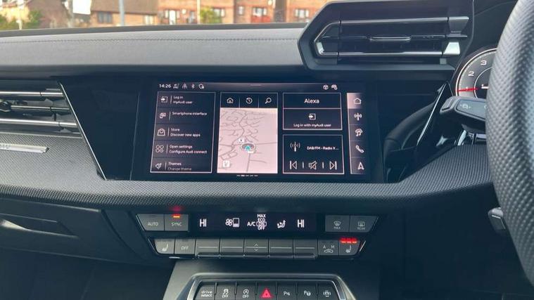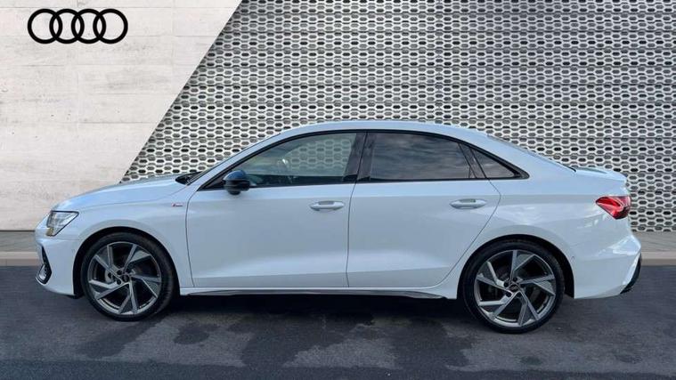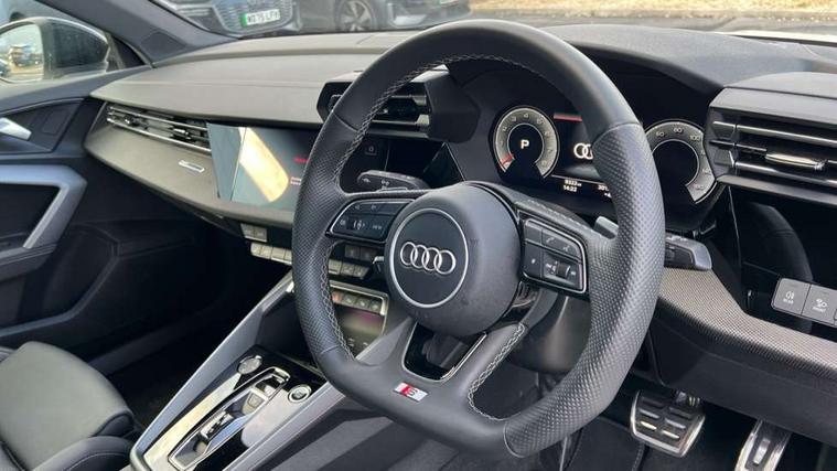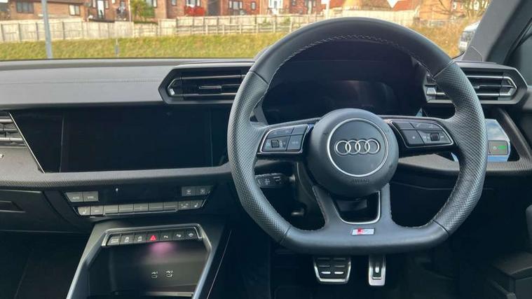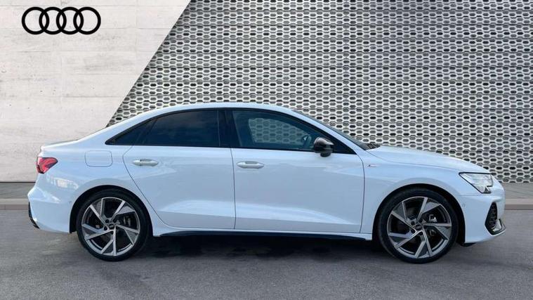 Adjustable speed limiter, Audi drive select, Audi smartphone interface with app store includes wireless Apple carplay, Android auto and Amazon alexa integration, Audi virtual cockpit plus - 12.3" full HD resolution dynamic digital instrument cluster, Automatic start/stop system with recuperation, Bluetooth interface, Camera based traffic sign recognition, Collision avoidance assistant, Cruise control, Distraction and Fatigue warning, e-Call (emergency call), Electromechanical power speed sensitive steering, Lane departure warning system, MMI Navigation Plus with high resolution 10.1" colour touch screen display, Park Assist with parking system Plus, Service indicator, Trip computer, Voice control system with natural language interaction, Sports suspension, Audi Phonebox light with wireless charging, Audi sound system - 10 loudspeakers including centre loudspeaker and subwoofer, DAB Digital radio, USB ports with charging function in the rear, Acoustic glass windscreen, Anthracite grey Audi rings (front and rear), Audi beam uses LEDs to project the Audi logo onto the ground as you exit your A3, Auto dimming frameless rear view mirror, Black accents front and rear bumpers, Black accents in the area of the Audi single frame grille, Black accents window trims strips, Electrically adjustable/heated/folding/auto dimming door mirrors with integrated LED indications + kerb view function for passenger side, Exterior model badging, Front electric windows, Heat insulating glass windscreen, Illuminated door sills with aluminium inserts at the front with S logo, LED 3rd brake light, LED daytime running lights, LED headlights with LED rear lights and dynamic rear indicators, Light and rain sensors, Privacy glass - dark tinted rear window, rear door and side windows, Rear boot, Rear electric windows, Rear side wing doors, 12V socket and storage compartment in front centre console, 3 seat bench in 2nd row, 3 spoke flat bottomed leather multifunction sport steering wheel with gear shift paddles, 3-zone deluxe automatic air conditioning, 4 way electrically adjustable lumbar support for driver and front passenger, 40/20/40 split folding rear seat bench, Black cloth headlining, Front and rear centre armrest in artificial leather, Front and rear centre armrest in artificial leather with contrasting stitching on armrests and instrument panel, Front and rear headrests, Front/rear floor mats, Heated front seats, Height and reach adjustable steering wheel, Manual boot compartment lid, Manually adjustable front seats, Rear cup holders, S badging on the steering wheel, Seat side bolsters, Single front passenger seat, Stainless steel pedals and front footrest in black, Twin leather upholstery with front sports seats S embossed logo, Aluminium interior elements pack - A3, Multi-coloured LED interior lighting package - A3 Black Edition, 3x3 point rear seat belts, Driver and front passenger airbag with passenger airbag deactivation, Electronic Stabilisation Control (ESC) including ABS, ASR and EDL, First aid kit with warning triangle and 2 safety vests, Front side airbags with head airbags and interaction airbag, Hill hold assist, Pre-sense front with pedestrian and cyclist detection, Seatbelt monitoring, Tyre pressure loss indicator, Anti theft alarm, Anti-theft wheel bolts, Electronically operated child locks, Immobiliser, Remote central locking with safelock, Inlays in black Impressum woven textile,