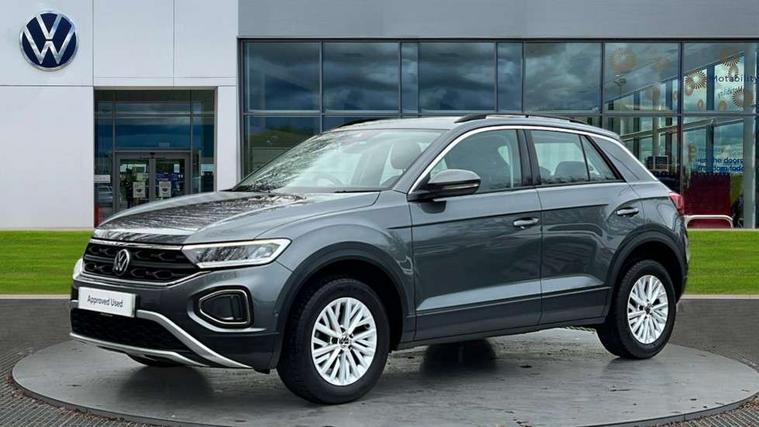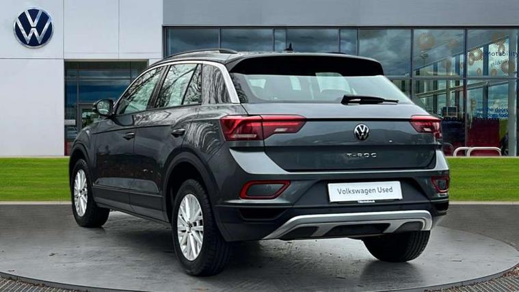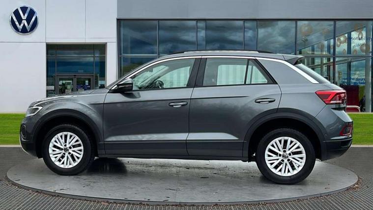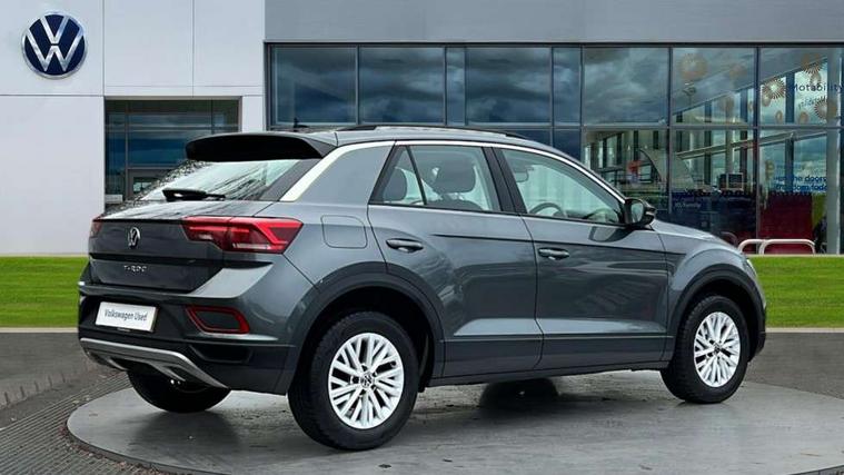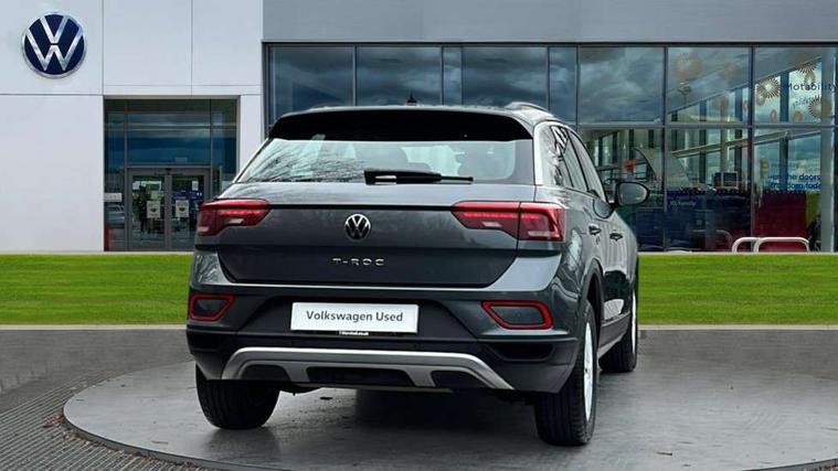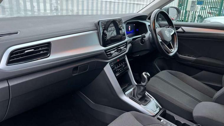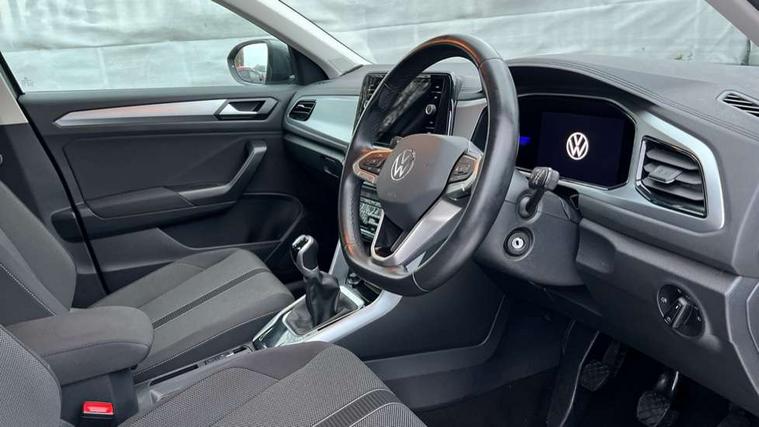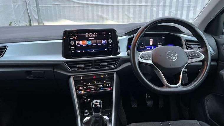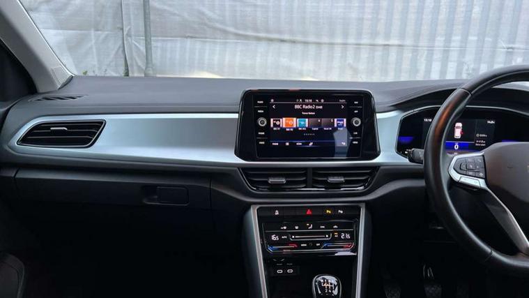 Bluetooth mobile phone interface, Driver alert system with fatigue detection, Driver tips and journey analysis, Emergency call service, Lane keeping system Lane Assist, Modified key software - reduce switch off time for key status change to Long no motion, Online services, Park assist including front and rear parking sensors, Power assisted speed sensitive steering, Service interval indicator, Tailgate/trunk lid release from outside, Think blue trainer driver tips and journey analysis, Warning sound and light for front seatbelts unfastened, Wireless app connect, Battery regeneration during braking, Front shock absorption, Rear shock absorption chassis with increased ride height, Start/stop function with battery regeneration, DAB Digital radio, Diversity antenna for FM reception, Front and rear 6 speakers, Music playback - MP3, WMA and AAC files, Premium USB cable in choice of either Apple or Android smartphone compatibility, SD card slot, Simultaneous pairing of 2 compatible mobile devices, Title and cover art display, We Connect and We Connect Plus functionality, 3rd brake light, Auto dimming interior rear view mirror, Automatic hazard lights activation under emergency braking, Automatic headlight control with LED separate daytime running lights with coming/leaving home function, Black roof rails, Body coloured bumpers and radiator grille with chrome trim and front fog lamps with chrome bezel, Body coloured exterior mirror housings and door handles, Extended roof spoiler, Exterior mirrors aspherical on driver side, convex on front passenger side, External USB type C socket and charging sockets, Front windscreen wiper with intermittent wipe and 4 position delay, Heated rear window, LED Headlights, LED rear combination lamps, LED rear number plate lights, LED tail lamp rear comination lamps, Power windows with comfort operation and circuit breaker, Rain sensor, Rear exhaust tailpipe, Rear fog light on one side and reversing lights on both sides, Rear side wing doors, Rear wash/wipe with intermittent wipe setting, Remote electrically foldable door mirrors, puddle lights and reverse activated passenger's door mirror, 12V power socket in centre console, 3 rear head restraints, 3 seat bench in 2nd row, 4 load lashing points in luggage compartment, Air care climatronic air conditoning system with active combination filter and 2-zone temperature control, Ambient lighting with mirror logo projection, Cloth upholstery, Door and side trim panel in cloth, Drawer under drivers seat, Driver/front passenger seat height adjustment, Front centre armrest, Front comfort sports seats, Front cupholders x 2, Front reading light, Instrument lighting, white adjustable panel illumination, Interior light delay, Isofix child seat preparation, Leather gearshift handle, Load-through provision with cup holder when folded down ('Unsplit rear seat bench, split folding backrest, with centre armrest), Luggage compartment lighting, Lumbar support for driver's and front passengers seat, Non-folding front passenger seat backrest, Single front passenger seat, Storage compartment in left and right luggage area, Storage compartment in rear doors, Storage compartments in driver and front passenger doors, Sunvisors with illuminated vanity mirrors, Variable boot floor, height adjustable and removable, Driver assistance pack without proactive passenger protection - T-Roc, 3 point height adj front seatbelts + pretensioners, 3 point seatbelts in outer rear with ECE label, ABS, Child locks on rear doors, Driver and front passenger airbag with front passenger airbag deactivation, Driver and front passenger safety-optimised head restraints, Drivers seatbelt reminder, Electronic parking brake, Electronic Stability Control (ESC) inc EDL (Electronic Differential Lock) and ASR (Traction Control), Front and rear passengers curtain airbag system including front side airbags, Front assist with city emergency braking and pedestrian monitoring, Front disc brakes, Front seat side impact airbags, Hill start assist, Predictive pedestrian protection, Rear disc brakes, Single tone horn, Tyre pressure loss indicator, Volkswagen roadside assistance, Alarm with interior protection, Anti-theft alarm system with interior monitoring, backup horn, and towing protection, Remote central locking with SAFELOCK, radio remote control with 2 remote control folding keys, Pewter matt decorative inserts for intrument panel, centre console and door panels at the front, Trims for alloy wheels,