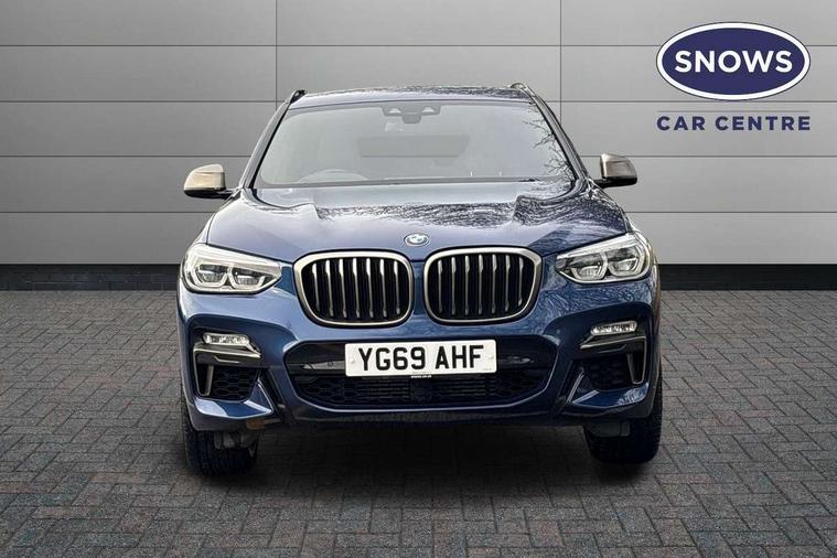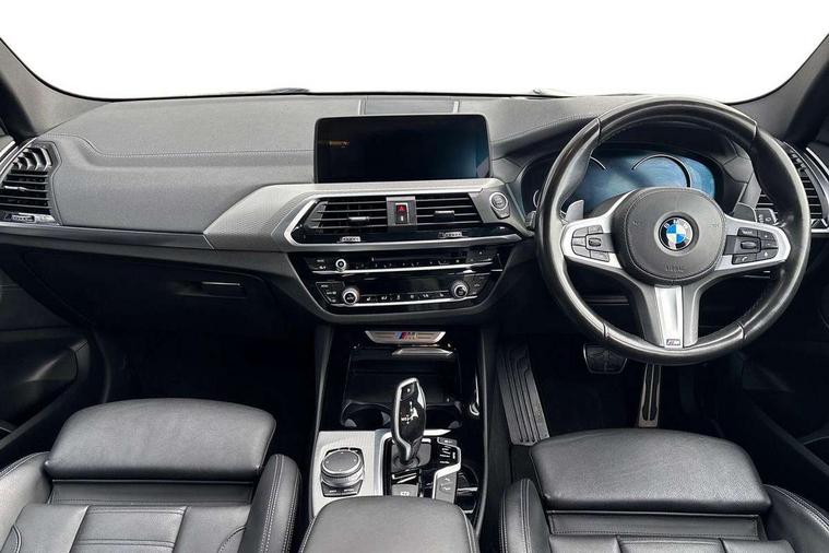 Active Guard incl speed limiting and lane departure functions with auto steering, and front collision warning with brake intervention, Attentiveness assist, Automatic tailgate operation, BMW Live Cockpit Professional sat nav system including 10.25" high resolution display and Intelligent Voice Assistant, BMW Online services, BMW Teleservices, Brake pad wear indicator in front and rear, Check Control warning system for monitoring of lights and door/luggage compartment open warning, Control display - 6.5" colour display screen, Front/rear Parking distance control, iDrive Controller with 8 favourite buttons, Lights on warning by audio warning signal when ignition is switched off, Navigation system - BMW Professional multimedia with Hard disc drive (HDD) and 10.25" touch display, Oil sensor for level and grade, warning by check control system, On board computer - average speed+fuel consumption, service interval, clock/date, odometer/trip meter, outside temperature display and ice warning, Optimum shift indicator, Personal Profile - automatic lock when driving away selectable, Real time traffic information, Semi digital instrument cluster, Stop/start system, Variable sports power steering, Diesel particulate filter, Incorrect fuelling protection, M Sport differential, Multi-link rear suspension, Performance Control, Sport automatic transmission with gearshift paddles, Auxiliary socket for external MP3 player, BMW professional radio/CD/MP3, DAB Digital radio, Acoustic glazing, Black finish on B pillars, BMW icon adaptive LED headlights, Body colour door handles, Body colour roof mouldings, Body coloured bumpers, Cerium grey air breather, Cerium grey air inlets, Cerium grey frame and kidney grille with high gloss black vertical slats, Direction indicator, side repeaters, integrated in exterior mirrors, Dual black chrome quadrilateral exhaust tips, Dynamic brake lights, Electric adjustable heated door mirrors, Exterior air inlets, mirror caps and air breather in cerium grey, Exterior mirrors - electrically folding with anti-dazzle, Fingertip control / anti-trap function on electric window, Follow me home headlights, Front and rear bumper system with replaceable deformation elements, Front and rear electric windows, Green tinted heat insulating glass, Heated windscreen washer jets, Height adjustable headlamps, High beam assistant, High gloss black door sill finishers, High gloss black shadow line roof rails, High gloss shadowline exterior trim in decorative moulding side frame/recess cover/guide rail/B, C pillars/mirror frame and triangle with mirror base, High level 3rd brake light incorporating LED Technology, Interior rear view electrochromatic mirror with automatic anti dazzle function, LED daytime running lights, corona ring style, LED front fog lights, LED Indicators, LED tail lights, Lightweight engineering, M aerodynamic bodystyling, Model designation, Rain sensor including auto headlights activation, Rear wiper, Shark fin antenna, Visible VIN plate, Welcome lighting, Windscreen wipers with adjustable interval, 12V socket in centre console and luggage area, 3 rear headrests, 3 zone automatic air conditioning, 4 lashing points to secure luggage, Ambient lighting, Anthracite headlining, Anthracite Velour floor mats, Driver/passenger sunvisors with ticket holders + illuminated vanity mirrors, Electric adjustable seats with memory function, Foldable boot floor with storage compartment, Four grab handles integrated in roof lining, Front and rear bottle holders integrated into door trim storage compartments, Front and rear side armrests integrated into door trim, Front centre armrest with storage compartment, Front footwell lights, Front sports seats, Front/rear courtesy lights with soft on/off dimming, Front/rear reading lights, Height adjustable front/rear head restraints, Isofix rear child seat preparation, Leather gear knob, Luggage area underfloor compartment, Luggage compartment lighting, M Sport multifunction leather steering wheel, Parcel shelf removeable and storable under boot floor, Reach and rake adjustable steering column, Rear centre armrest with 2 cupholders, Rear seat centre armrest with two cupholders, Removable / retractable luggage cover, Slope adjustable rear seats, Storage compartment in rear centre console and front/rear door trims, Through loading system with 40/20/40 split folding rear seat, Toolkit located in luggage compartment, Two front cupholders with removable oddments tray/lid, Vernasca leather upholstery, Connected pack professional - X3, ABS/EBD, ADB - Automatic Differential Brake, Automatic Stability Control (ASC), Battery safety cut-off, BMW emergency call, Brake assist, Brake assist function, Brake drying, Brake energy regeneration, Braking pre-tensioning, Child locks on rear doors, Cornering brake control (CBC), Crash Sensor - activation of central locking release, hazard warning light and interior lighting, Deactivation of fuel pump in the event of a crash, Driver and front passenger front and side airbags with passenger deactivation and ITS front and rear head airbags, DSC+, Dynamic brake control, Dynamic Traction Control - DTC, Electromechanical parking brake, Front seat belts warning, Hill descent control, Hill start assist, M Sport braking system, Seatbelt security check for front seats, Side impact protection, Three point seatbelts to all seats with front and outer rear pyrotechnic belt tensioners and seat belt force limiters, Two tone horn, Tyre pressure monitoring system, Ventilated front and rear disc brakes, Warning triangle and first aid kit, Central locking switch for all doors, fuel filler cap and luggage compartment, Electronic engine immobiliser, Locking wheel nuts, Remote control including two integrated key - one button for open/close all lockable content, windows and separate button for open luggage compartment, Remote control Thatcham category 1 alarm, Start/stop button with Comfort Go keyless engine start and auto Start/stop deactivation 