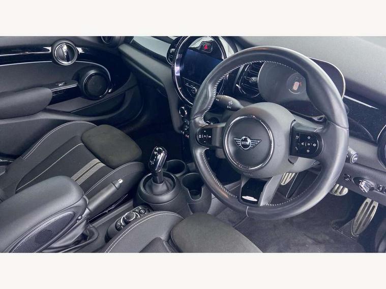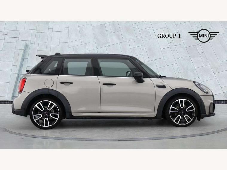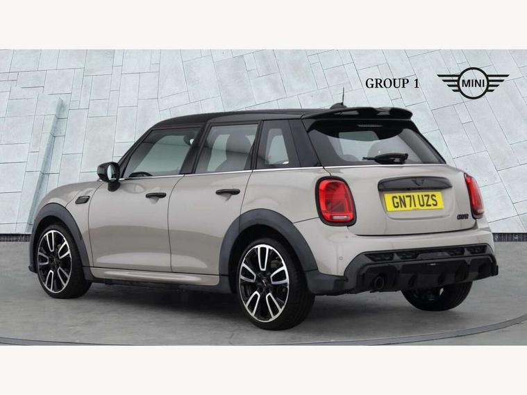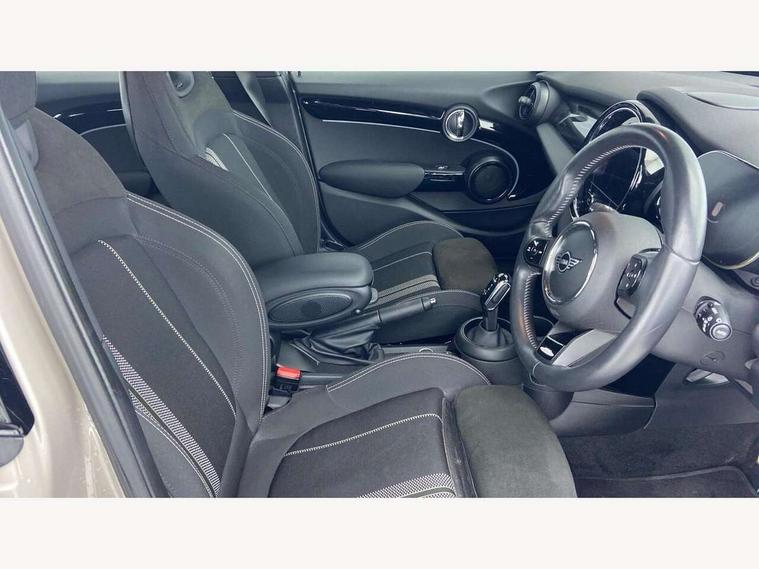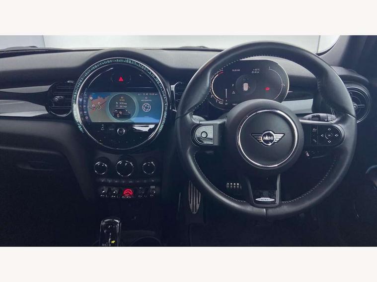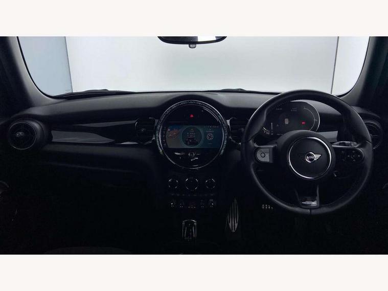 Automatic start/stop function with brake energy recuperation, Compatible mobile phone bluetooth with audio streaming, Cruise control with brake assist, Electro-mechanical speed dependant steering assistance, Flexible car sharing preparation, Instrument cluster, MINI Driving Modes - centre toggle switch to control driving setting (sport, mid and green), Mini E-call, MINI TeleServices, On board computer, Rear park distance control, Service interval indicator, Adaptive suspension, Double Vanos system, Fully variable valve control, Gear change indicator display, High precision injection, Performance Control, Steptronic transmission with double clutch, 6 speakers in front door trims and underneath front seats, 8.8" touchscreen with LED ring, FM tuner and DAB digital radio, Automatic headlight activation switch, Body colour fuel filler cap, Chrome border high gloss black slats radiator grille, Dynamic brake lights, Electric front+rear windows, Exhaust tailpipe on left with chrome finisher, Heated rear window, Heated windscreen washer jets, JCW Aerodynamic kit - Front and rear bumpers with sporty JCW styling and part-painted side sills with MINI John Cooper Works door sill finishers, John Cooper Works rear spoiler, LED headlight with closed ring and daytime driving lights, Metal door sill strips with MINI imprint, Model logo Cooper on right of tailgate, Rain sensor window wipers, Rear fog lights, Rear LED lights with union jack design, Rear window wiper, Side scuttle panel with integrated indicator, Sun/heat protection glass, White indicator lenses, 12V Accessory socket in centre console, 4 lashing eyes in luggage compartment, 60/40 split folding rear seat, Anthracite headliner including grab handles and clothes hooks, Carbon black colour line - Knee roll and door armrest, Chrome interior highlights, Cupholders, Front and rear isofix with front passenger airbag deactivation, Glove compartment, Height and length steering column adjustment, Interior lighting with 12 different colours across the dashboard, underneath door bezel with illuminated laser-engraved design on central display, JCW Sport seats with integrated headrests, adjustable thigh support and John Cooper Works logo, Leatherette gearshift lever and handbrake gaiters, LED reading lights, vanity mirror lights, front foot well light and spotlight on front seats, Manual air conditioning, Mechanical seat adjustment - forward/back & backrest for front seats and driver seat height adjust, Multifunction steering wheel, Storage compartments in doors, Sunvisors with vanity mirrors, Velour floor mats, Walknappa leather steering wheel with grey seam and John Cooper Works badge on Piano Black lower steering wheel spoke, Piano black exterior pack - Mini Hatchback Cooper, 3 point seatbelts on all five seats, 6 Airbags - front, side, head and seat belt tensioners, Anti-lock braking system (ABS), DSC - Dynamic Stability Control, Front and rear disc brakes, Hill start assist, Single tone fanfare horn, Tyre pressure monitoring system, Alarm system with tilt sensor, monitoring doors, bonnet interior and tailgate, Electronic vehicle immobiliser, Start/stop toggle with keyless go, Piano black interior trim, Tool kit,