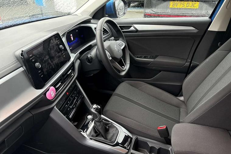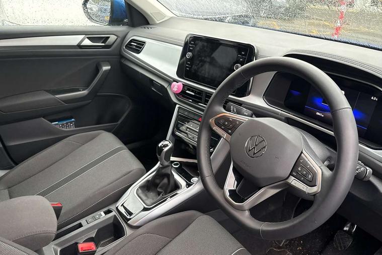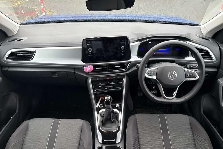 Advanced driver attention and drowsiness monitor, Dynamic road sign display, Emergency call service, Lane keeping system Lane Assist, Mobile phone interface, Modified key software - reduce switch off time for key status change to Long no motion, Online services, Park assist including front and rear parking sensors, Power assisted speed sensitive steering, Rear view camera, Service interval indicator, Tailgate/trunk lid release from outside, Think blue trainer driver tips and journey analysis, Warning sound and light for front seatbelts unfastened, Wireless app connect, Battery regeneration during braking, Front shock absorption, Rear shock absorption chassis with increased ride height, Start/stop function with battery regeneration, DAB Digital radio, Diversity antenna for FM reception, Music playback - MP3, WMA and AAC files, Premium USB cable in choice of either Apple or Android smartphone compatibility, SD card slot, Simultaneous pairing of 2 compatible mobile devices, Title and cover art display, We Connect and We Connect Plus functionality, Auto dimming interior rear view mirror, Automatic hazard lights activation under emergency braking, Automatic headlight control with LED separate daytime running lights with coming/leaving home function, Black roof rails, Body coloured bumpers and radiator grille with chrome trim and front fog lamps with chrome bezel, Body coloured exterior mirror housings and door handles, Electrically adjustable and heated door mirrors, Extended roof spoiler, Exterior mirrors aspherical on driver side, convex on front passenger side, External USB type C socket and charging sockets, Front windscreen wiper with intermittent wipe and 4 position delay, Heated rear window, LED 3rd brake light, LED rear combination lamps, LED rear number plate lights, Power windows with comfort operation and circuit breaker, Privacy glass for rear side windows and rear window, Rain sensor, Rear exhaust tailpipe, Rear fog light on one side and reversing lights on both sides, Rear side wing doors, Rear wash/wipe with intermittent wipe setting, Remote electrically foldable door mirrors, puddle lights and reverse activated passenger's door mirror, 12V power socket in centre console, 3 rear head restraints, 3 seat bench in 2nd row, 4 load lashing points in luggage compartment, Air care climatronic air conditoning system with active combination filter and 2-zone temperature control, Black stitching for floor mats, Ceramique roof liner, Cloth upholstery, Door and side trim panel in cloth, Drawer under drivers seat, Driver/front passenger seat height adjustment, Front centre armrest, Front comfort sports seats, Front cupholders x 2, Front reading light, Front seat back storage pockets, Glove compartment door with light, Instrument lighting, white adjustable panel illumination, Interior ambient lighting and surround lighting, Interior light delay, Isofix child seat preparation, Leather gearshift handle, Load-through provision with cup holder when folded down ('Unsplit rear seat bench, split folding backrest, with centre armrest), Luggage compartment lighting, Lumbar support for driver's and front passengers seat, Non-folding front passenger seat backrest, Single front passenger seat, Storage compartment in left and right luggage area, Storage compartment in rear doors, Storage compartments in driver and front passenger doors, Sunvisors with illuminated vanity mirrors, Variable boot floor, height adjustable and removable, Driver assistance pack without proactive passenger protection - T-Roc Life/Match, 3 point height adj front seatbelts + pretensioners, 3 point seatbelts in outer rear with ECE label, ABS, Child locks on rear doors, City emergency braking and pedestrian monitoring, Driver and front passenger airbag with front passenger airbag deactivation, Driver and front passenger safety-optimised head restraints, Drivers seatbelt reminder, Electronic parking brake, Electronic Stability Control (ESC) inc EDL (Electronic Differential Lock) and ASR (Traction Control), Front and rear passengers curtain airbag system including front side airbags, Front disc brakes, Hill start assist, Predictive pedestrian protection, Rear disc brakes, Two tone horn, Tyre pressure loss indicator, Volkswagen roadside assistance, Alarm with interior protection, Keyless locking and starting system keyless access with safelock, Pewter matt decorative inserts for intrument panel, centre console and door panels at the front, Trims for alloy wheels,