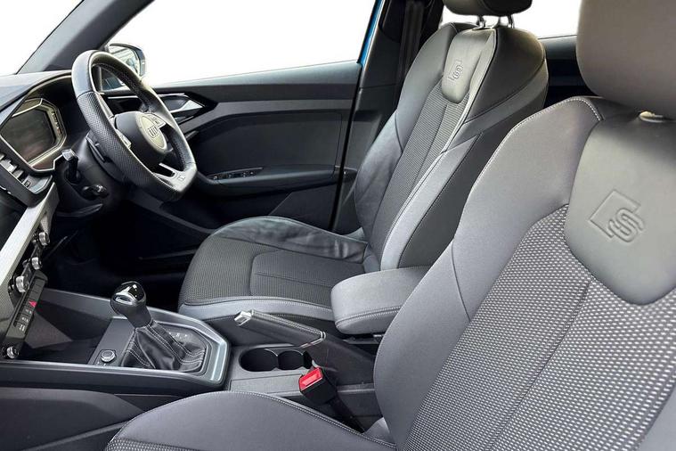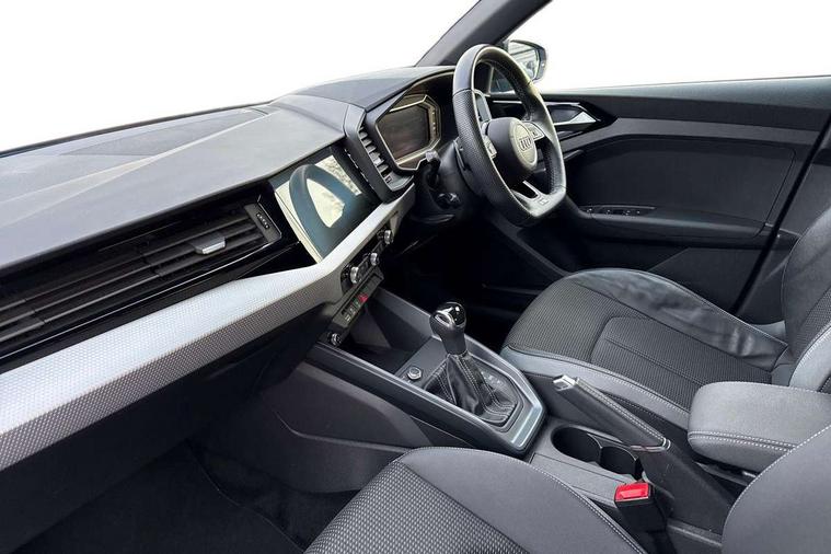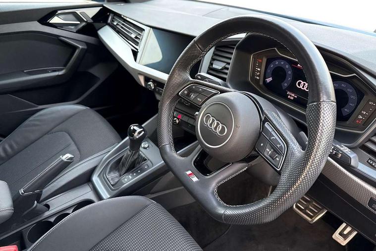 10.25" Digital instrument cluster display classis style instrument dials + speed, odometer, time, outside temperature, telephone menu + fuel level warning, Audi connect safety emergency and service including E-call, Audi drive select - power steering assistance + engine + gear shift 3 preset modes (auto, dynamic, efficiency and an Individual mode), Audi smartphone interface with connect compatible smartphone via USB directly MMI display + Nav, music, third party apps controlled via MMI controller, Automatic start/stop system, Bluetooth interface, Cruise control, Driver's information system, Electromechanical power steering, Lane departure warning system, Service interval indicator, Speed limiter, Voice control system, Washer fluid level indicator, Sports suspension, 1 x SDXC card reader, 2 x USB type C connection points, DAB Digital radio, MMI radio plus with 8.8" colour MMI display screen and MMI touch, Auto dimming rear view mirror, Black door mirrors, Black side skirts, Body coloured bumpers, Door sill trims with aluminium inlays and logo, Electric front and rear windows, Electrically adjustable, heated, folding door mirrors with integrated LED side indicator, Front side air inlets in grained matt black and C frame in titanium black, Heat insulating glass windscreen and side windows, Heated rear windscreen, LED headlights with LED rear lights + dynamic rear indicators + headlight adjustment and high beam, turning light + LED daytime running lights, Radiator protective grille frame in matt aluminium silver, Rain and light sensors, Rear diffuser strip in matt titanium black, Rear fog lights, Rear wiper, Side front spoiler lips in grained matt black, 12V socket in centre console with two cup holders, 3 rear seats with headrests, 3 spoke flat bottomed multi-function plus leather steering wheel with S badging, grips in preforated leather, contrast stitching and paddle shift, 40:60 Split folding rear seat or folded fully, Black cloth headlining, Driver and passenger seat with manual height adjust with forward and backwards adjustment, Front and rear black floor mats with contrast stitching in fine silver, Front head restraints, Height and reach adjustable steering wheel, ISOFIX child seat mounting for front passenger and outer rear seats including top tether attachment point of outer rear seats, Leather gear knob with aluminium trim, Luggage compartment light with front and rear reading lights, Manually adjustable lumbar support in front seats, Stainless steel pedals, Black styling pack - A1 Sportback Black Edition, LED interior lighting pack - A1, Luggage compartment pack - A1, 3x3 point rear seatbelts, Audi pre-sense front with pedestrain and cyclist recognition, Brake assist function, Driver and front passenger airbag with front side and head airbags, Electronic Stability Control including ABS, EBD, ASR and EDL, Front passenger airbag deactivation switch, Hill hold assist, Seatbelt height adjustment for front seats, Seatbelt monitoring, Tyre pressure warning light, Warning triangle and first aid kit, Anti theft alarm, Anti theft wheel bolts and loose wheel warning, Immobiliser, Remote central locking with 2 foldaway keys, Aluminium trim for control switches, air vents and digital instrument cluster, Silver grey inlays polygon structure in diamond paint finish, Structured grey accent areas including air vents, door handle recesses and centre console in quartz paint finish, 18" 7 spoke rotor design alloy wheels in gloss anthracite black, diamond cut finish,