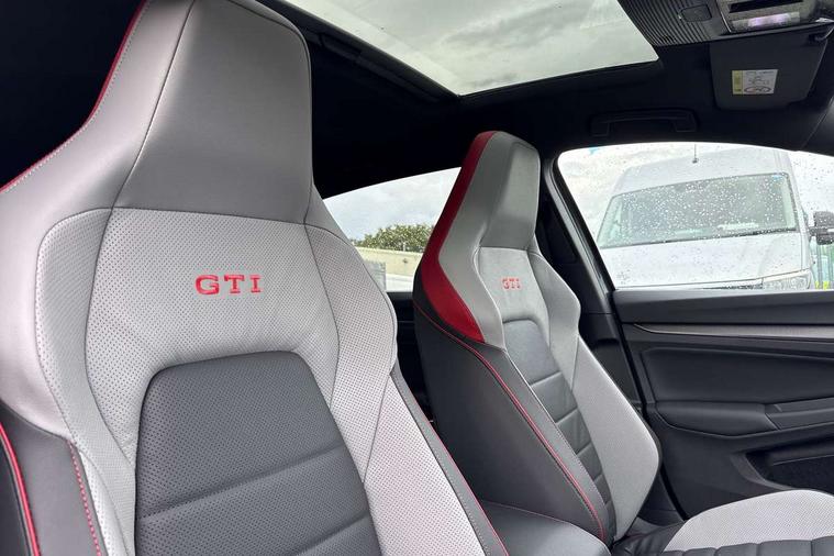 Activated carbon canister, Adaptive cruise control (ACC) with speed limiter and front assist (reacting to vehicles pedestrians and cyclists), Advanced driver attention and drowsiness monitor, Driver alert system, Dynamic road sign display, E-Sim card for online connectivity, eCall emergency call system, Front and rear parking sensors, Lane assist, traffic jam assist and emergency assist, Lane change system side assist, rear traffic alert and exit warning system, Multi-color Digital cockpit pro, selection of different info profile possible, Multifunction camera for distance control, Navigation system, Oncoming vehicle braking when turning including swerve support, Preparation for light assist system, Progressive steering, Speedo, rev counter, electronic odometer, trip, service interval display, exterior temperature and fuel gauge, Voice assistant and voice enhancer with chat GPT, Warning signal and warning light for front and rear seatbelts not fastened, We connect plus preparation, We connect preparation, Wireless app connect, Front differential lock, Front stabilizer bars, Petrol Particulate Filter, Sports suspension, Start-stop system with battery regeneration (recuperation - energy recovery during braking), Comfort telephony + wireless charging, without wireless aerial connection, Digital radio reception (DAB), Diversity antenna for FM reception, Infotainment system with 12.9" display, Mobile phone interface with inductive charging feature, 3rd brake light, Auto dimming rear view mirror, Body colour door handles, Bumpers in "Clubsport", air intake in honeycomb structure, Chrome plated radiator grille inserts and light switch surrounds, Exterior ambient lighting with illuminated lighting animation and wake up/goodbye scenario, Exterior mirrors convex on the left and aspherical on the right, Front and rear electric windows, Front fog lamps, Heat insulating windshield made of laminated glass, Illumination Volkswagen logo, Iluminated lighting animation with wake up/goodbye scenario and illuminated door handles, LED daytime running lights, Nameplate 'GTI' set, Rain sensor, Rear exhaust tailpipe, Rear fog light on one side and reversing lights on both sides, Rear side wing doors, Rear windscreen washer and wiper with interval delay, Remote electrically foldable door mirrors, puddle lights and reverse activated passenger's door mirror, Welcome light with surround lighting, 12V socket in front centre console, 12V socket in luggage compartment, 2 USB C ports in front, 2 USB charging sockets on the centre console in the rear charging capacity upto 45W, 3 rear head restraints, 3 seat bench in 2nd row, Air care climatronic 3 Zone automatic climate control with rear air conditioning control panel, Aluminium gearshift handle, Ambient lighting with 30 colour incl. LED light unit in front footwell with selectable light colour, Brushed stainless steel pedals, Carpet mats, front and rear, Front centre armrest, Front passenger seat, ISOFIX anchors for child seats on outer rear bench seats and on front passanger seat compatible for i-Size, Luggage compartment lighting, Rear cupholder and loadthough, Soul black instrument panel, Split folding backrest with centre armrest and unsplit rear seat bench, Storm grey roof lining, Sun visors with illuminated vanity mirrors, 3 point height adj front seatbelts + pretensioners, 3 rear three point seatbelts, ABS, Autonomous emergency braking front assist with pedestrian and cyclist monitoring, Child locks on rear doors, Driver and front passenger airbag with front passenger airbag deactivation, Electronic parking brake with auto hold, ESC (Electronic Stability Control), Proactive passenger protection system, Rear disc brakes, Two tone horn, Tyre pressure monitoring system, Volkswagen roadside assistance, Alarm with interior protection, Anti theft wheel bolts, Keyless locking and starting system keyless accesss with SAFELOCK, Preparation for alcohol interlock, Decorative inserts carbon grey for dashboard and front door trim panels,