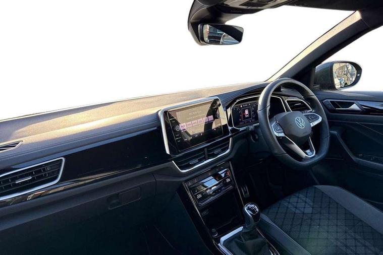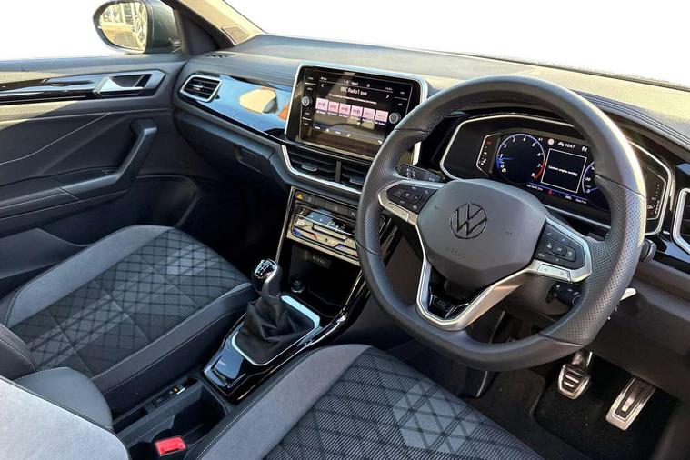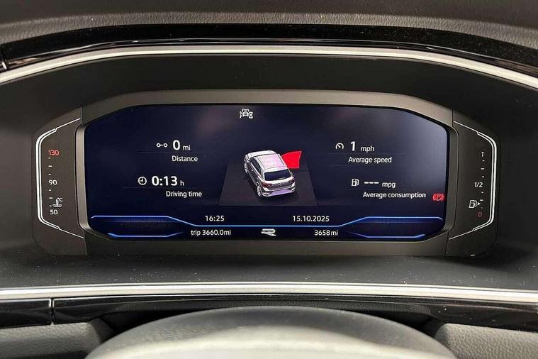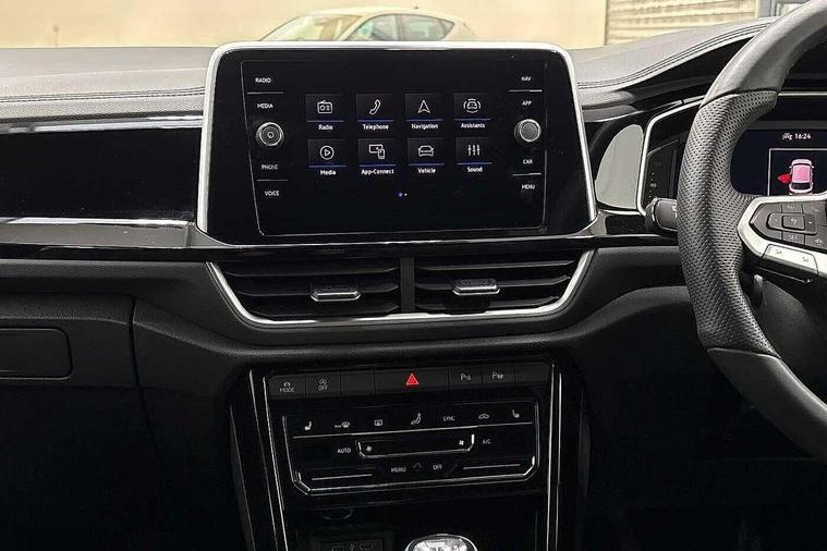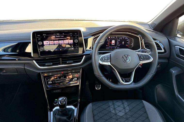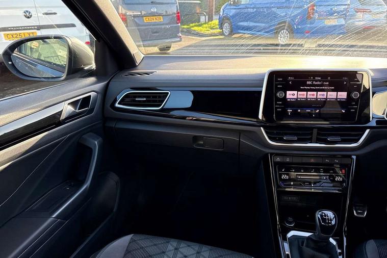 10.25" Digital cockpit pro, Advanced driver attention and drowsiness monitor, Emergency call service, Lane keeping system Lane Assist, Mobile phone interface, Modified key software - reduce switch off time for key status change to Long no motion, Online services, Park assist including front and rear parking sensors, Service interval indicator, Tailgate/trunk lid release from outside, Think blue trainer driver tips and journey analysis, Warning sound and light for front seatbelts unfastened, Wireless app connect, Battery regeneration during braking, Start/stop function with battery regeneration, DAB Digital radio, Diversity antenna for FM reception, Front and rear 6 speakers, Music playback - MP3, WMA and AAC files, Premium USB cable in choice of either Apple or Android smartphone compatibility, SD card slot, Simultaneous pairing of 2 compatible mobile devices, Title and cover art display, We Connect and We Connect Plus functionality, Auto dimming interior rear view mirror, Automatic hazard lights activation under emergency braking, Automatic headlight control with LED separate daytime running lights with coming/leaving home function, Body coloured exterior mirror housings and door handles, Electrically adjustable and heated door mirrors, Extended roof spoiler, Exterior mirrors aspherical on driver side, convex on front passenger side, External USB type C socket and charging sockets, Front windscreen wiper with intermittent wipe and 4 position delay, Heated rear window, LED 3rd brake light, LED rear combination lamps, LED rear number plate lights, Power windows with comfort operation and circuit breaker, Privacy glass for rear side windows and rear window, R-Line design body coloured bumpers, Rain sensor, Rear exhaust tailpipe, Rear fog light on one side and reversing lights on both sides, Rear side wing doors, Rear wash/wipe with intermittent wipe setting, Remote electrically foldable door mirrors, puddle lights and reverse activated passenger's door mirror, 12V power socket in centre console, 3 rear head restraints, 3 seat bench in 2nd row, 4 load lashing points in luggage compartment, Air care climatronic air conditoning system with active combination filter and 2-zone temperature control, Black roof lining, Chrome plated decorative trims, Chrome plated radiator grille inserts, air vent surrounds and light switch surrounds, Door and side trim panel with leatherette insert, Front + rear carpet mats, Front centre armrest, Front cupholders x 2, Front footwell illumination, Front reading light, Front scuff plates with R Line logo, Front seat back storage pockets, Glove compartment door with light, Instrument lighting, white adjustable panel illumination, Interior ambient lighting and surround lighting, Interior light delay, Isofix child seat preparation, Leather gearshift handle, Load-through provision with cup holder when folded down ('Unsplit rear seat bench, split folding backrest, with centre armrest), Luggage compartment lighting, Single front passenger seat, Stainless steel pedals, Storage compartment in left and right luggage area, Storage compartment in rear doors, Storage compartments in driver and front passenger doors, Sunvisors with illuminated vanity mirrors, Variable boot floor, height adjustable and removable, Driver assistance pack without proactive passenger protection - T-Roc, 3 point height adj front seatbelts + pretensioners, 3 point seatbelts in outer rear with ECE label, ABS, Child locks on rear doors, City emergency braking and pedestrian monitoring, Driver and front passenger airbag with front passenger airbag deactivation, Driver and front passenger safety-optimised head restraints, Drivers seatbelt reminder, Electronic parking brake, Electronic Stability Control (ESC) inc EDL (Electronic Differential Lock) and ASR (Traction Control), Front and rear passengers curtain airbag system including front side airbags, Hill start assist, Predictive pedestrian protection, Rear disc brakes, Two tone horn, Tyre pressure loss indicator, Volkswagen roadside assistance, Piano black decorative inserts in dashboard and front door trim panels, Trims for alloy wheels,