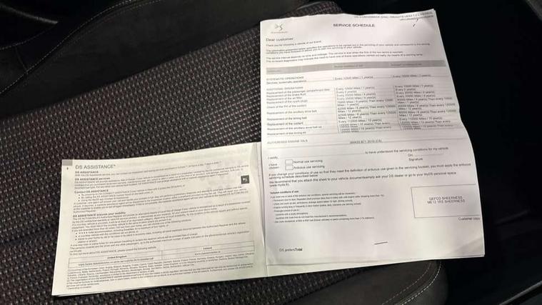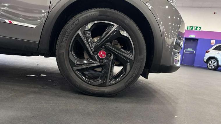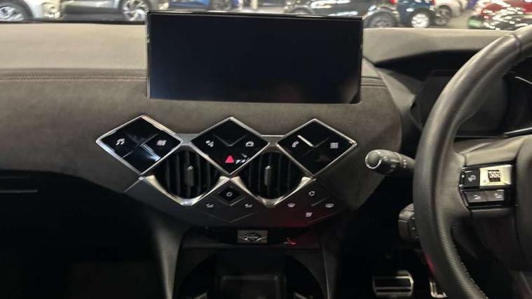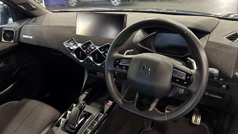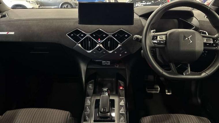 7 inch digital instrument cluster display, Cruise control with speed limiter, DS Connect Box emergency and assistance system, DS Connect Nav - Connected 3D navigation, 10 inch HD touchscreen, automatic air conditioning, DS Sensorial drive, eCall emergency call system, Mirror Screen with Apple car play/Android Auto, Multi function on board trip computer, PAS, Service indicator, Voice recognition, 2x USB sockets in front, Bluetooth handsfree and media streaming, DAB Digital radio, Acoustic and tinted front and rear windscreens, Automatic front windscreen wipers, Automatic lights, Automatic triggered rear windscreen wiper in reverse gear, Black DS wings, Body coloured bumpers, Chrome door handles, Chrome front door sill trim, Dark tinted rear windows, DS LED rear lights, DS Matrix LED headlights with low and high beam assist, DS monogram on rear tailgate, Electrically adjustable door mirrors, Electrically folding door mirrors with DS LED spotlights, Flush fitting exterior door handles, Frameless electrochrome interior rear view mirror, Front and rear electric windows, Gloss black exterior door mirrors, Heated door mirrors, Heated rear windscreen, LED daytime running lights, Rear side wing doors, Third brake light, Tinted exterior door mirrors, Twin exhaust tailpipe, 12V socket, 3 seat bench in 2nd row, 40/60 backrest split on rear seats with easy folding button, Adjustable steering wheel, Aluminium sports pedals, Bag support hooks in the boot, Black interior roof, Boot light, DS Inspiration PERFORMANCE LINE - Woven cloth/Alcantara upholstery, Front + rear carpet mats, Front and rear LED reading lights, Front central armrest, Front/rear passenger grab handles, Height adjustable front seats, Height adjustable front/rear head restraints, Odour filter, Perforated leather steering wheel with contrast stitching - black, Premium seat with comfort foam and pads & map pocket, Single front passenger seat, Sunvisors with LED vanity mirror, Twin front cupholders, Two rear isofix mounting points, 3x3 point rear seatbelts, ABS, Airbags - front / rear lateral and curtain airbags, Electric parking brake, ESP, Height adjustable front seatbelts with pretensioners and front and rear load limiter, Hill assist control, Rear door child safety locks, Seatbelt warning, Tyre pressure monitoring system, Warning triangle on boot lid, Immobiliser, Locking wheel nuts, Perimetric and volumetric anti theft alarm with anti lift detection, Proximity keyless entry and start, Remote central locking + deadlocks, 18" Monza diamond cut alloy wheels, Carmine centre caps with DS logo,