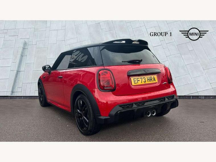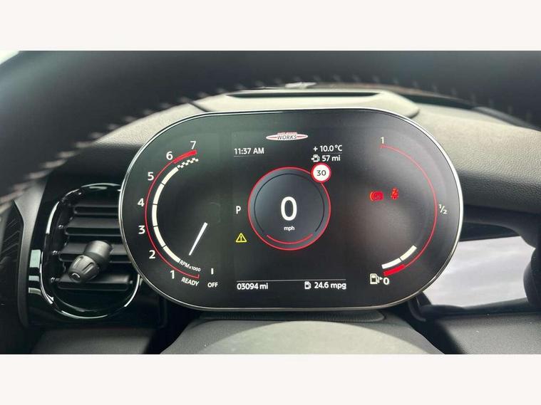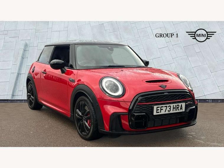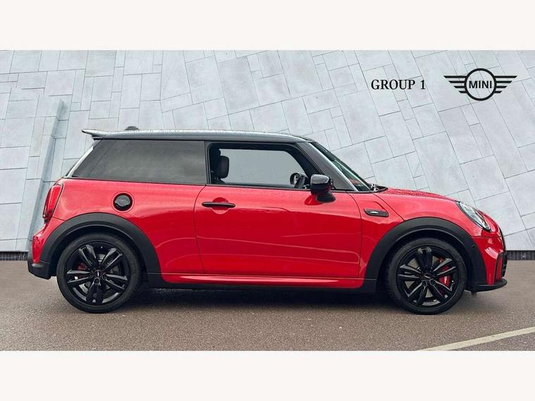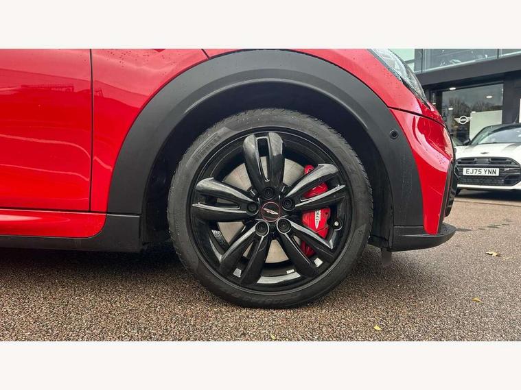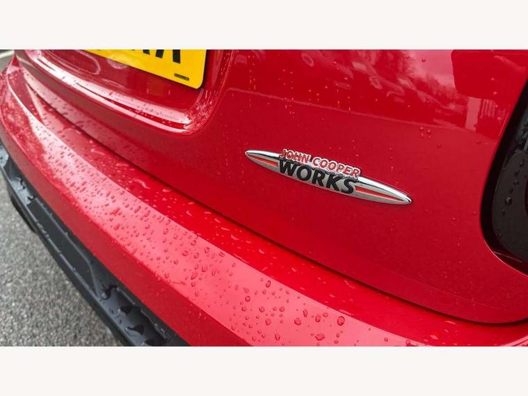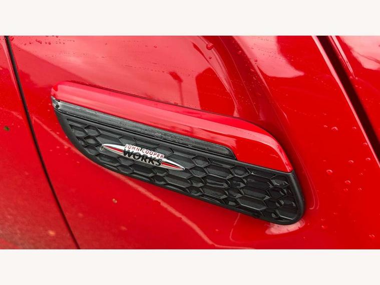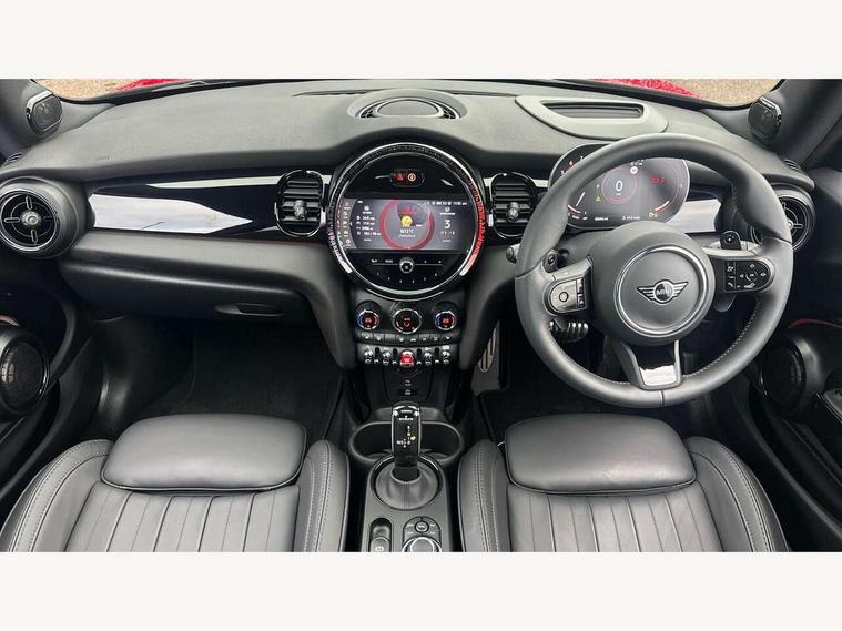 Apple CarPlay, Automatic start/stop function with brake energy recuperation, Compatible mobile phone bluetooth with audio streaming, Cruise control with brake assist, Electro-mechanical speed dependant steering assistance, Flexible car sharing preparation, Instrument cluster, MINI Driving Modes - centre toggle switch to control driving setting (sport, mid and green), Mini E-call, MINI TeleServices, On board computer, Rear park distance control, Service interval indicator, Double Vanos system, Eight speed steptronic sport transmission, with gearshift paddles, Fully variable valve control, High precision injection, Performance Control, 8.8" touchscreen with LED ring, FM tuner and DAB digital radio, 3rd brake light, Automatic headlight activation switch, Bonnet scoop, Dynamic brake lights, Electric front windows, Heated rear window, Heated windscreen washer jets, JCW Aerodynamic kit - Front and rear bumpers with sporty JCW styling and part-painted side sills with MINI John Cooper Works door sill finishers, John Cooper Works logo above an individual grille strut in Chilli Red, John Cooper Works rear spoiler, LED headlight with closed ring and daytime driving lights, Radiator grille piano black border with honeycomb structure in black matt, Rain sensor window wipers, Rear fog lights, Rear LED lights with union jack design, Rear window wiper, Side scuttle panel with integrated indicator, Side scuttle with MINI John Cooper Works logo in black high-gloss with red border, Sun/heat protection glass, Two central exhaust tailpipes with chrome finisher, White indicator lenses, 12V Accessory socket in centre console, 2 seat bench in 2nd row, 4 lashing eyes in luggage compartment, 60/40 split folding rear seat, Anthracite headliner including grab handles and clothes hooks, Carbon black colour line - Knee roll and door armrest, Chrome interior highlights, Cupholders, Front and rear isofix with front passenger airbag deactivation, Front floor mats in velour, Glove compartment, Height and length steering column adjustment, Interior lighting with 12 different colours across the dashboard, underneath door bezel with illuminated laser-engraved design on central display, JCW Sport seats with integrated headrests, adjustable thigh support and John Cooper Works logo, Leatherette gearshift lever and handbrake gaiters, LED reading lights, vanity mirror lights, front foot well light and spotlight on front seats, Manual air conditioning, Mechanical seat adjustment - forward/back & backrest for front seats and driver seat height adjust, Multifunction steering wheel, Passenger seat height adjuster, Rubberised stainless steel pedals, Single front passenger seat, Storage compartments in doors, Storage pocket on back of front seats, Sunvisors with vanity mirrors, Walknappa leather steering wheel with grey seam and John Cooper Works badge on Piano Black lower steering wheel spoke, Navigation pack without Apple Carplay - Mini Hatchback, Piano black exterior pack - JCW, 3 point seatbelts on all four seats, 4-piston fixed-calliper brakes front, 6 Airbags - front, side, head and seat belt tensioners, Anti-lock braking system (ABS), DSC - Dynamic Stability Control, Front and rear disc brakes, Red brake callipers with John Cooper Works logo, Single tone fanfare horn, Tyre pressure monitoring system, Alarm system with tilt sensor, monitoring doors, bonnet interior and tailgate, Electronic vehicle immobiliser, Start/stop toggle with keyless go, Tool kit,