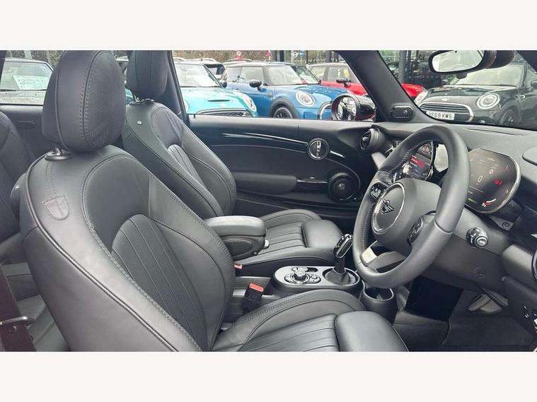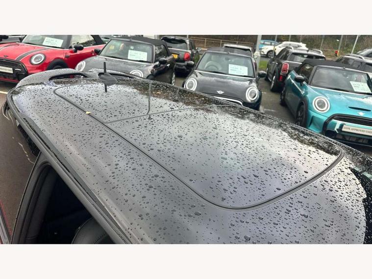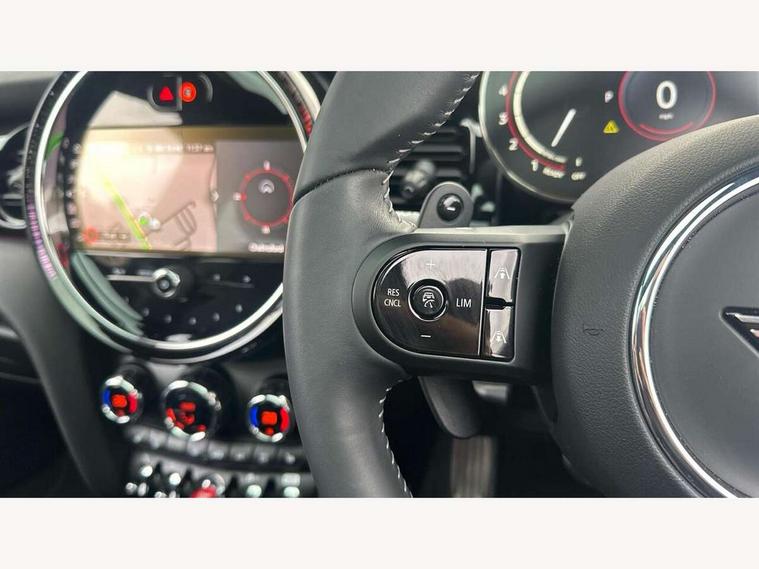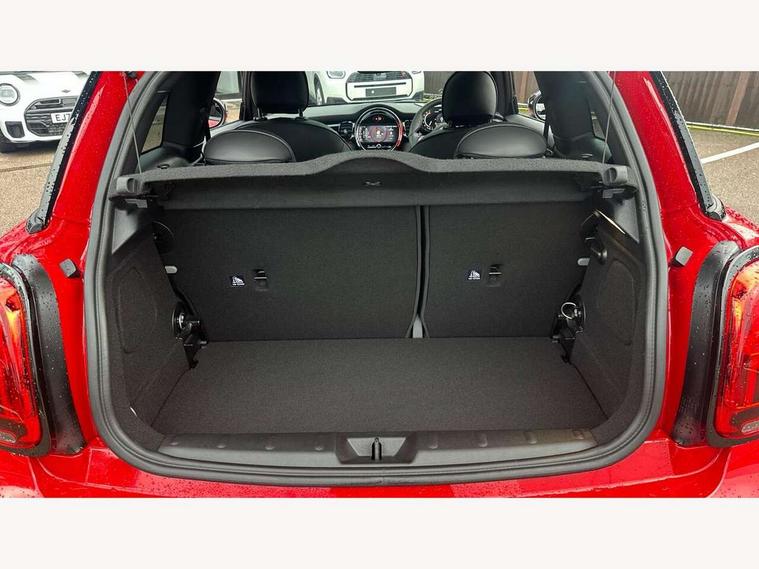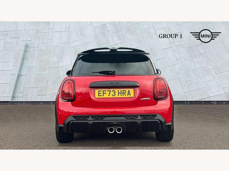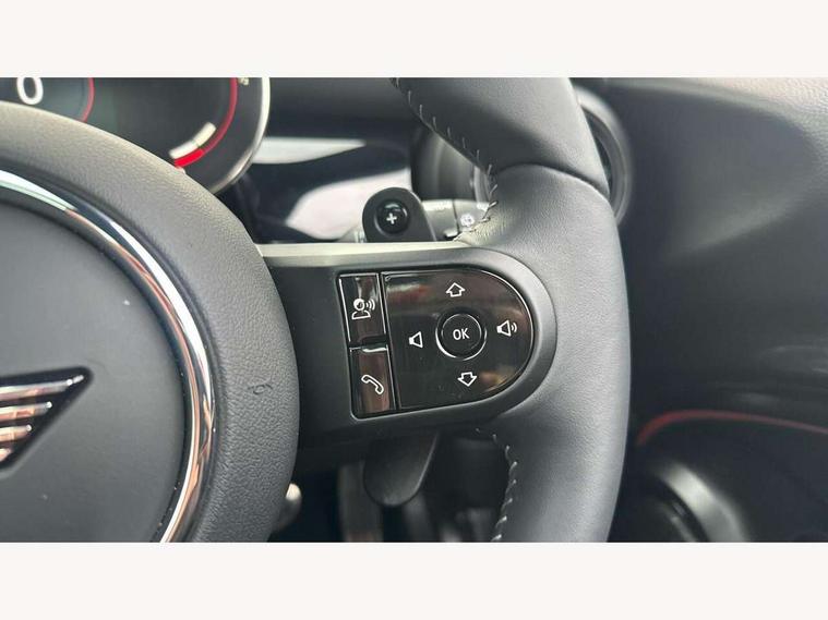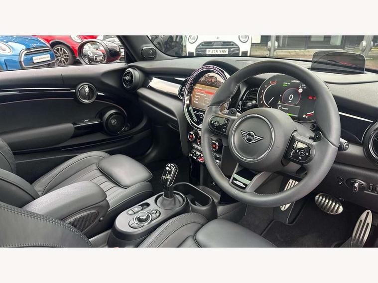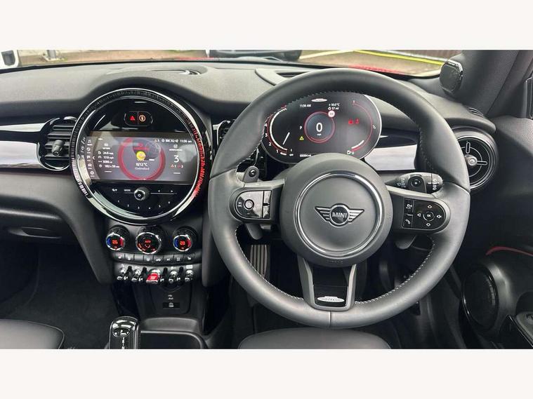 Apple CarPlay, Automatic start/stop function with brake energy recuperation, Compatible mobile phone bluetooth with audio streaming, Cruise control with brake assist, Electro-mechanical speed dependant steering assistance, Flexible car sharing preparation, Instrument cluster, MINI Driving Modes - centre toggle switch to control driving setting (sport, mid and green), Mini E-call, MINI TeleServices, On board computer, Rear park distance control, Service interval indicator, Double Vanos system, Eight speed steptronic sport transmission, with gearshift paddles, Fully variable valve control, High precision injection, Performance Control, 8.8" touchscreen with LED ring, FM tuner and DAB digital radio, 3rd brake light, Automatic headlight activation switch, Bonnet scoop, Dynamic brake lights, Electric front windows, Heated rear window, Heated windscreen washer jets, JCW Aerodynamic kit - Front and rear bumpers with sporty JCW styling and part-painted side sills with MINI John Cooper Works door sill finishers, John Cooper Works logo above an individual grille strut in Chilli Red, John Cooper Works rear spoiler, LED headlight with closed ring and daytime driving lights, Radiator grille piano black border with honeycomb structure in black matt, Rain sensor window wipers, Rear fog lights, Rear LED lights with union jack design, Rear window wiper, Side scuttle panel with integrated indicator, Side scuttle with MINI John Cooper Works logo in black high-gloss with red border, Sun/heat protection glass, Two central exhaust tailpipes with chrome finisher, White indicator lenses, 12V Accessory socket in centre console, 2 seat bench in 2nd row, 4 lashing eyes in luggage compartment, 60/40 split folding rear seat, Anthracite headliner including grab handles and clothes hooks, Carbon black colour line - Knee roll and door armrest, Chrome interior highlights, Cupholders, Front and rear isofix with front passenger airbag deactivation, Front floor mats in velour, Glove compartment, Height and length steering column adjustment, Interior lighting with 12 different colours across the dashboard, underneath door bezel with illuminated laser-engraved design on central display, JCW Sport seats with integrated headrests, adjustable thigh support and John Cooper Works logo, Leatherette gearshift lever and handbrake gaiters, LED reading lights, vanity mirror lights, front foot well light and spotlight on front seats, Manual air conditioning, Mechanical seat adjustment - forward/back & backrest for front seats and driver seat height adjust, Multifunction steering wheel, Passenger seat height adjuster, Rubberised stainless steel pedals, Single front passenger seat, Storage compartments in doors, Storage pocket on back of front seats, Sunvisors with vanity mirrors, Walknappa leather steering wheel with grey seam and John Cooper Works badge on Piano Black lower steering wheel spoke, Navigation pack without Apple Carplay - Mini Hatchback, Piano black exterior pack - JCW, 3 point seatbelts on all four seats, 4-piston fixed-calliper brakes front, 6 Airbags - front, side, head and seat belt tensioners, Anti-lock braking system (ABS), DSC - Dynamic Stability Control, Front and rear disc brakes, Red brake callipers with John Cooper Works logo, Single tone fanfare horn, Tyre pressure monitoring system, Alarm system with tilt sensor, monitoring doors, bonnet interior and tailgate, Electronic vehicle immobiliser, Start/stop toggle with keyless go, Tool kit,